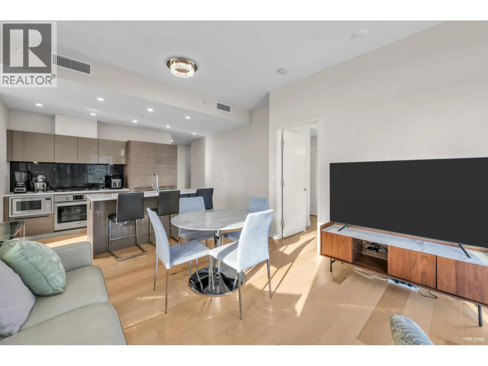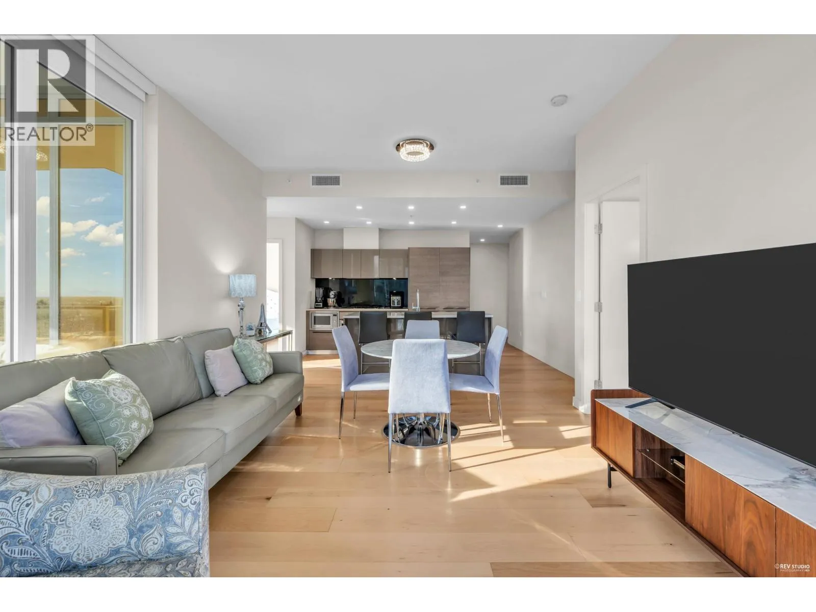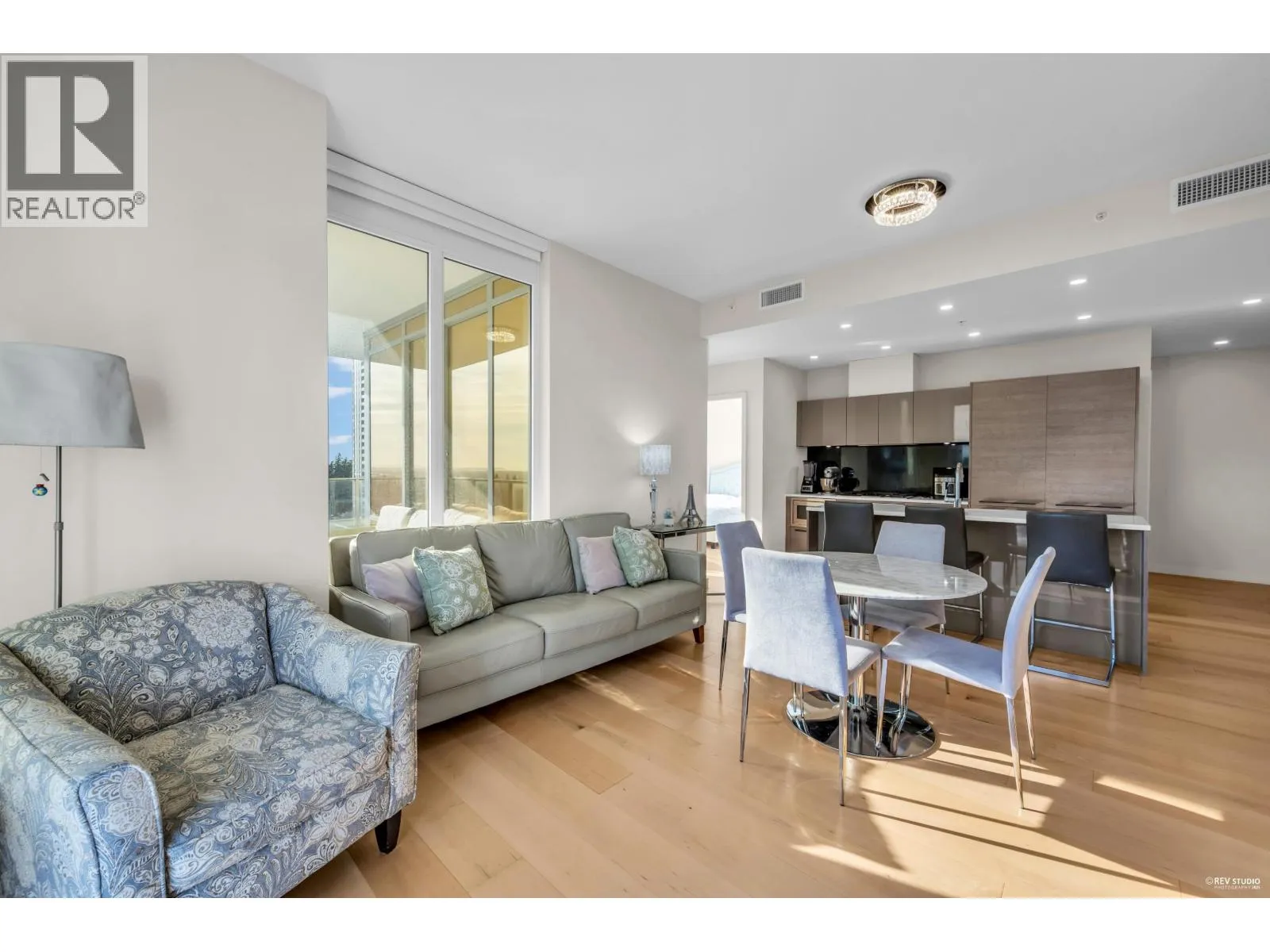 Experience luxury living in this like-new 3-bedroom, 2-bathroom corner residence located in the heart of Metrotown. Positioned on the southeast corner, this home is filled with natural light and features wraparound balconies offering breathtaking panoramic views of the mountains, ocean, and city. The open-concept kitchen boasts cabinetry, integrated Bosch appliances, and is designed so you can enjoy the view from every room. 9-foot ceilings create an enhanced sense of space, while engineer hardwood flooring throughout ensures both elegance and easy maintenance.Enjoy the convenience of 24-hour concierge service and over 11,000 sq. ft. of premium amenities. Just steps to Metrotown SkyTrain Station, Metropolis at Metrotown, the public library, banks, and a wide selection of restaurants. (id:27476)