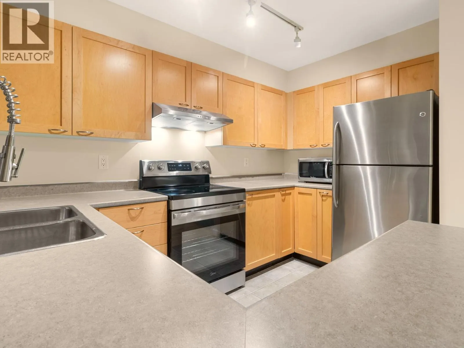 Welcome to Eighteen Trees, escape the city noise with this functional 726 SQFTt, 1 bed plus den sanctuary overlooking the greenbelt. This home offers open floor plan, boasting new carpets, new paint, new dishwasher, range, washer/dryer. Well maintained and great for first time buyers. Close to Highgate Village or easy access to Marine Gateway. 1 parking and 1 locker included. Don't miss this one, call today for your private viewing. Open House Sunday Dec 20 2pm-4pm (id:27476)