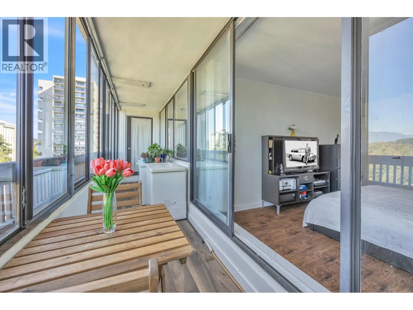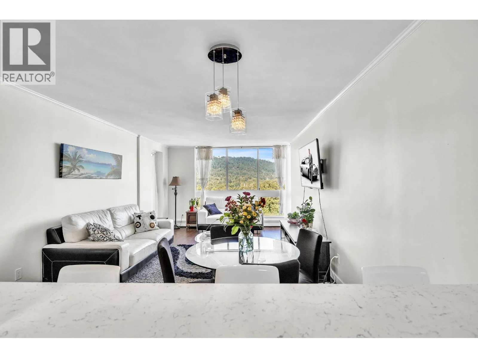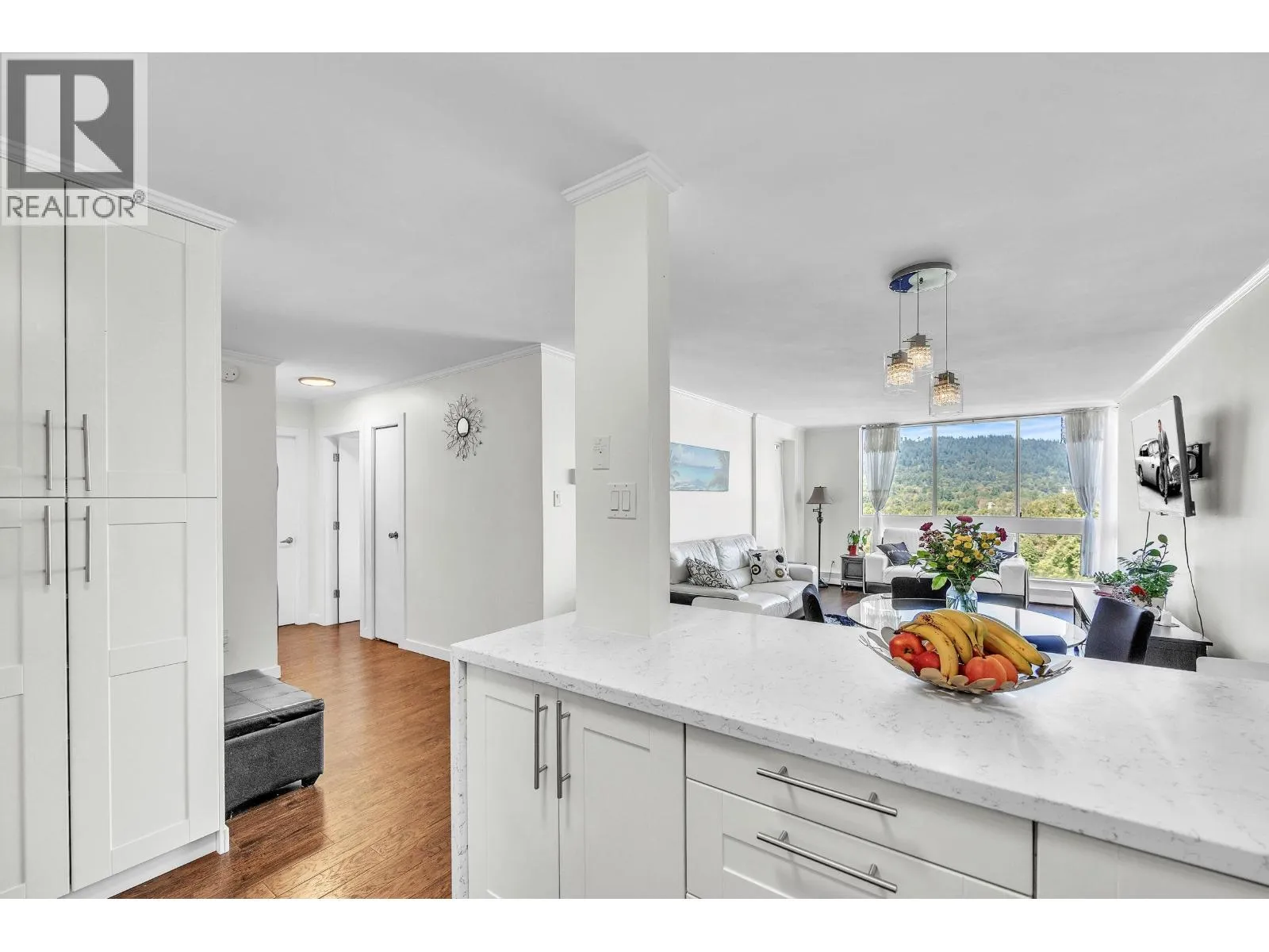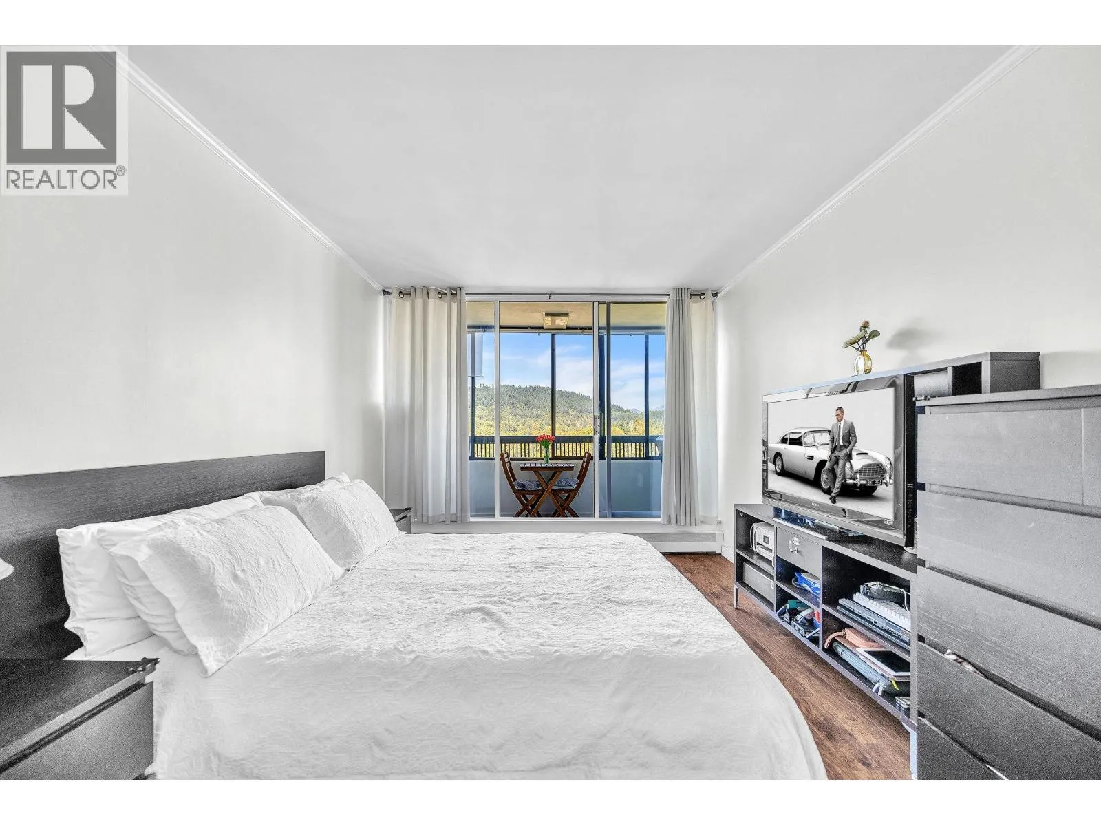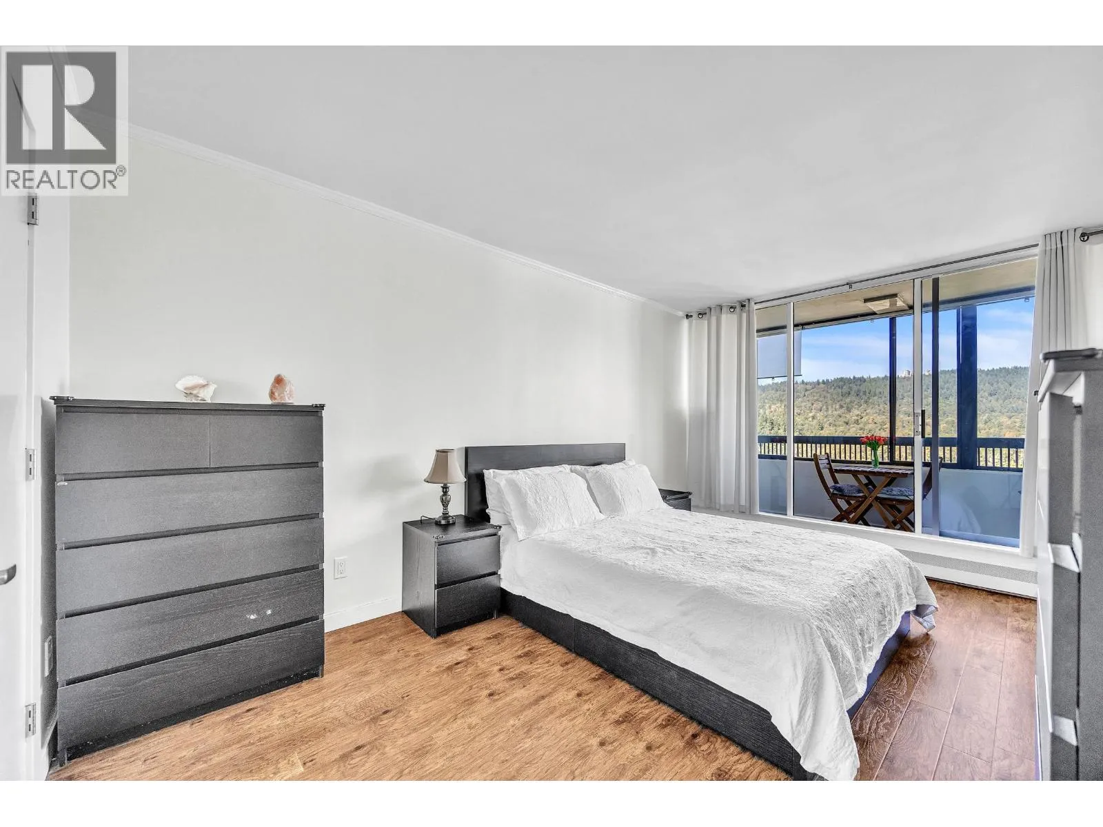 AMAZING VIEWS!!! This 2 BEDROOM suite in Edgewood Place offers mountain views from every room and a spacious covered balcony with city views too!. Features in this 988 SQFT unit include stainless steel appliances, laminate flooring, IN-SUITE LAUNDRY and ample storage. This well-maintained building in a park like setting has a live-in caretaker and great amenities: outdoor POOL, sauna, GUEST SUITE, workshop, bike & meeting rooms. Located just a short walk to Lougheed Mall and SkyTrain. Easy access to SFU! Cafes, restaurants, pubs & gym close by. Heat and hot water included. Max occupancy 4. 1 parking stall and storage locker. (Sorry no pets other than 2 small birds or fish)OPEN HOUSE THIS SUN DEC 7TH 2-4PM (id:27476)