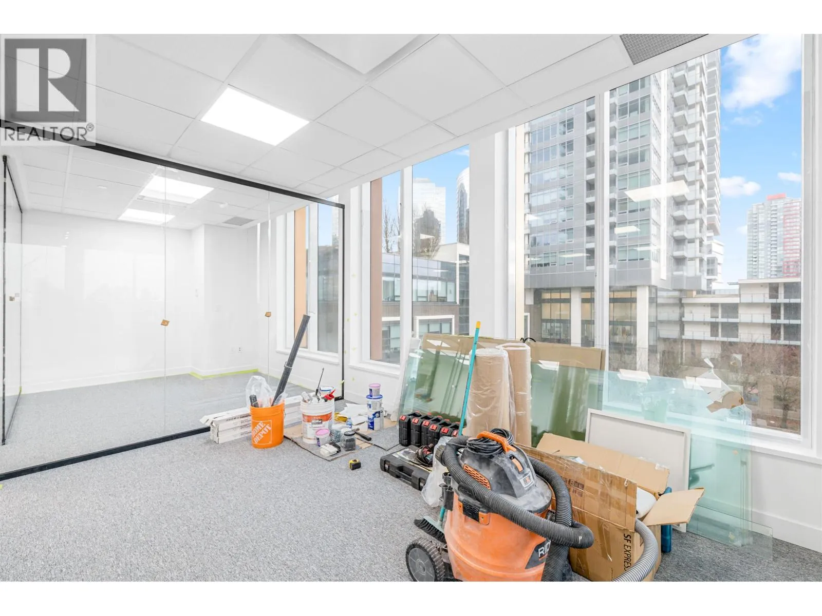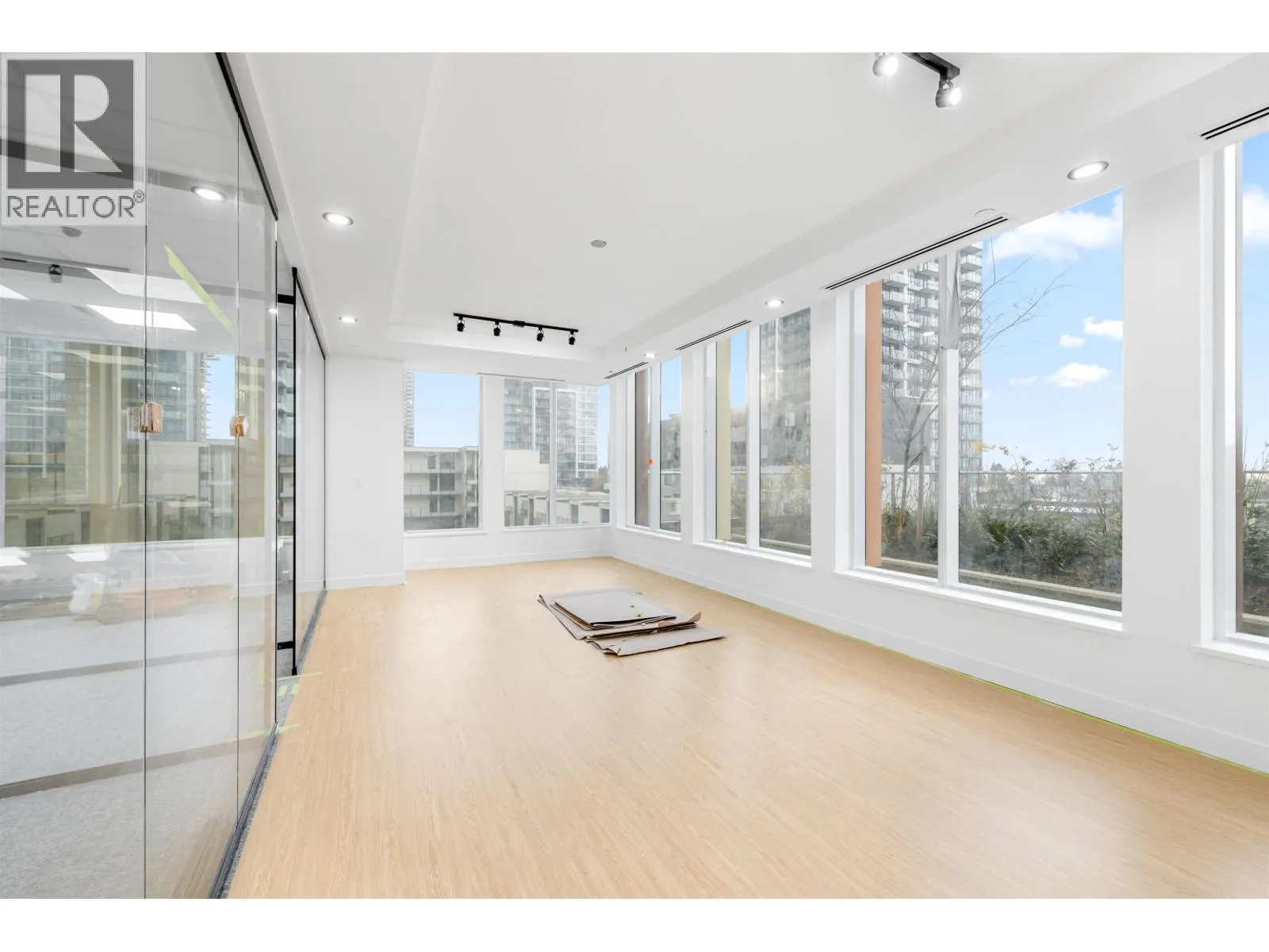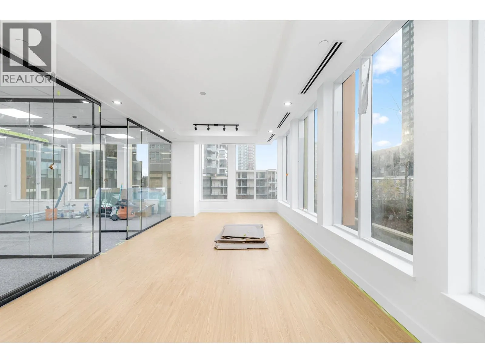 Brand new AAA office space located across from Metrotown and just a 1-minute walk to Skytrain. This bright SE corner unit features high ceilings, floor-to-ceiling windows, and air conditioning. Recently built out with $250K in improvements, including a reception area, kitchenette, glass-enclosed offices, and boardroom. Building amenities include concierge service, 3 elevators, executive boardroom, 5 meeting rooms, a training room, and business lounge. Additional perks include a restaurant, spa, daycare on the third floor, and 2 levels of underground parking. Call agent for details. (id:27476)