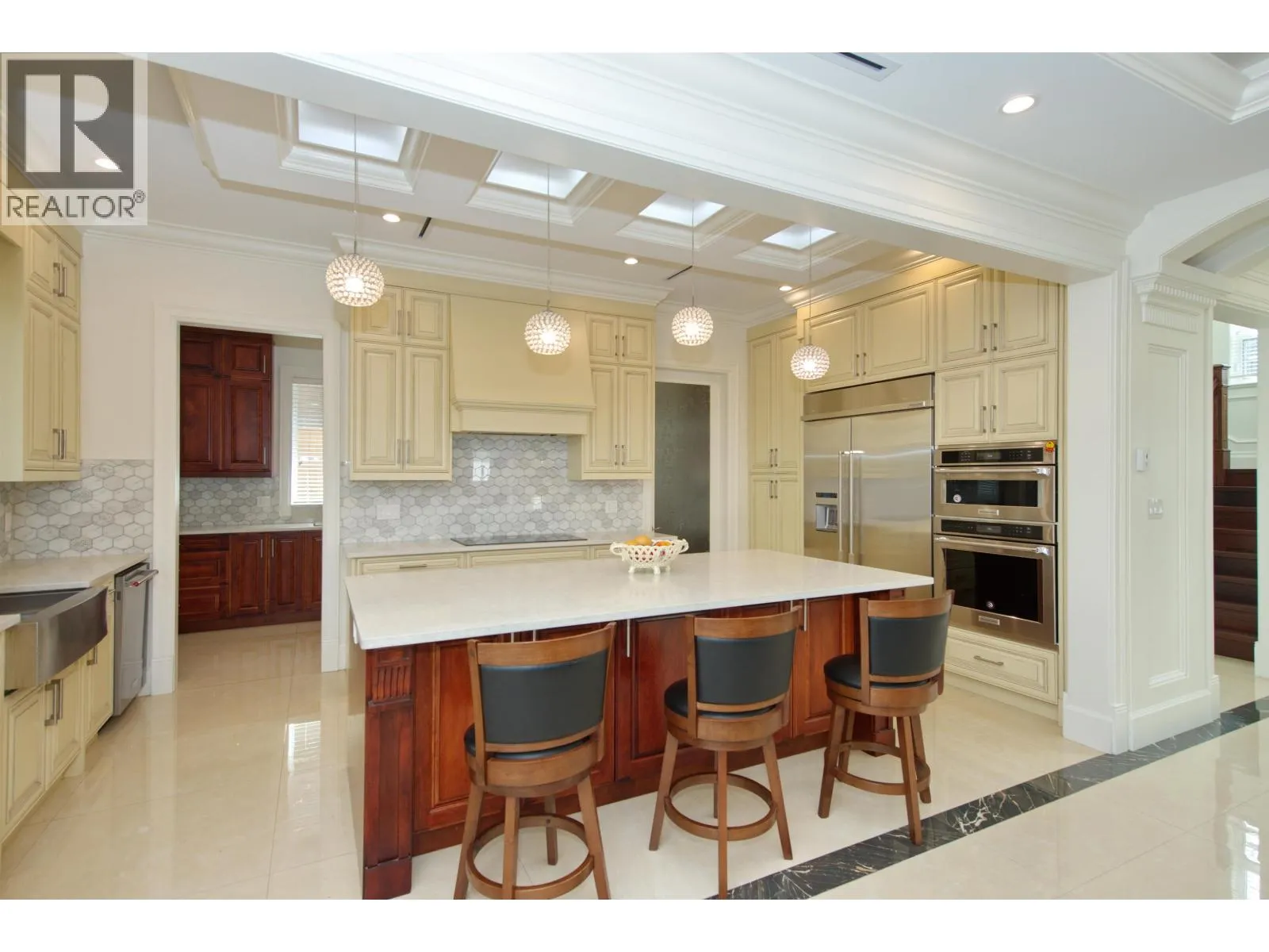 A luxury custom built mansion located on desirable South Slope neighbourhood.4339SQF indoor space sitting on 60 x121 big lot with spectacular southern city & water view.5 bdrms and 7 bathrooms with Kohler fixture & Toto Smart toilets. 21' double height grand foyer .Cozy family room with coffered ceiling opens to spacious dining room, gourmet kitchen with granite countertop & top of the line S/S appliances. Wok kitchen with commerical gas cooktop. Upstairs a huge MBDRM & 2 more primary bdrms all with ensuites & access to balconies. Enjoy the home theatre with professional sound equipment downstairs.1bdrm & 1studio legal suite in basement .Extensive millwork & molding & architechtural ceiling runs through the whole property. Radiant heating, A/C, HRV, security cameras.Close to amentities. (id:27476)
