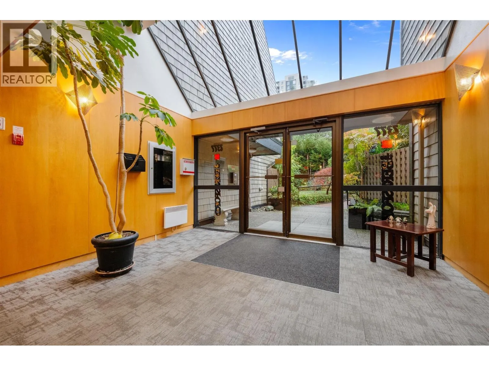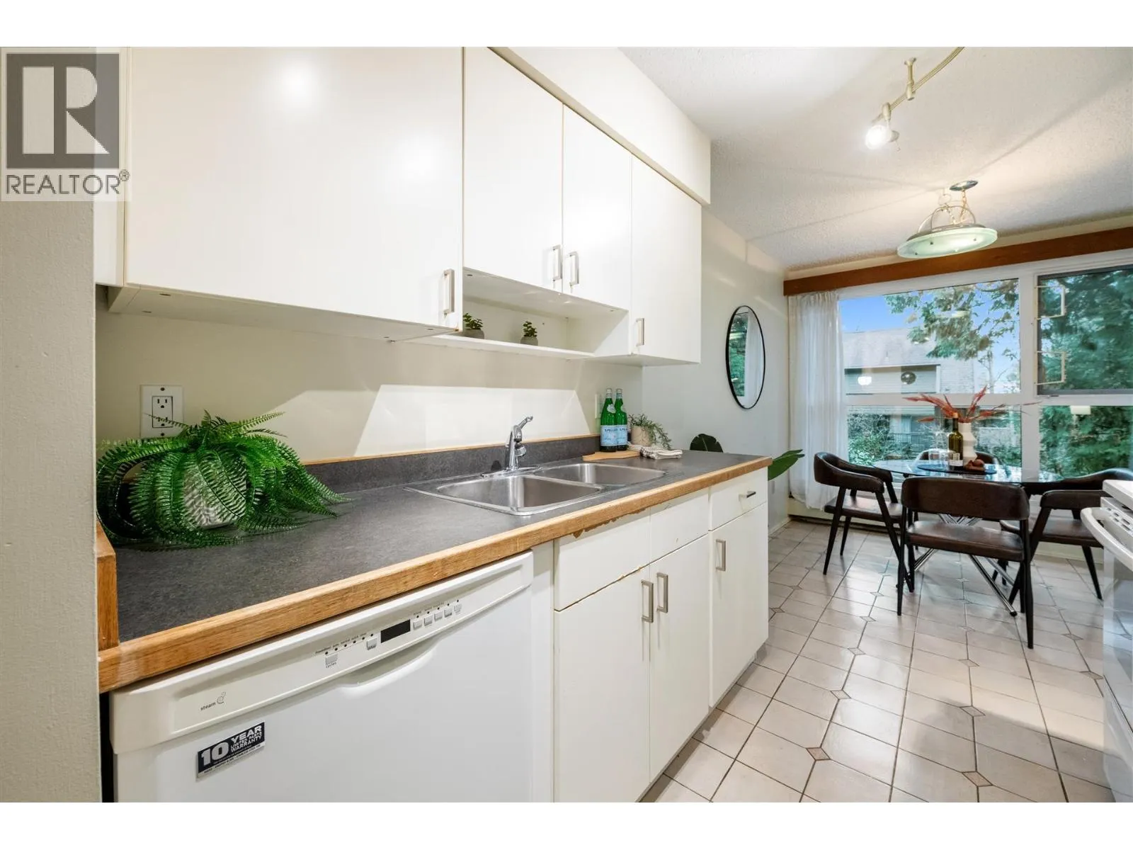 Discover the serenity of a corner, greenbelt unit at The Beresford! This spacious 2 bedroom, 1 bathroom home maximizes light and privacy with windows on two sides, offering beautiful West facing greenbelt views and Southern sun exposure. Enjoy an abundance of natural light in the spacious living area, highlighted by a cozy gas fireplace. Step out to the very large private balcony, your perfect outdoor retreat overlooking the beautiful gardens. The updated kitchen features newer appliances and eating area. There is convenient in-suite storage as well as a locker. This well-maintained building includes a sauna and exercise centre, with strata fees covering heat and hot water. The location is unbeatable: just a short walk to Shopping, and Skytrain (id:27476)