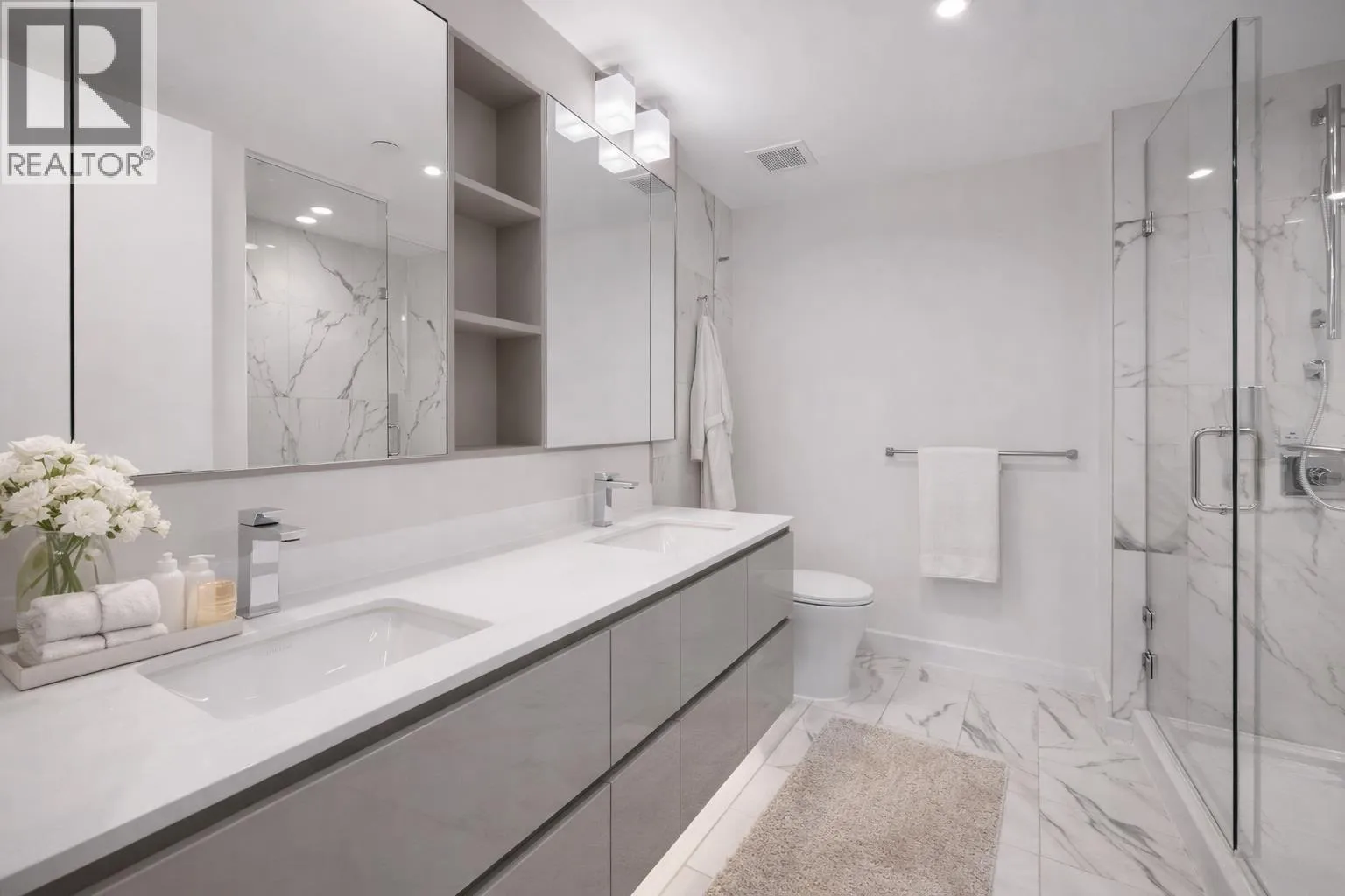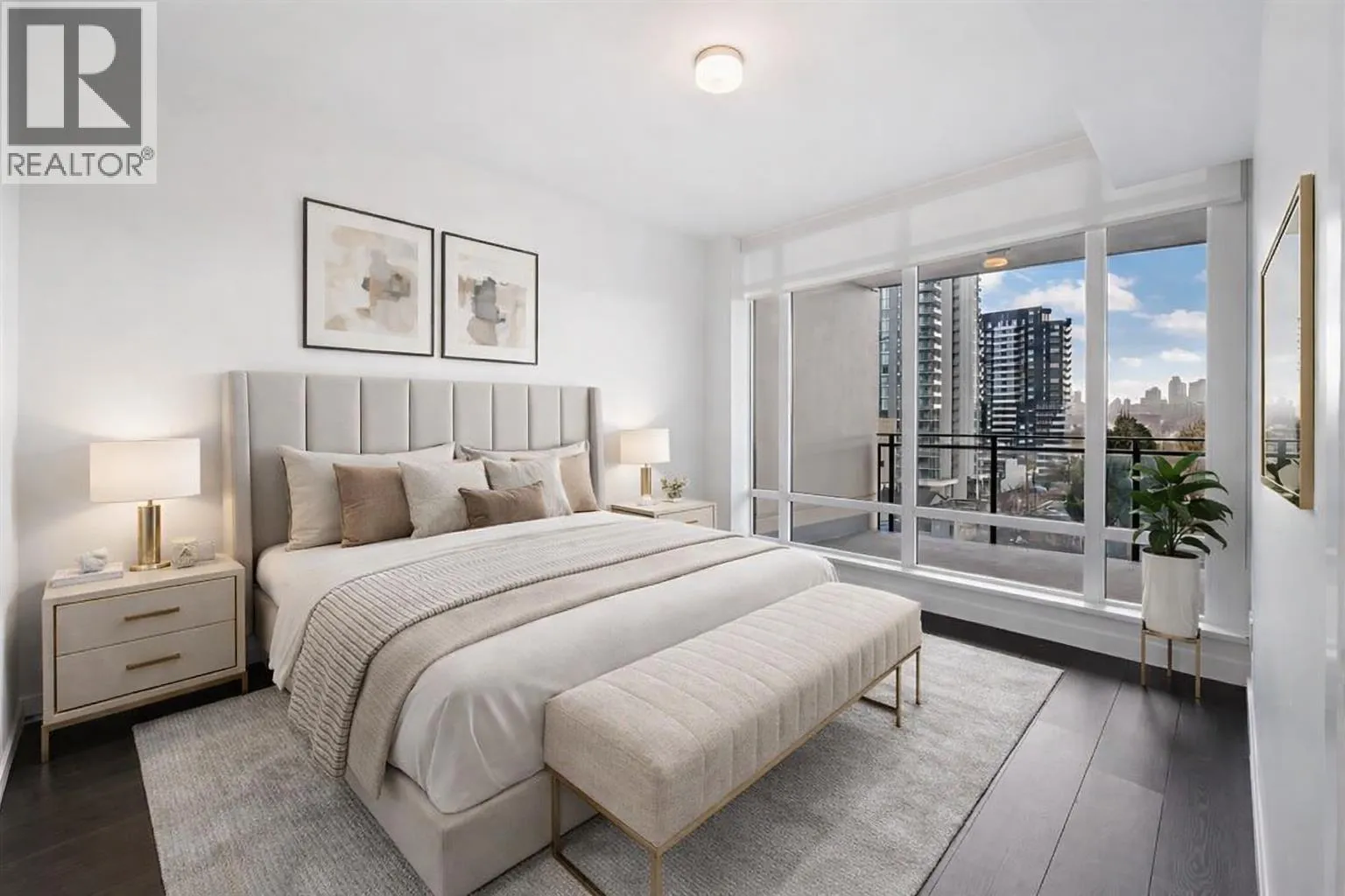 Introducing an exceptional residence at SOLO District 3, where refined design meets urban sophistication. This meticulously crafted 2 Bedroom, 2 Bathroom home offers expansive open concept living, highlighted by a thoughtfully curated interior and a highly desirable Southwest exposure. The gourmet kitchen is appointed with premium Bosch appliances, sleek cabinetry, and an elegant integrated design that anchors the generous living and dining space. Both bathrooms feature contemporary floating cabinet and modern finishes that elevate the home's overall aesthetic. The layout offers excellent bedroom separation, enhancing privacy and functionality. A standout feature is the oversized covered balcony.openhouse: SAT(Jan 24)2-4pm (id:27476)