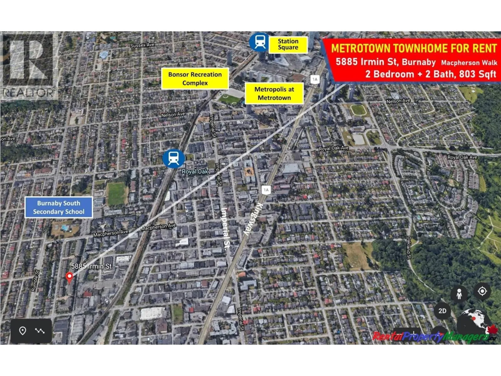 Ground floor Luxurious Quiet Apartment with Private Patio Near Metrotown 2 bath 2 bath 808 sqft to all of the conveniences of Metrotown and beyond. Superb location just 10 mins. walk to Transit and Royal Oak Skytrain Station, which is 1 station away from Metropolis Mall, offering over 450+ shops, including Walmart, T&T, Superstore etc.. Excellent proximity to restaurants, shops and cafés etc. along Kingsway and Imperial Street. Quiet and secure accessed through a large beautiful feature garden, walking trail. No Pet. North exposure with large 200ft terrace. Pictures and 3d were taken in Oct2022. 3d: https://rem.ax/3Iog1i1 All information provided is deemed reliable but is not guaranteed, all measurements are approximate. Tenant or tenant's agent to verify if deemed important. (id:27476)