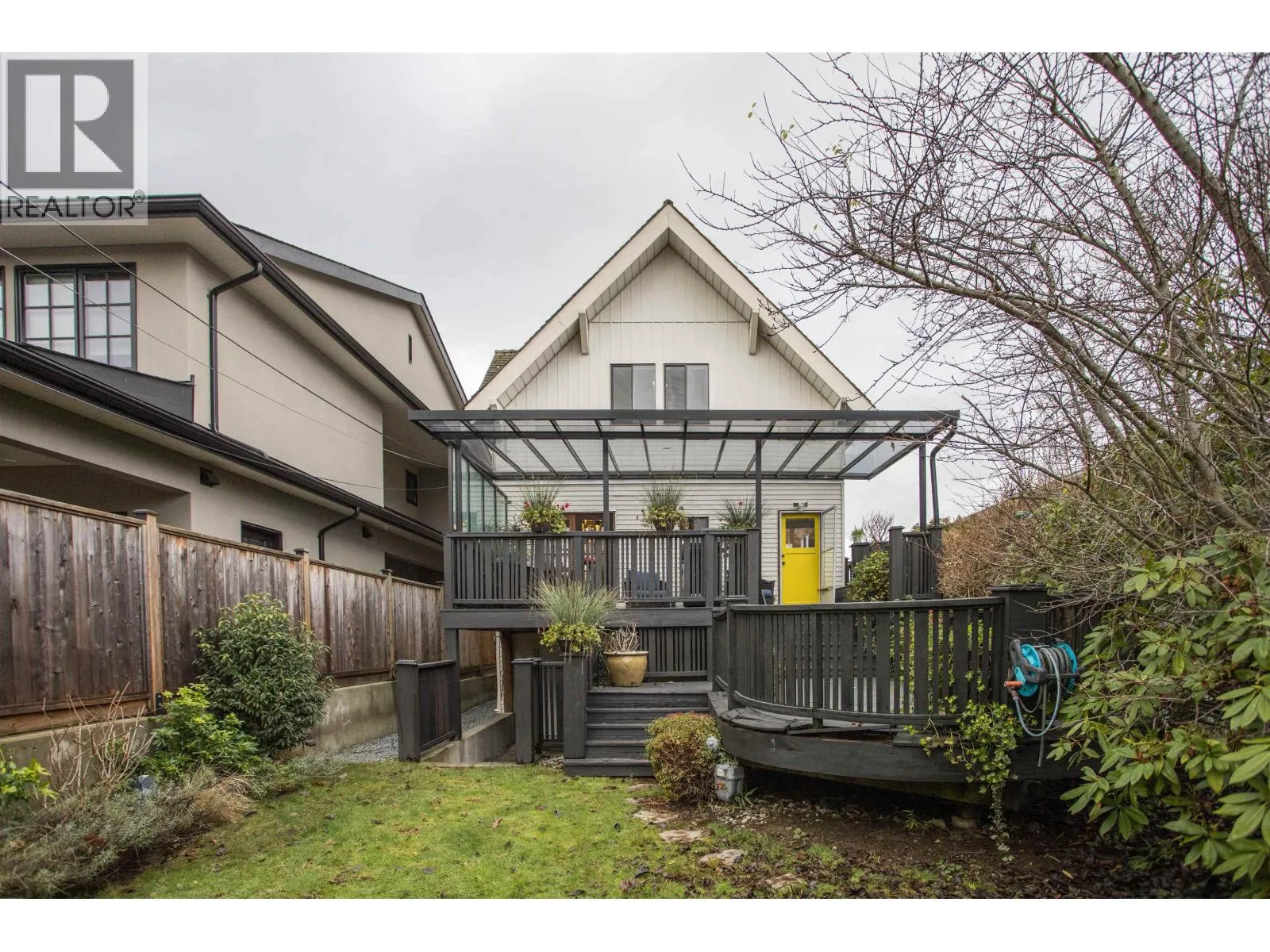 Welcome to this charming 1918-character home nestled in the highly desirable Burnaby Heights neighbourhood. Main level features hardwood floors & a formal living/dining area. The kitchen offers ample storage, oak cabinets, stainless-steel appliances, & convenient pass-through to the dining room with French Doors opening to a large, covered deck & fully fenced yard; The perfect spot for relaxing or entertaining. Upstairs are 3 spacious bedrooms & 5-piece bath. Primary bedroom has a quaint office nook offering stunning inlet & mountain views. The basement provides additional living space complete with a games area, family room & plenty of storage. Lane access w/carport. Centrally located near shops, amenities & major transit routes including easy access to Lougheed & Hwy 1. Act fast! (id:27476)