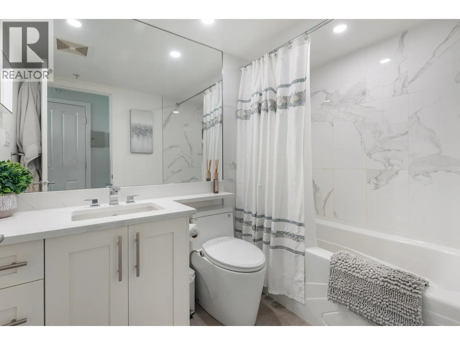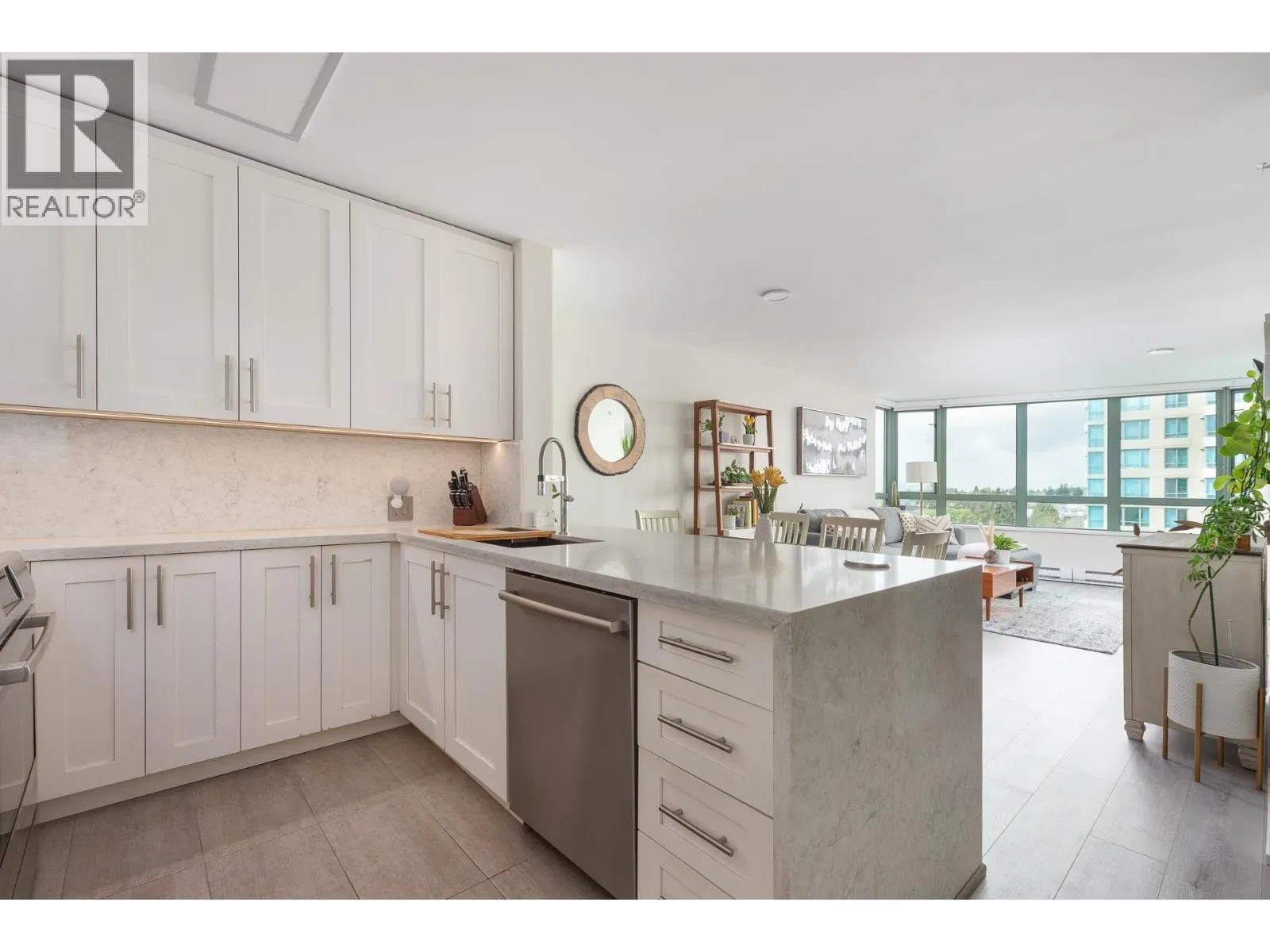Come home to Gemini 2 by Bosa. This beautifully renovated 901 sf turn key home offers 2 spacious beds, 2 baths and a huge 192 sf covered balcony boasting spectacular mountain and ocean views with incredible sunsets. Flooded with natural light, this open concept living space boasts stunning renovations (2021) including kitchen and both bathrooms, new blinds throughout, custom closet organizers, barn door for laundry, painted throughout and new laminate flooring in 2025. Fantastic building amenities including a well equipped gym, sauna, multi purpose and bike room with peace of mind provided by an on-site caretaker and a very proactive strata. Pets welcome (2 dogs/2 cats or 1 of each). Conveniently located just steps to Highgate Mall and minutes to Metrotown, transit and skytrain. 1 parking, 1 storage (easy to rent 2nd parking). This is a beautiful home in a great location. Nothing to do but move in! (id:27476)