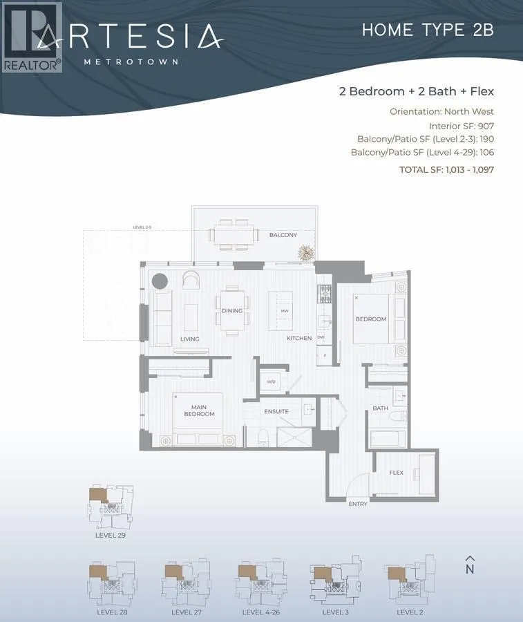 Be the first to call this brand new 2 bedroom, 2 bathroom plus flex home! Built by award winning developer Qualex Landmark, this 907 square foot residence offers modern interior living and a generous 106 square foot private balcony. Enjoy stunning mountain views from both the living area and the primary bedroom, creating a calm and elegant backdrop for sophisticated urban living. Residents have access to an outstanding collection of amenities, including a study and business lounge with stargazing telescope, concierge, indoor lounge with kitchen and fireplace, fully equipped gym and yoga area, infrared sauna, children´s playroom, music room, outdoor hot tub and sundeck, outdoor games area, outdoor lounge with BBQ, playground, car and bike share, as well as car, bike, and dog wash stations! (id:27476)