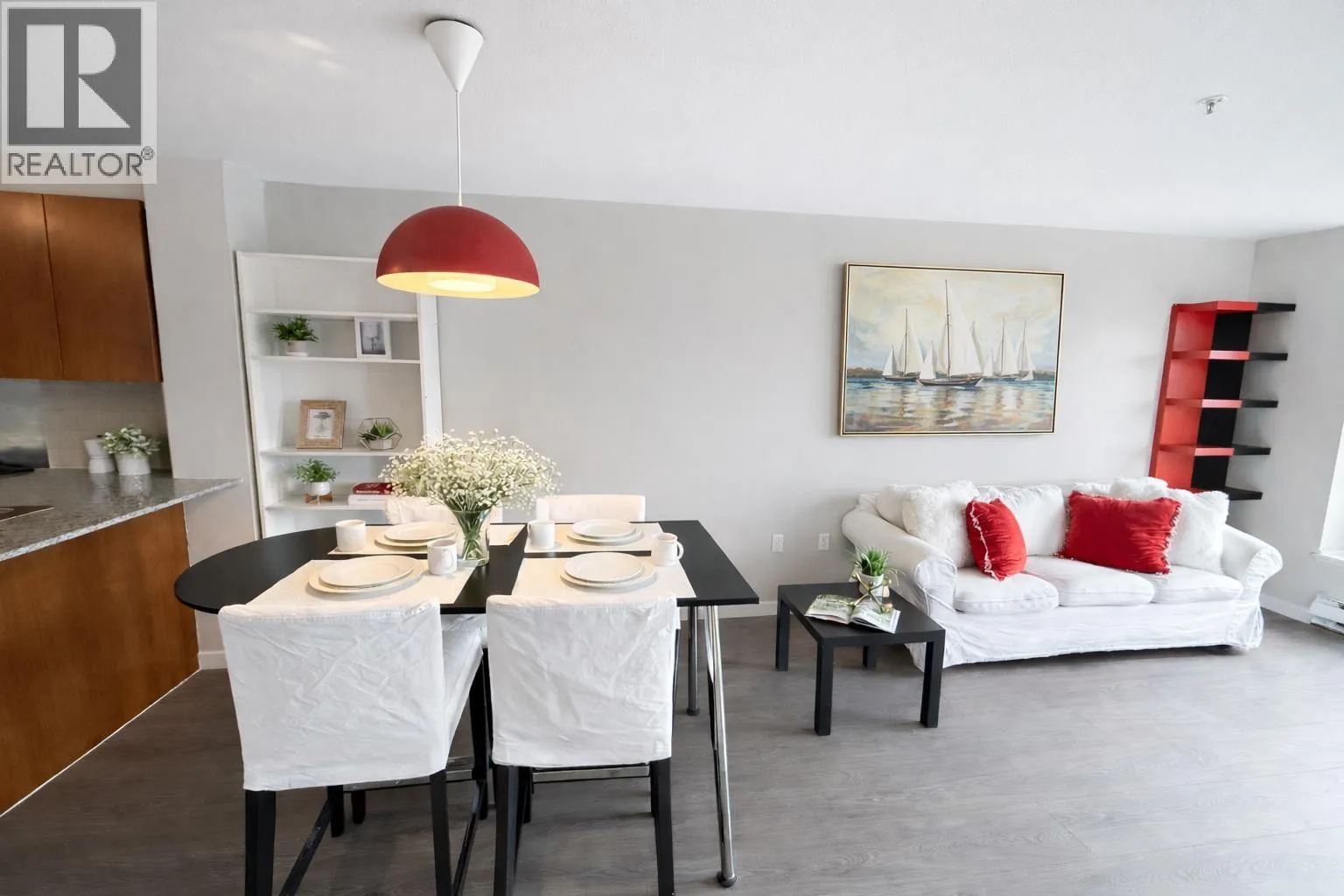 Enjoy super-quiet living in the heart of Metrotown at the award-winning MacPherson Walk West. This beautifully planned community features inspired architecture by Robert Ciccozzi and refined interiors by BYU Design, set within 3.5 acres of lush, professionally landscaped grounds that create a serene residential atmosphere. This bright corner two-bedroom home offers quality finishes throughout, including laminate flooring, stainless steel appliances, granite countertops in both the kitchen and bathroom, and contemporary wood-grain cabinetry. Soaring 10-foot vaulted ceilings enhance the sense of space and natural light, making the home feel open and airy. Includes Parking Stall #188 and 2 Storage lockers #26 & #38. Open house, Sunday, Jan 18 from 2-4 pm (id:27476)