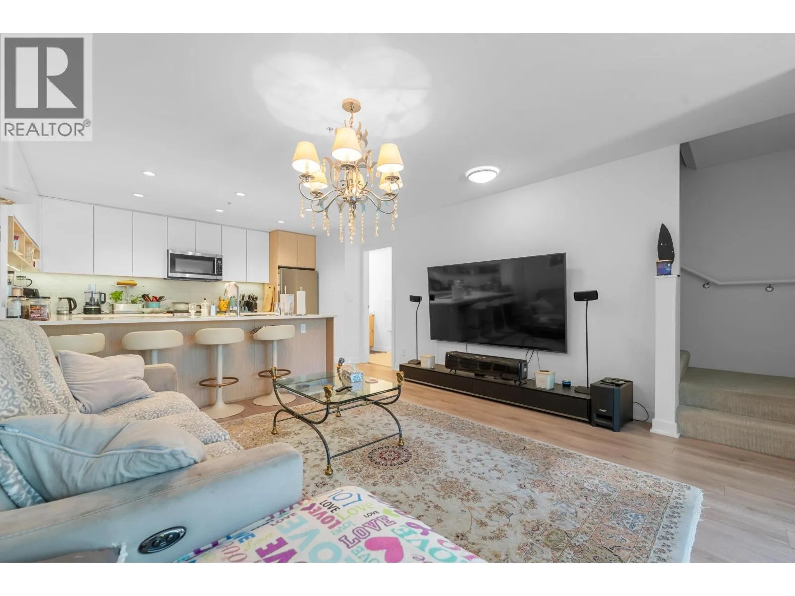Located on Burnaby Mountain - the highest point in metro Vancouver. This south-facing corner 3 beds + 3 bathrooms townhouse offers a stylish and comfortable living, the 3rd bedroom doesn't have window and could useas home office. The home features elegant wide plank laminate flooring in the main living areas, plush carpeting in the bedrooms, and a thoughtful layout that includes a private patio and a balcony off the primary bedroom - perfect for relaxing or entertaining. Residents enjoy access to premium amenities such as a large shared patio with BBQ, a state-of-the-art gym, and endless trails. 2 parking, a storage locker and a bike locker. Short walking to SFU campus, bus loop, shopping, restaurants, hiking and bike trails. (id:27476)
