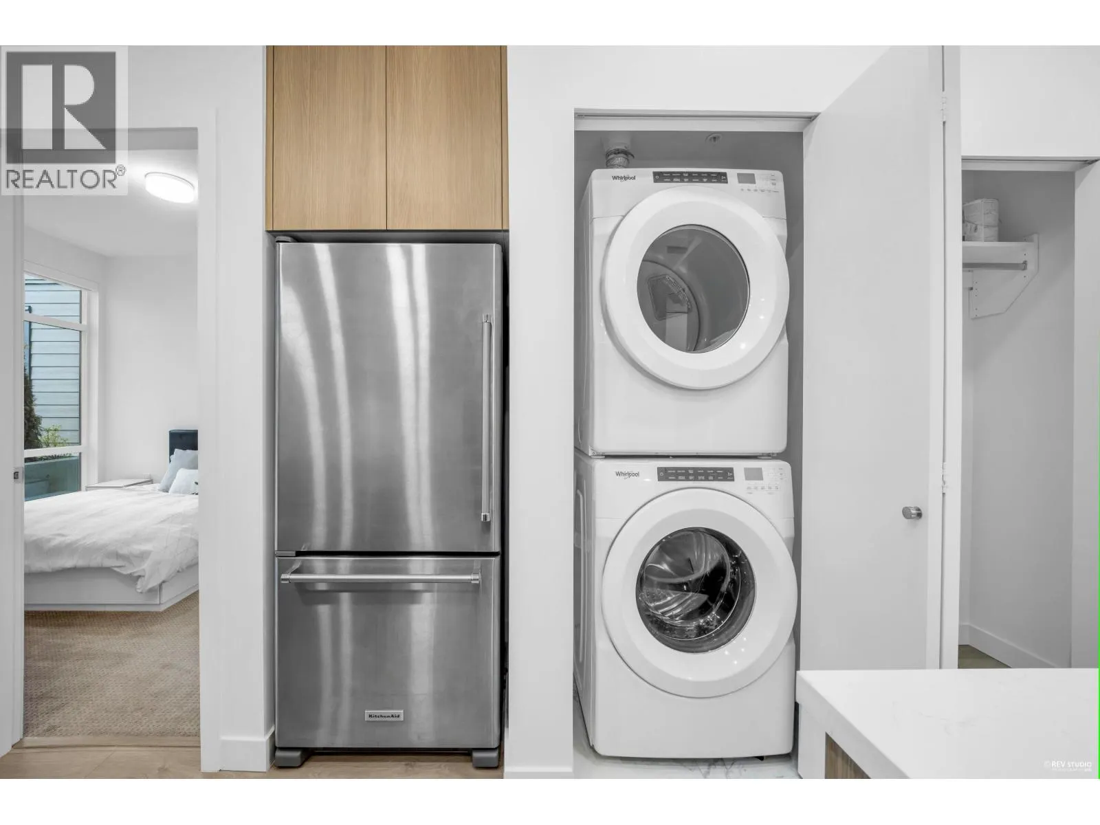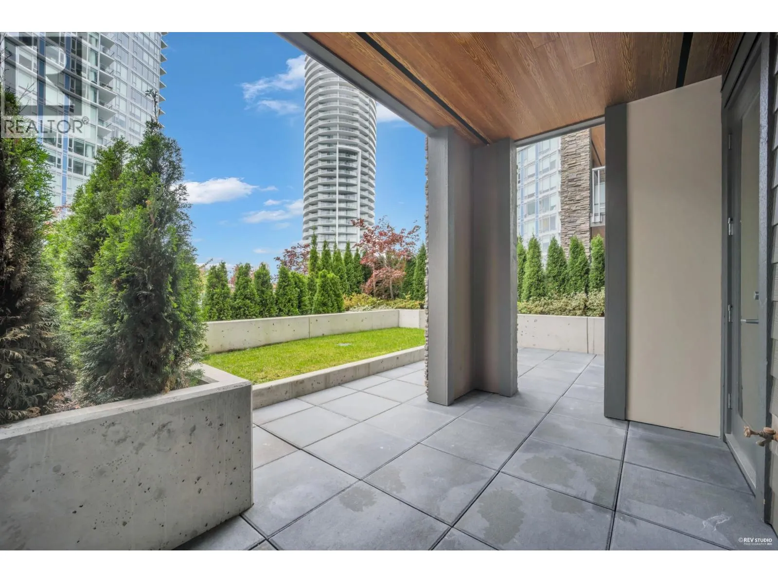 This secure, ground-level 2 bed, 2 bath home at Azure II offers the best of indoor-outdoor living with a quiet, inside-facing layout and a large private patio, ideal for relaxing or entertaining. Built by Ledingham McAllister, it features an open layout, high ceilings, full-size appliances, in-suite laundry, and a walk-in closet in the primary bedroom. Includes 1 parking and 1 storage locker, plus access to a gym, concierge, guest suite, and landscaped gardens. Walk to Edmonds SkyTrain, Rosemary Brown Rec Centre, schools, shops, and nearby trails like Byrne Creek Ravine trail, and Taylor Park with its off-leash dog area-where nature meets urban convenience. (id:27476)