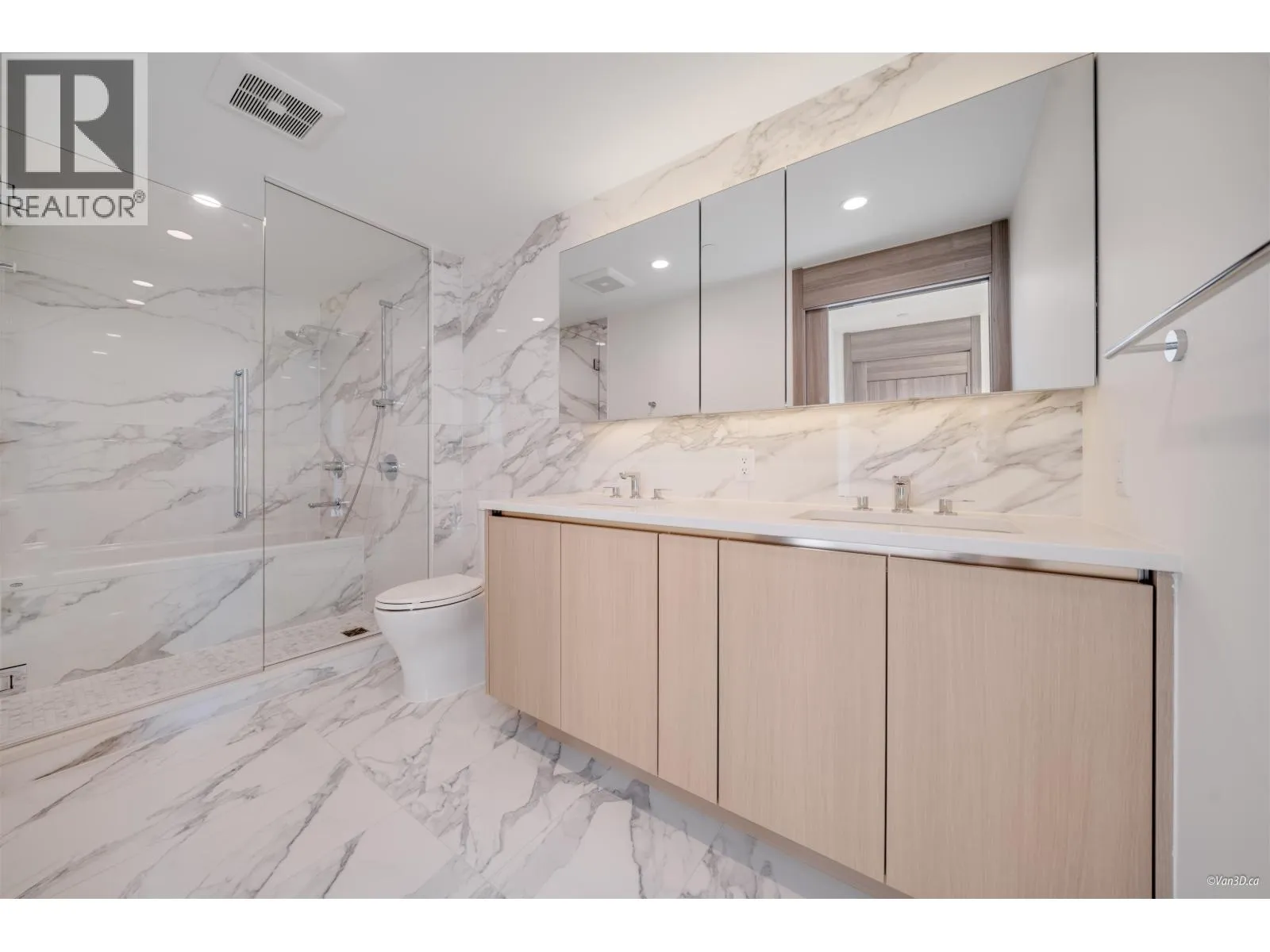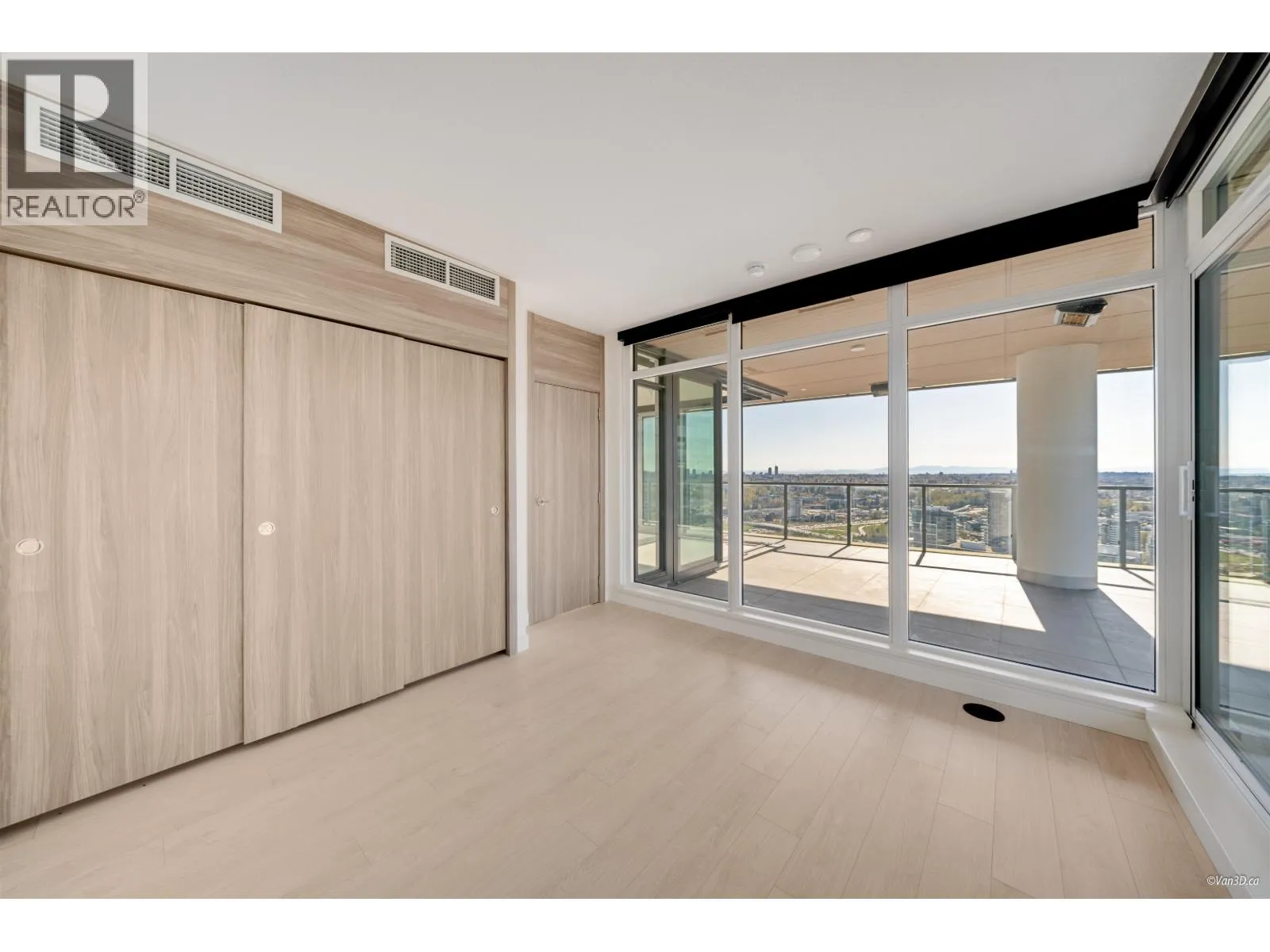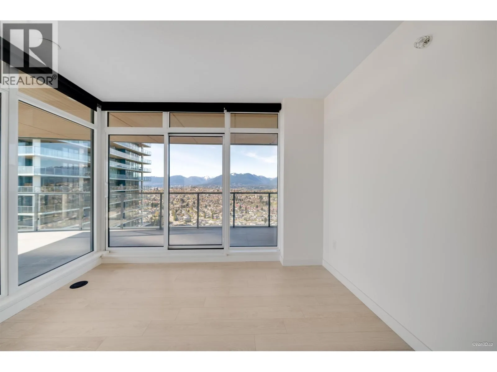 Brand new 2 bedroom unit in the sold out high floor exclusive Sky Collection. West facing corner unit showcases stunning views of Metrotown and the North Shore Mountains. Bedrooms are on opposite sides for added privacy. The gourmet kitchen includes a 5-burner gas cooktop and oven. A 500+ sqft tiled balcony with radiant ceiling heaters connects seamlessly via retractable glass doors. Amenities include concierge, car wash, dog grooming station, karaoke room, sports lounge, pingpong, fitness centre, yoga room. Enjoy automatic blinds in the living room, built-in closets automatic lighting, and air conditioning for year-round comfort. Steps away from Brentwood Mall, skytrain, shops and restaurants. Bonus: adaptive unit with automatic front door and sliding door. Can easily be easily converted. (id:27476)