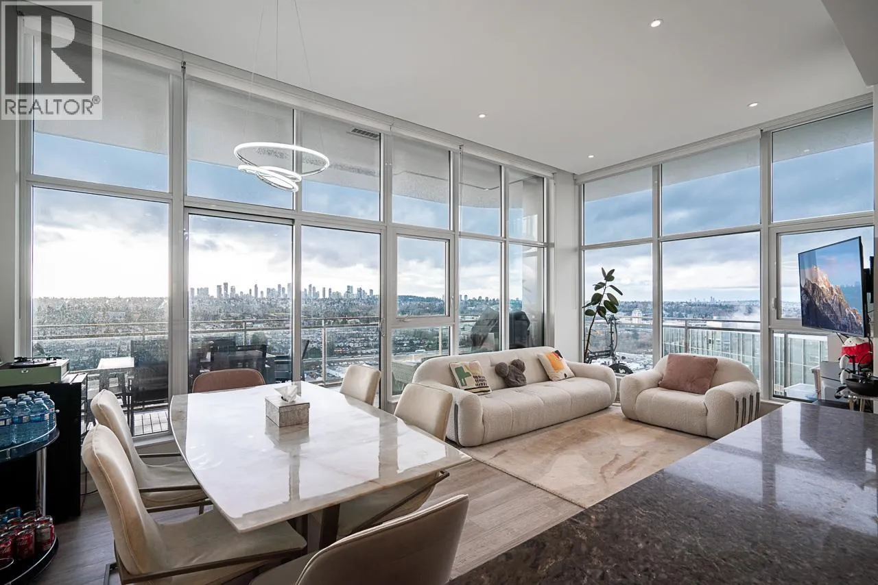 Luxury living in the stunning ETOILE sub-penthouse by Millennium Development, S/W facing with unobstructed views of Mount Baker and Metrotown. This elegant 2 bed, 2 bath plus den home features 10.8 ft ceilings, floor-to-ceiling windows, air conditioning, and refined modern finishes. The chef-inspired kitchen offers a waterfall island, Bosch appliances, and quartz countertops, complemented by spa-like bathrooms. Enjoy a 240 square ft covered balcony with heated floor and ceiling. Over 37,000 square ft of rooftop amenities include fitness centres, lounges, steam rooms, a 50 ft pool, hot tub, and BBQ area. Steps to Holdom SkyTrain, shopping, dining, Burnaby Lake, Christine Sinclair Community Centre, and Burnaby Tennis Club. Side-by-side parking, locker, Modo car share. Pets and rentals allowed. (id:27476)