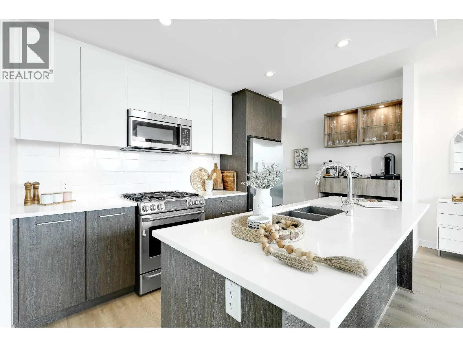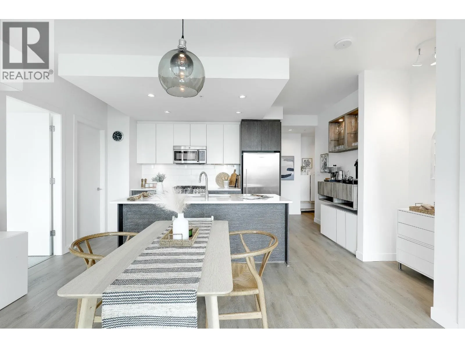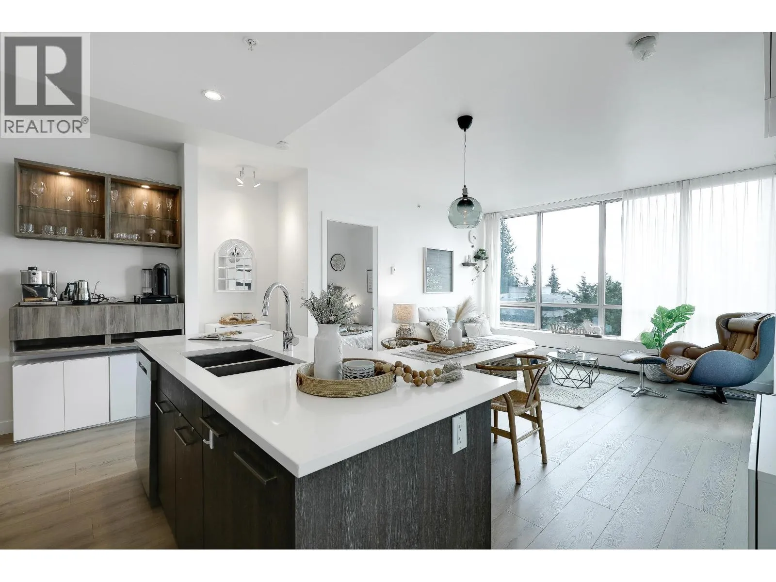ALTITUDE- SFU's master-planned University District. This bright 3 Bed + 2 Bath + Work station , Southwest CORNER unit has stunning Panoramic Mountain and city Views. NEW laminate flooring (July,2025) in livingroom and kitchen, 9 Ft. ceilings & floor-to-ceiling windows that fill the space with natural light. The two bedrooms are thoughtfully separated by the living/dining area, providing privacy & tranquility, very generous sized. Ample visitor parkings & EV chargers available. Just one block from SFU campus, bus loop, daycare, supermarket, & cafes. Strata fee includes heat , gas and hot water. (id:27476)