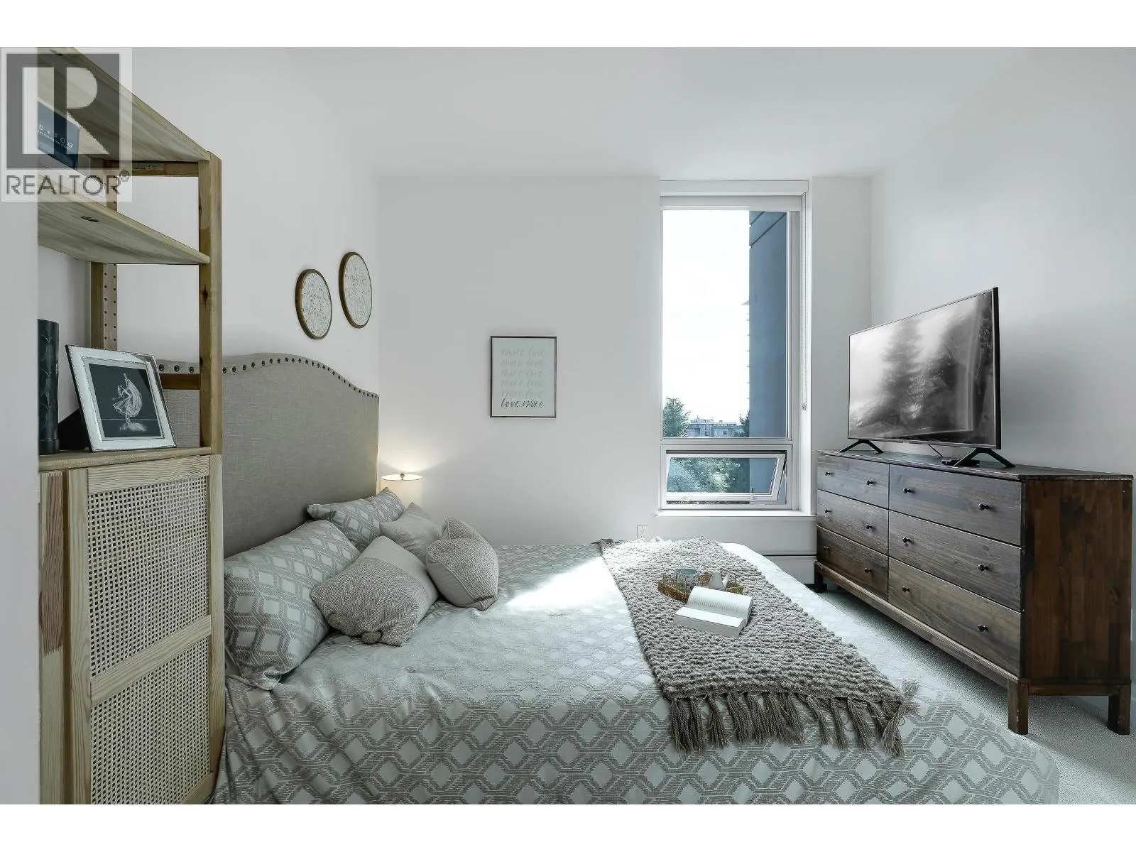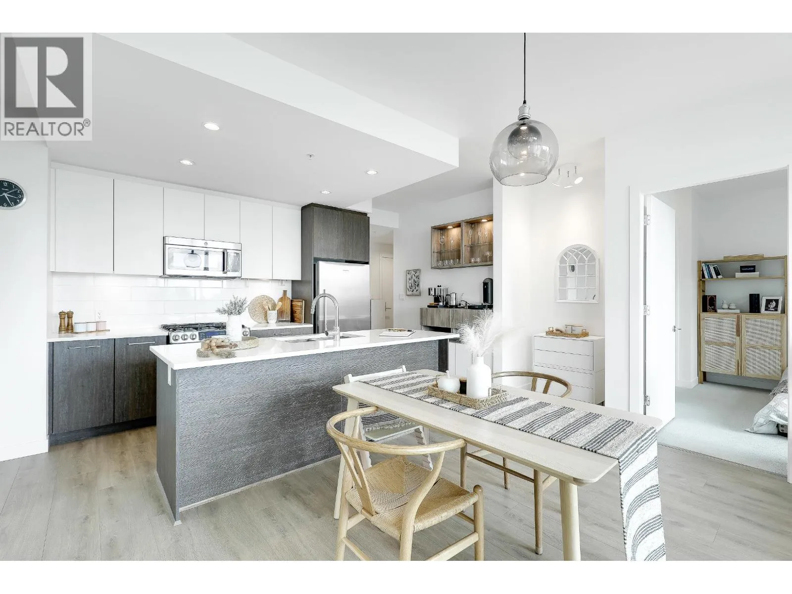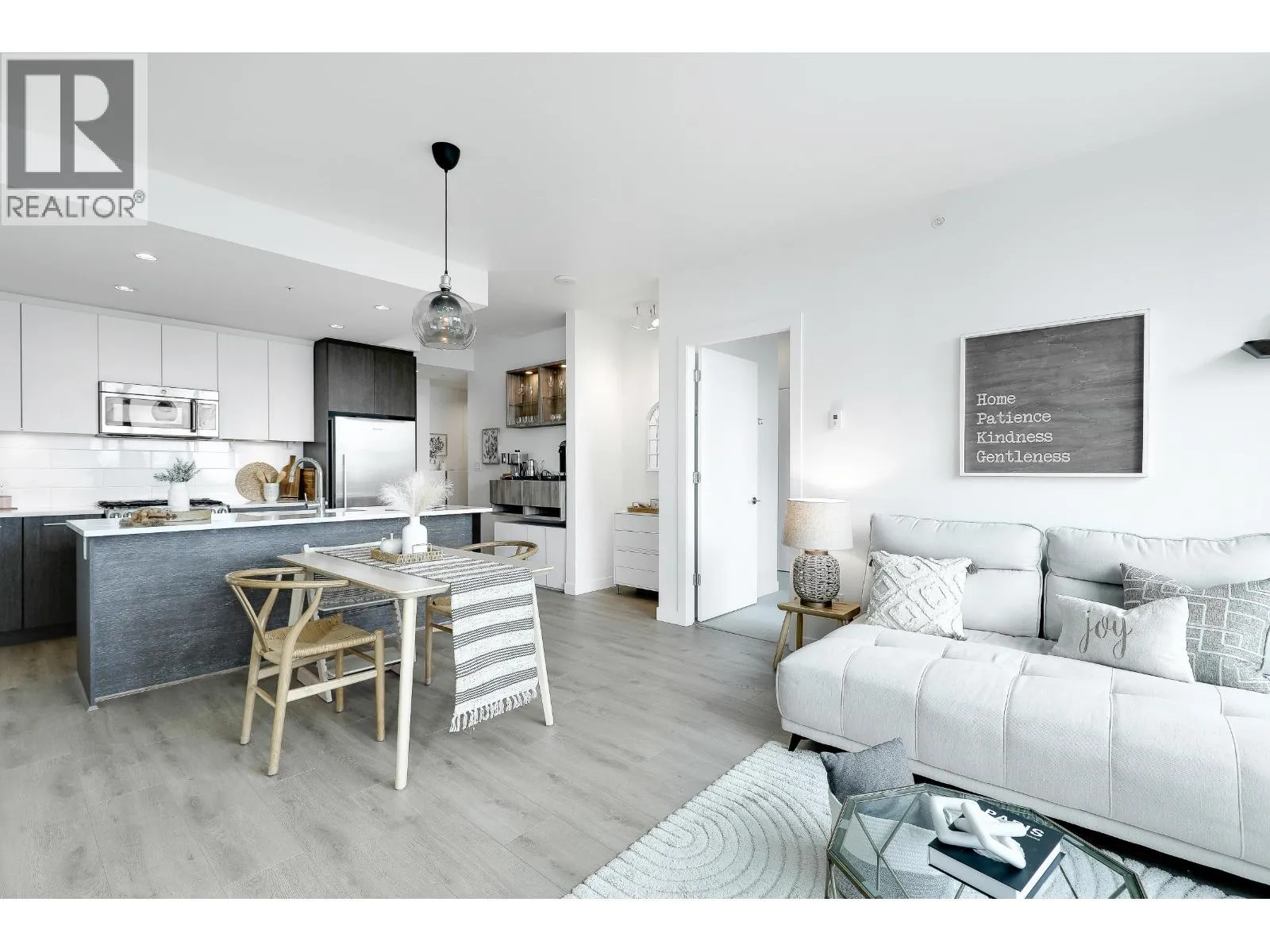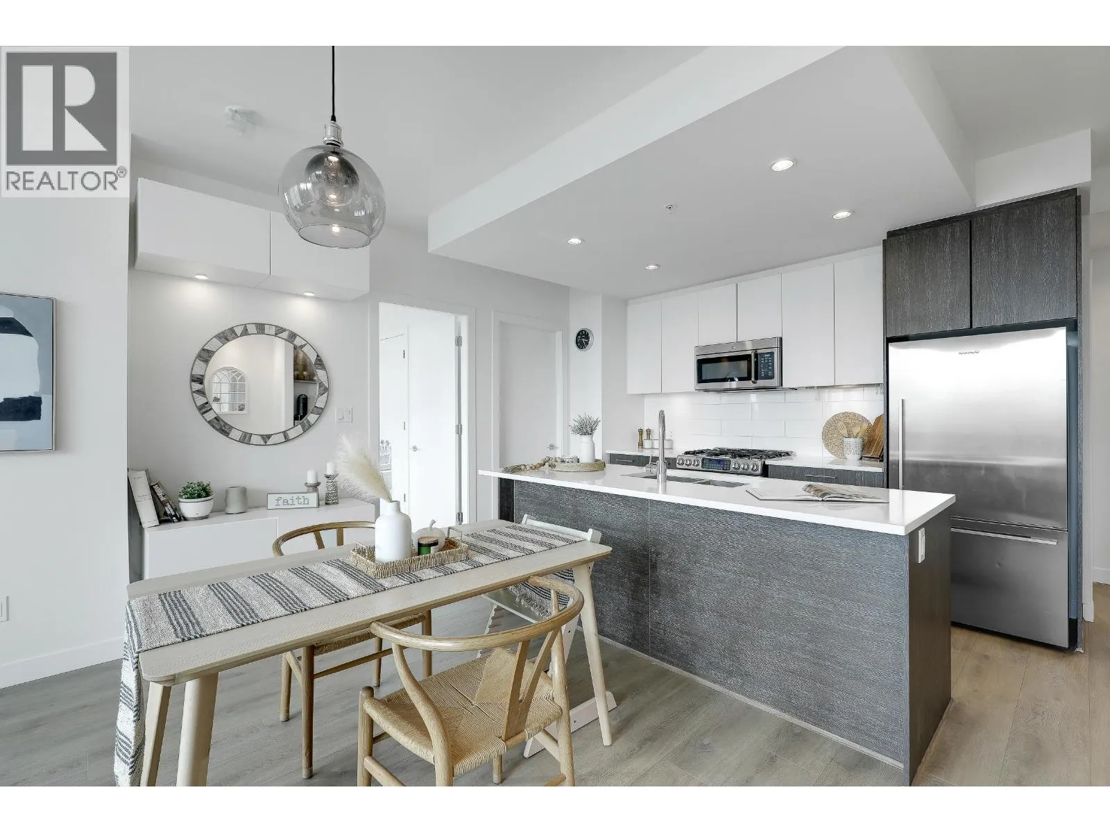 ALTITUDE- SFU's master-planned University District. This bright 3 Bed + 2 Bath + Work station , Southwest CORNER unit has stunning Panoramic Mountain and city Views. NEW laminate flooring (July,2025) in livingroom and kitchen, 9 Ft. ceilings & floor-to-ceiling windows that fill the space with natural light. The two bedrooms are thoughtfully separated by the living/dining area, providing privacy & tranquility, very generous sized. Ample visitor parkings & EV chargers available. Just one block from SFU campus, bus loop, daycare, supermarket, & cafes. Strata fee includes heat , gas and hot water. (id:27476)