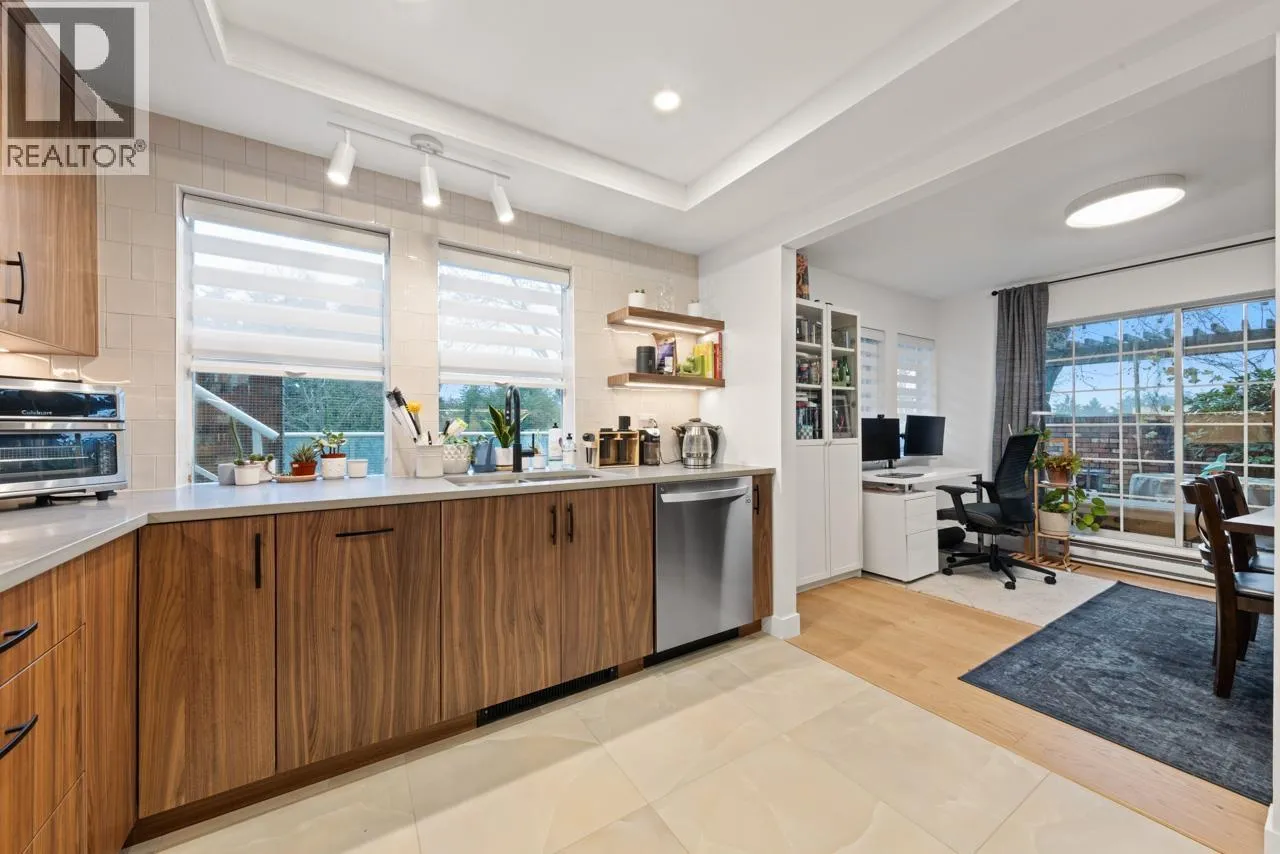 Welcome to Cascade Village! This bright & spacious beautifully renovated corner unit, with over 1200sqft of indoor living space, and over 650sqft of private outdoor space, is the upgrade you've been waiting for! Tastefully updated throughout, including engineered hardwood flooring, smart appliances, cozy gas fireplace, this home combines modern style, function, and a welcoming feel to it. Enjoy summer BBQ nights on your huge private enclosed patio! Generously sized bedrooms, and tons of storage space, side by side parking & storage locker also included. Well maintained complex with a gorgeous central garden, indoor pool & hot tub, sauna, gym, event room, and more. Fantastic location close to Brentwood, BCIT, Highway & Transit! Open House Sat 14th Feb 1-2pm (id:27476)