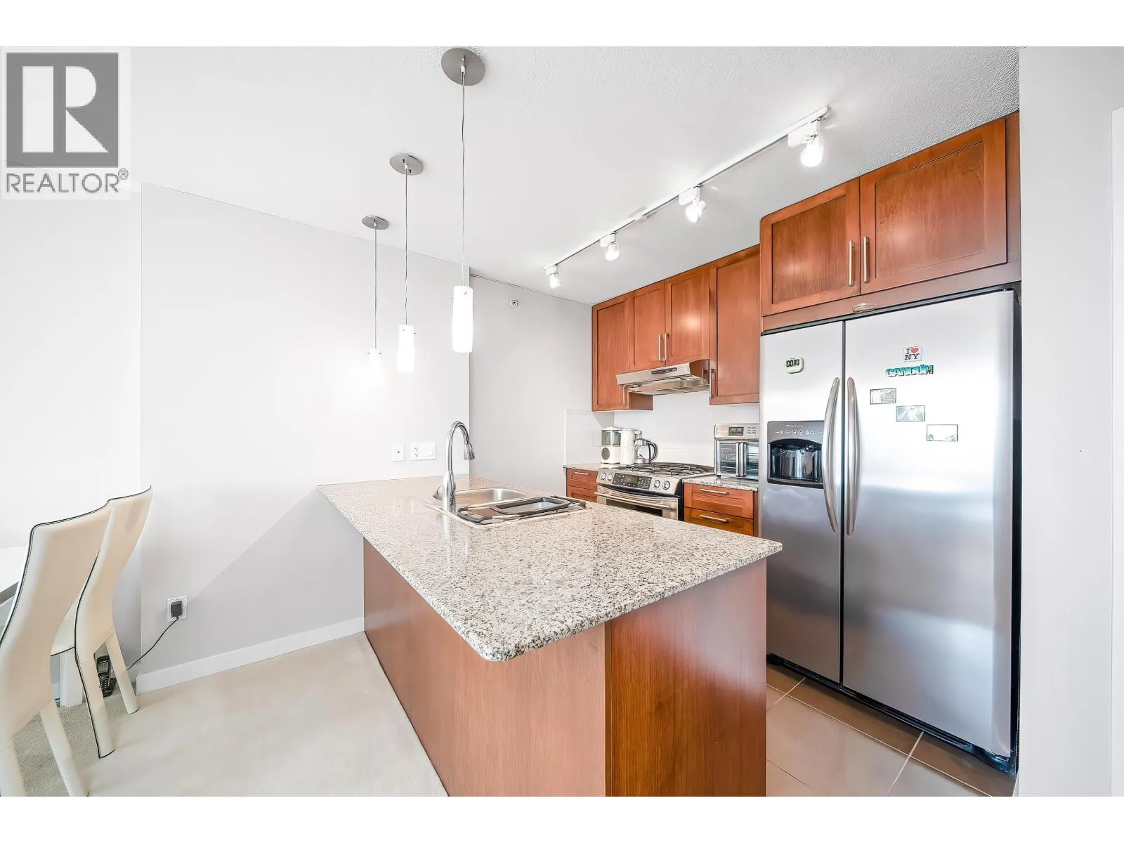 VIEWS! SPECTACULAR CITY, MOUNTAIN & WATER VIEWS! Welcome to WEST, a sought-after BOSA-built community in the heart of Highgate Village, Burnaby South. This spacious and bright 2-bedroom, 2-bathroom home offers a highly functional "no-wasted-space" layout. The generous east-facing primary bedroom easily fits house-sized furniture and boasts unobstructed views of Mount Baker and the lush courtyard below. Enjoy a modern open-concept kitchen with a gas range, granite countertops, and convenient in-suite laundry. A massive balcony extends from the living room and both bedrooms-perfect for relaxing or entertaining while taking in the breathtaking views. Comes complete with one secure underground parking stall and one storage locker. Don´t miss this opportunity-This is HOME! Come to show! (id:27476)