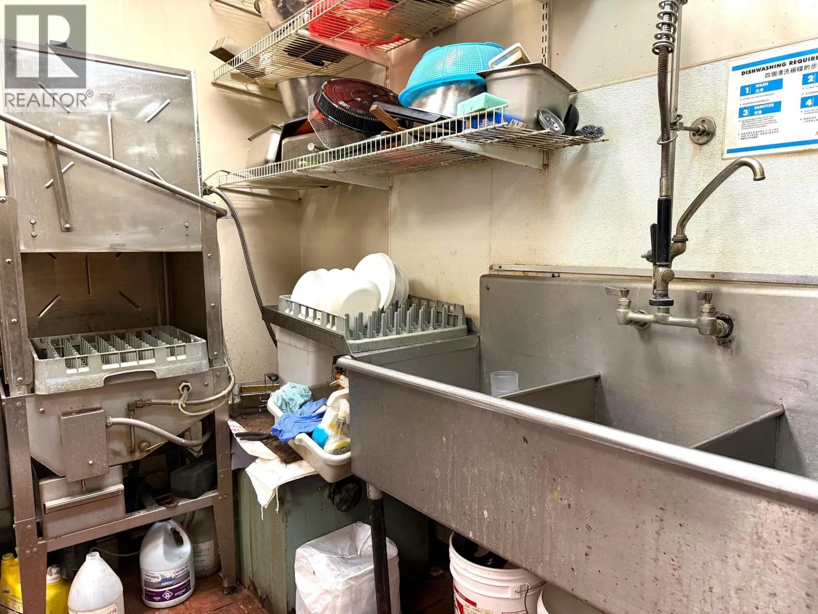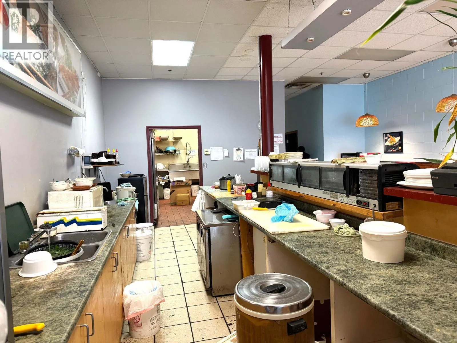 20-seat Japanese Sushi Take-out Restaurant just steps away from Production Way Skytrain Station, with excellent traffic flow. 1,289 sq. ft., new 5-yr term at a very reasonable lease rate. 10 years in business by the same owner. Change of use is possible with the landlord's approval. No commercial venting is installed in the kitchen. Please don't approach the employee or the owner, showing is by appointment only. (id:27476)