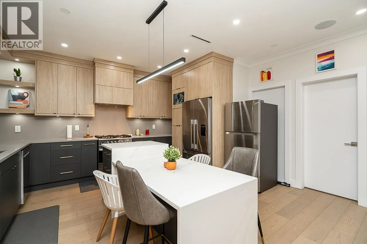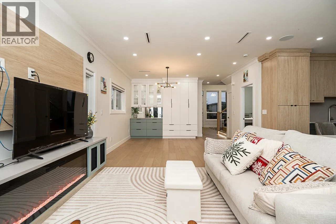 Impressive 5 beds, 4 baths half-duplex on a big lot in Burnaby East´s sought-after Edmonds area. This cozy home features multi colored pot lights, high ceilings, Fisher Paykel appliances, engineered wood, beautiful cabinetry, turf, a flexible layout and lots of room to entertain guests. Spacious living/dining areas, bright kitchen, and cozy family room make it perfect for families. Enjoy a large private yard with a shed, one car attached garage, equipped with AC and radiant heat. Mountain views from front deck. Conveniently located and close Robert Burnaby, Queens Park, Transit, Metrotown, Royal Mall, Edmonds Rec Centre, Schools, Restaurants, Shopping and Skytrain. This home blends luxury, convenience, and lifestyle in one exceptional package. Open House on Jan 17th (Sat) 2-4 PM. (id:27476)