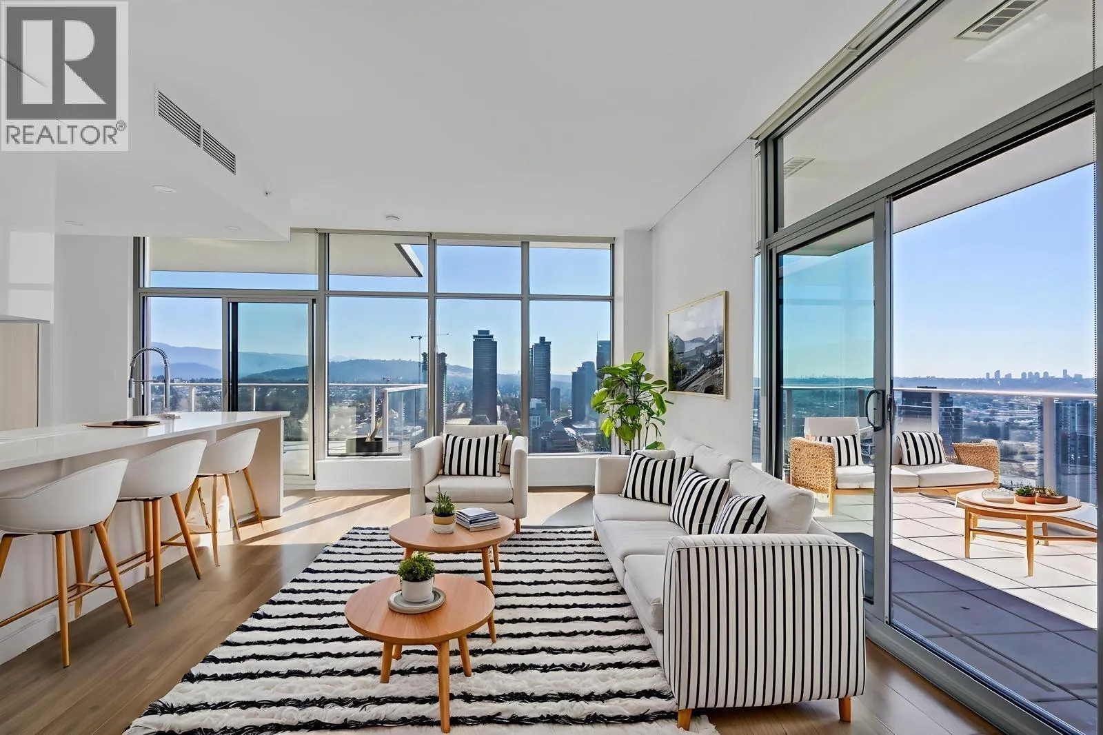 Welcome to Triomphe! Experience breathtaking 260-degree views of the water, city, and mountains from this stunning penthouse offering 2 bed +den & 2 bath.Delight in the expansive 468 sqft of balcony space, perfect for entertaining against a backdrop of picturesque scenery.This exquisite residence boasts 9'3" ceilings & floor-to-ceiling windows that create an airy ambiance. The chef´s kitchen features a breakfast bar & stainless steel Bosch appliances. Both bedrooms enjoy spectacular views with access to the balcony, while the master suite includes a luxurious 5 piece ensuite equipped with his & her sinks and a relaxing soaker tub.Take advantage of exceptional amenities, including a 13,000 square ft outdoor pool,hot tub, fitness center, yoga room,.. Plus, 2 large side by side Parking & Storage. (id:27476)