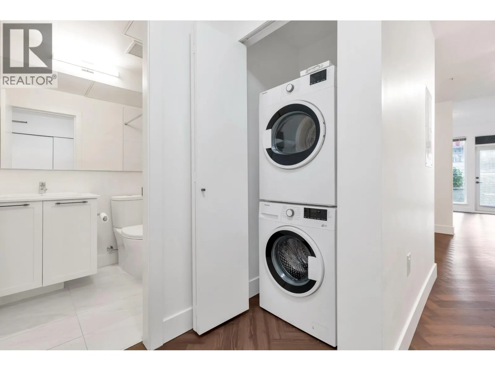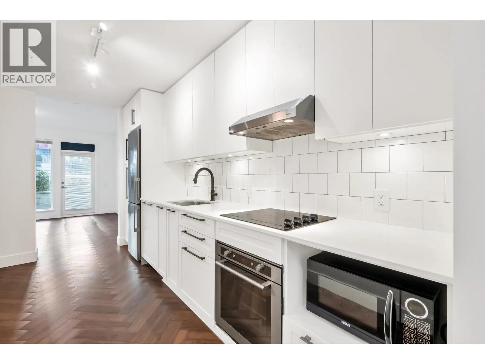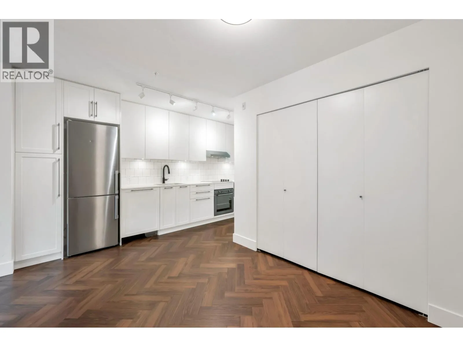 Located at FRASER by MOSAIC at SFU, this pristine one-bedroom studio is in near brand-new condition. The modern kitchen features stainless steel appliances, sleek cabinetry, and a clean, contemporary design. The bedroom is thoughtfully separated to provide privacy, offering a cozy retreat with ample room for a comfortable bed and storage. A neutral color palette and carefully selected finishes create a calm, inviting atmosphere throughout the home. The flexible living area allows for multiple layout options to suit your lifestyle. One convenient parking stall is included, located on P1 just steps from the elevator. (id:27476)
