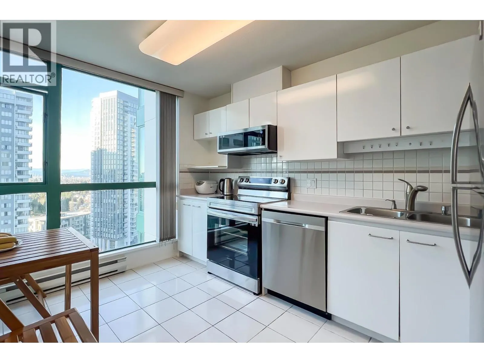 Welcome to Paramount by BOSA, a solid concrete building in the heart of Metrotown. This bright and spacious 2 bedroom, 2 bathroom southwest-facing corner unit features 1,063 square ft of well-designed living space with separate living and dining areas, plus a kitchen with eating nook. Partial renovations completed in 2023 add modern comfort and value. Expansive windows fill the home with natural light. Steps to SkyTrain, Central Park, restaurants, and shopping. Well-managed building(UPDATED ENVELOPE unlike 5899 Wilson, plus etc) with exercise centre, steam room, and bike room. A rare opportunity to own a move-in-ready home in a prime location. (id:27476)