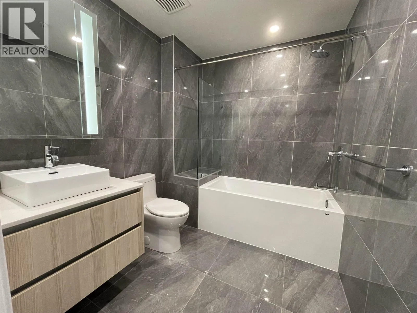 Modern luxury living by well known developer Millennium. Air-Conditioned + Quality built high rise condo with big balcony. Spacious 1 Bedroom + Den unit . Spacious bedrooms. Inspiring Open kitchen with Large Marble-inspired Porcelain tile backsplash, Stainless-Steel German Bosch appliances and Bosch Gas-cook top, integrated Bosch Refrigerator. Luxurious Bathroom with double vessel sink, floating mirror, and Marble-inspired Porcelain tile surrounding shower and to the ceiling. Rare 1 Bedroom Corner unit with unobstructed view. Close walking distance to Holdem Skystrain station, Brentwood Mall, costco, restaurants, and offices. convenience transit to downtown or SFU. 7days Warm concierge and Care. Unit well maintained, just like new. (id:27476)