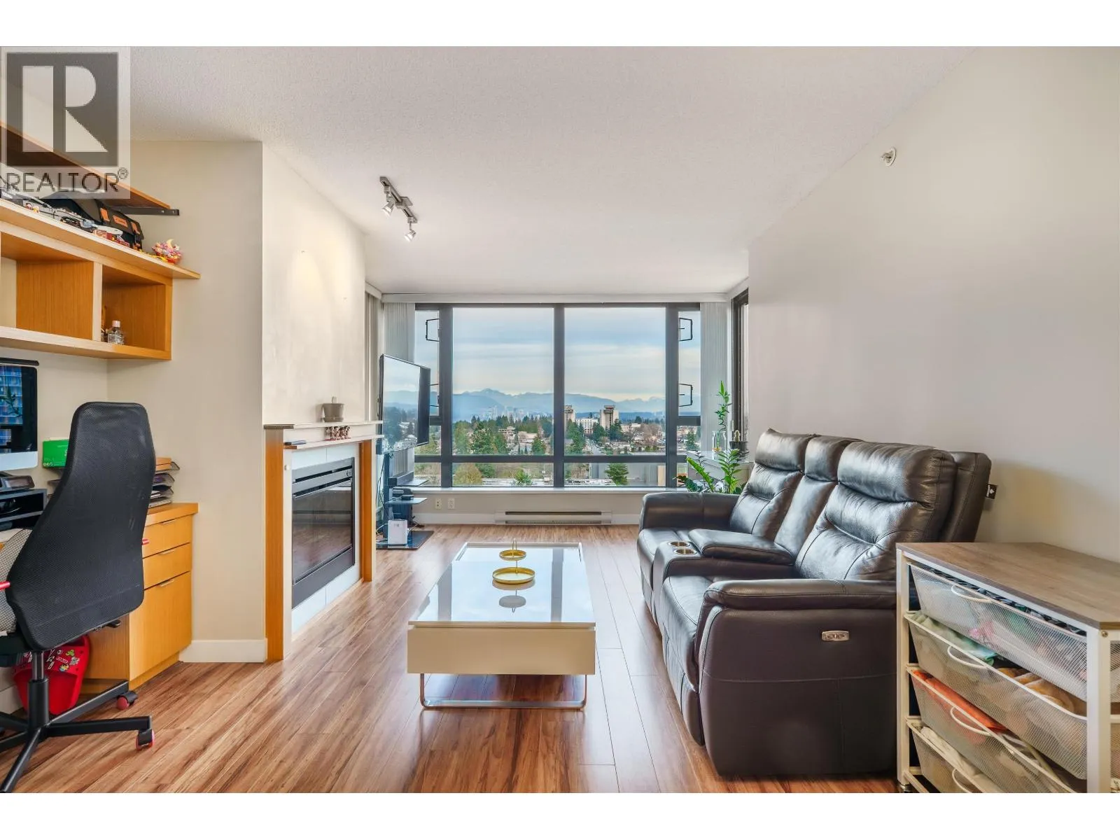 BREATHTAKING northeast mountain and city views define this bright and modern 1 bedroom home at Esprit 2 by BOSA, located in the heart of Highgate Village. The living room features three walls of windows, offering exceptional natural light and panoramic views. Thoughtfully designed with an open kitchen including granite countertops, stainless steel appliances, and double sinks, plus abundant storage throughout. A built-in workspace adds smart functionality. Enjoy hardwood flooring in the living room and bedroom, a new laundry set, a spacious balcony, 1 parking, and 1 storage. Outstanding amenities include a large gym, sauna/steam room, library, party room, and gated pet-friendly garden. Steps to groceries, library, community centre, SkyTrain, Metrotown, and Highway 1. Open House: SAT 2-4 (id:27476)