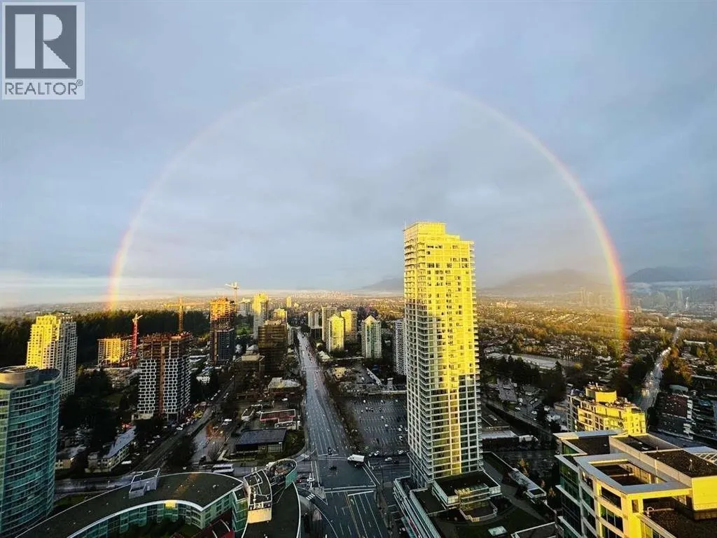 Experience luxury living in this 3-bedroom, 2-bath corner unit on the 36th floor of Station Square Tower 6. 1,118 square ft of interior space & 170 square ft of balconies, this northwest-facing home boasts breathtaking mountain and lake views from Downtown Vancouver to Deer Lake and Lougheed. Custom upgrades further enhance the space, including a dining sideboard with a stone countertop & additional storage, a Samsung Frame TV feature wall, an integrated home office with storage in the master bedroom, as well as a full-height mirror with wall-mounted shoe cabinet by the entryway. Three balconies, carefully finished with PVC tiles from edge to edge, provide a serene outdoor retreat. Amenities include a fitness center, sauna, & 24/7 concierge. (id:27476)