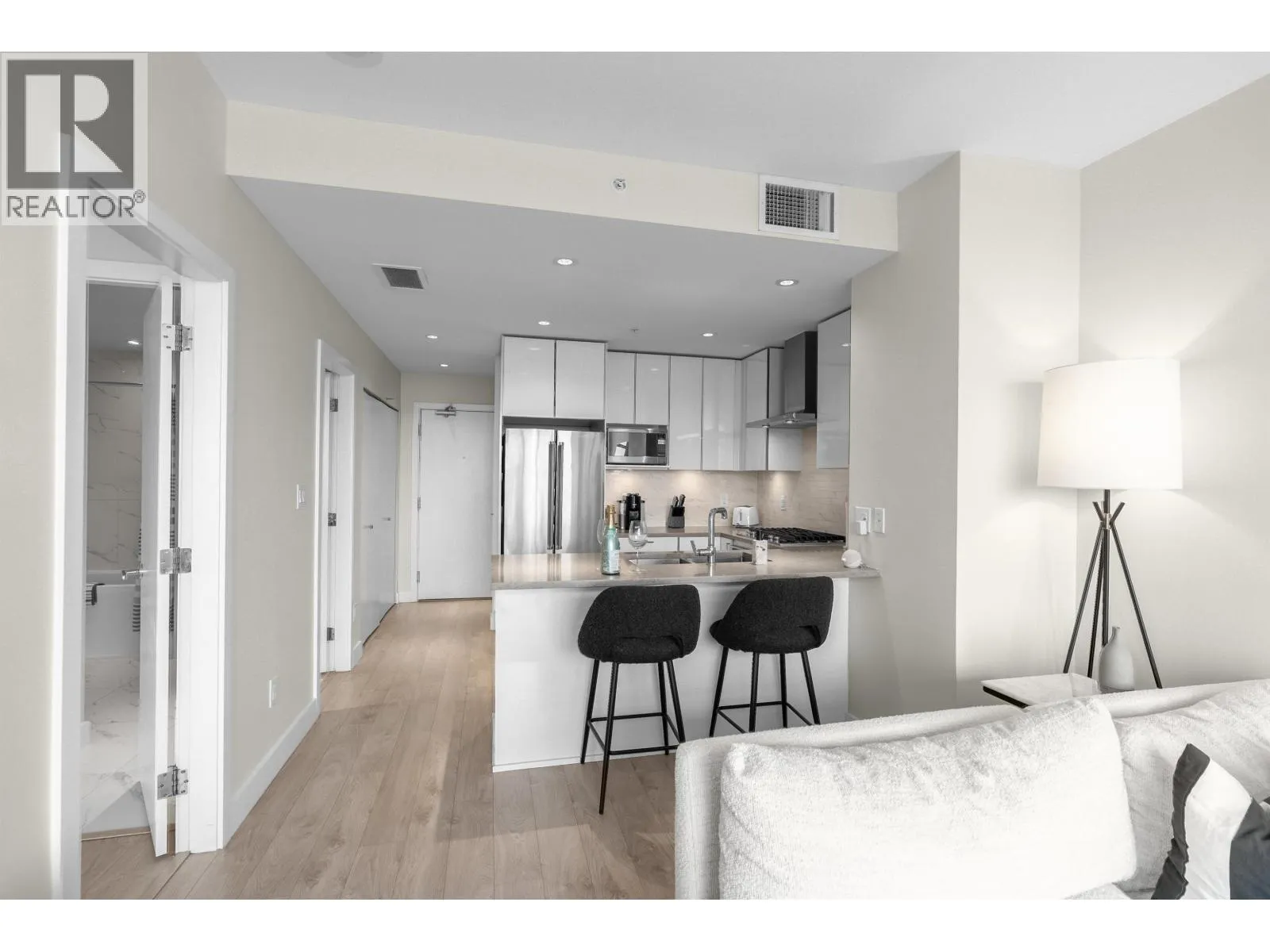 Welcome to Escala, a modern concrete high-rise in the heart of Brentwood. This bright 1-bedroom + den home offers a sleek open-concept layout with 9 ft ceilings and floor-to-ceiling windows showcasing an unobstructed view. The contemporary kitchen features Caesarstone countertops, tile backsplash, and full-size stainless steel appliances. Spacious bedroom with a walk-in closet and a spa-inspired bathroom with a deep soaker tub and rainfall shower. Premium amenities include an indoor pool, fully equipped gym, movie theatre, study room, elegant party room, meeting room, and guest suite. Comes with 1 parking and 1 locker. Steps to SkyTrain, shopping, restaurants, and everyday conveniences. Ideal for homeowners or investors. (id:27476)