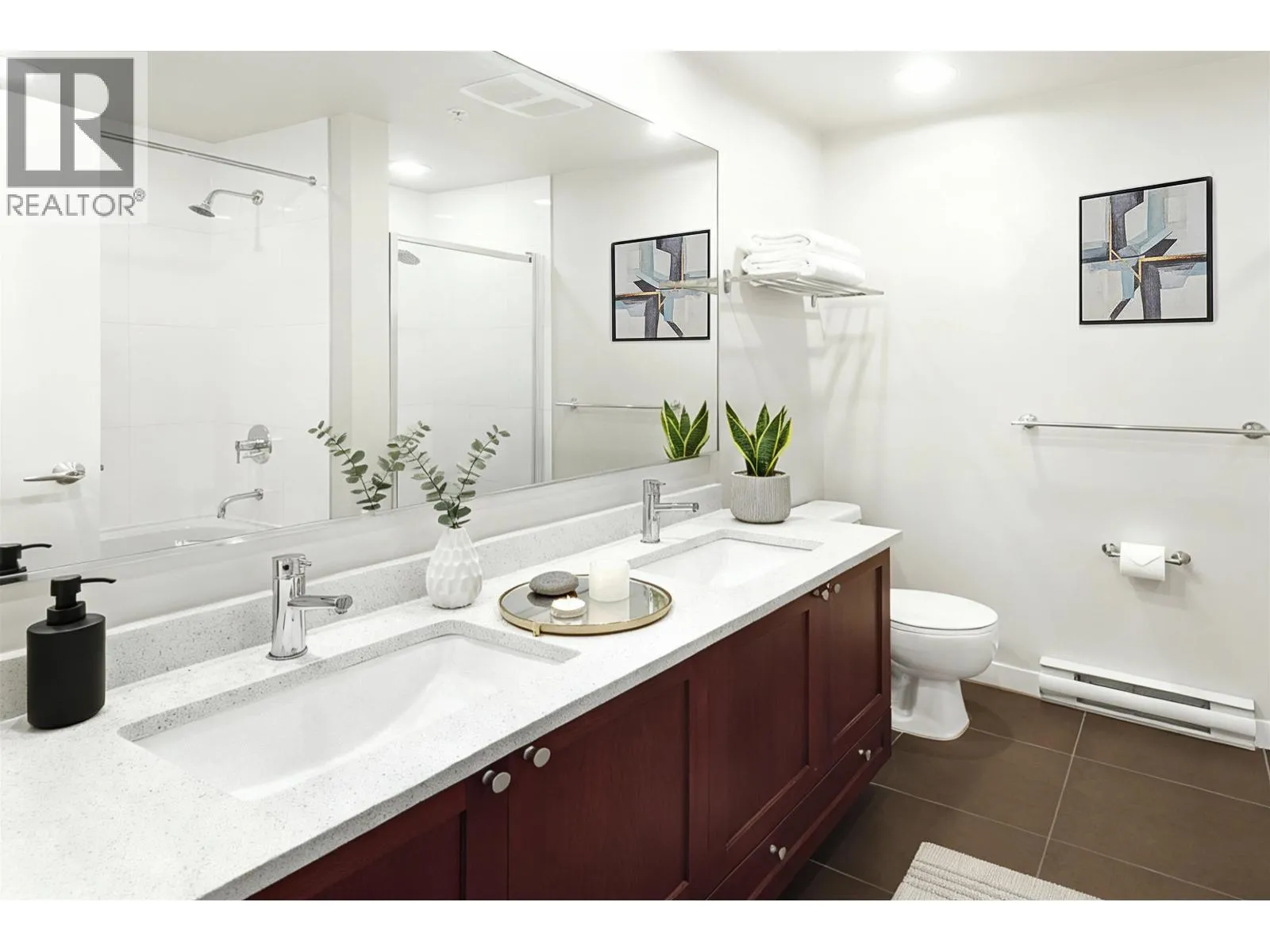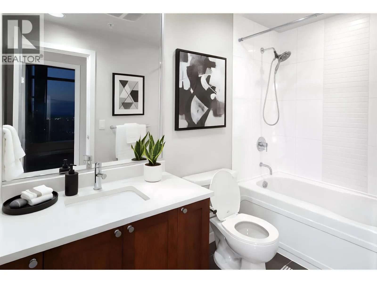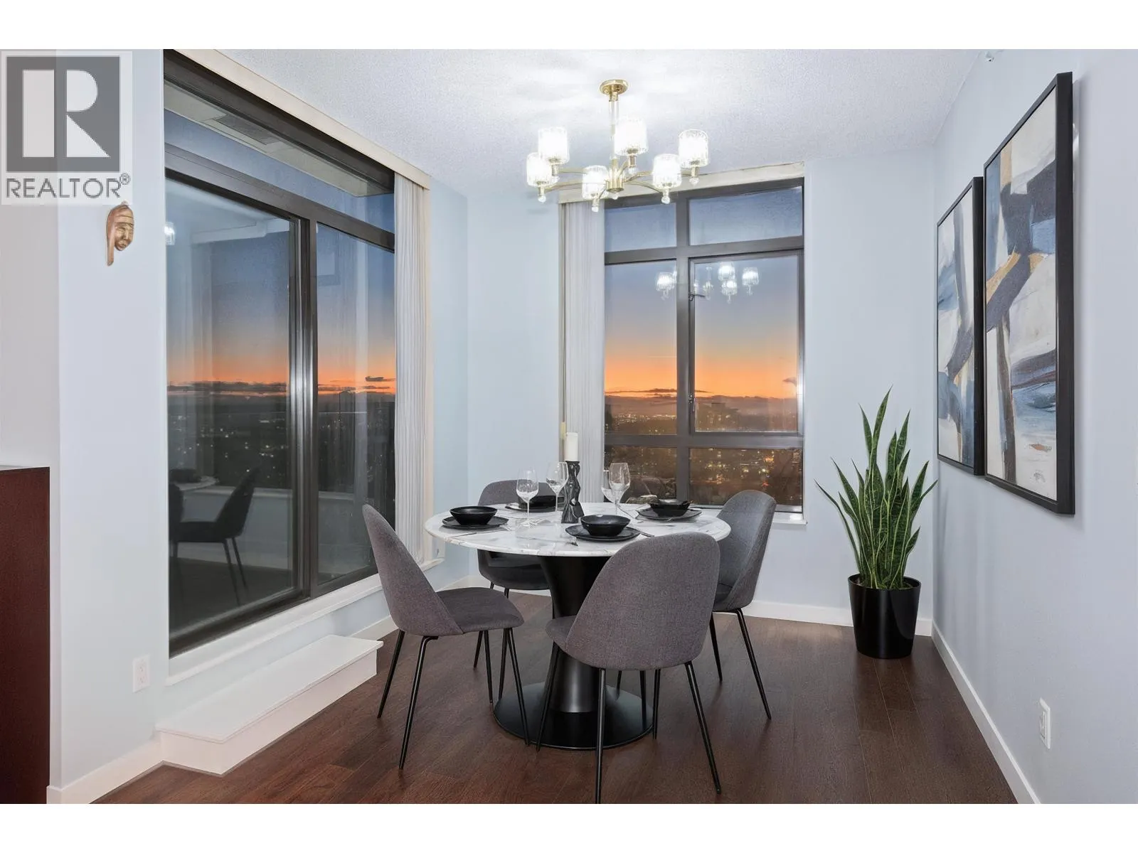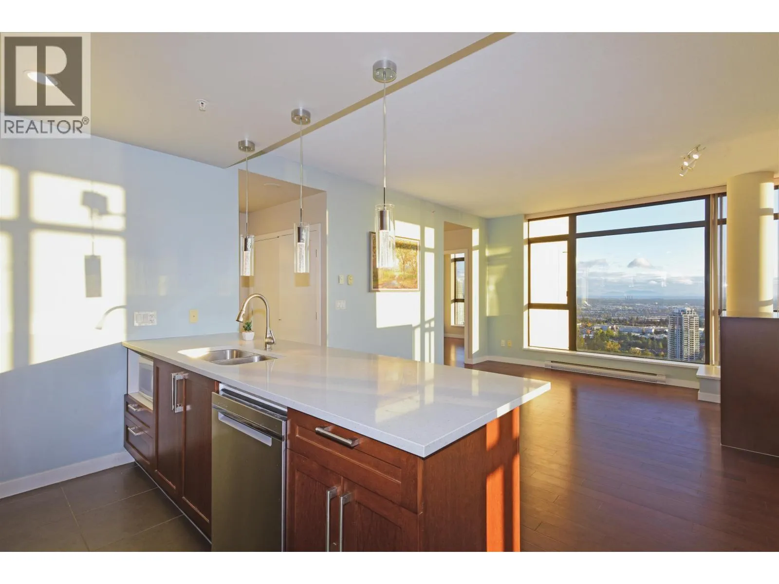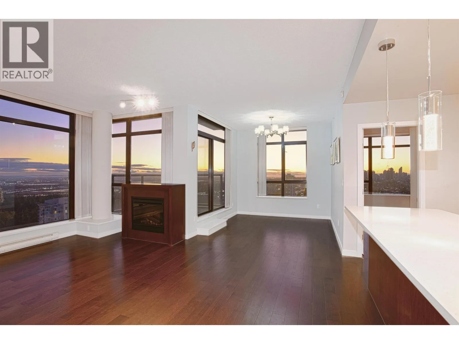Rare PENTHOUSE | 270° Panoramic Vistas | Total Privacy. This premier SW Corner 3-Bed, 2-Bath home features a breathtaking sweep of Fraser River, Mt. Baker & DT Skyline. Upgrades (2020): High-quality engineered hardwood floors in all bedrooms, fresh interior paint, & new quartz counter/sink in 2nd bath. Features 9' ceilings, quartz counters in kitchen/ensuite, 2 balconies & 2 SIDE-BY-SIDE PARKING. NEW Appliances: Fridge, Hood, Washer/Dryer (2020); Dishwasher (2024); Gas Stove (2025). Steps to Highgate shopping, dining & SkyTrain. Luxury Move-In Ready Home Above The Clouds. (id:27476)