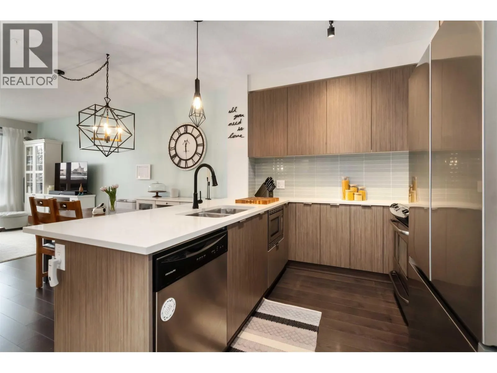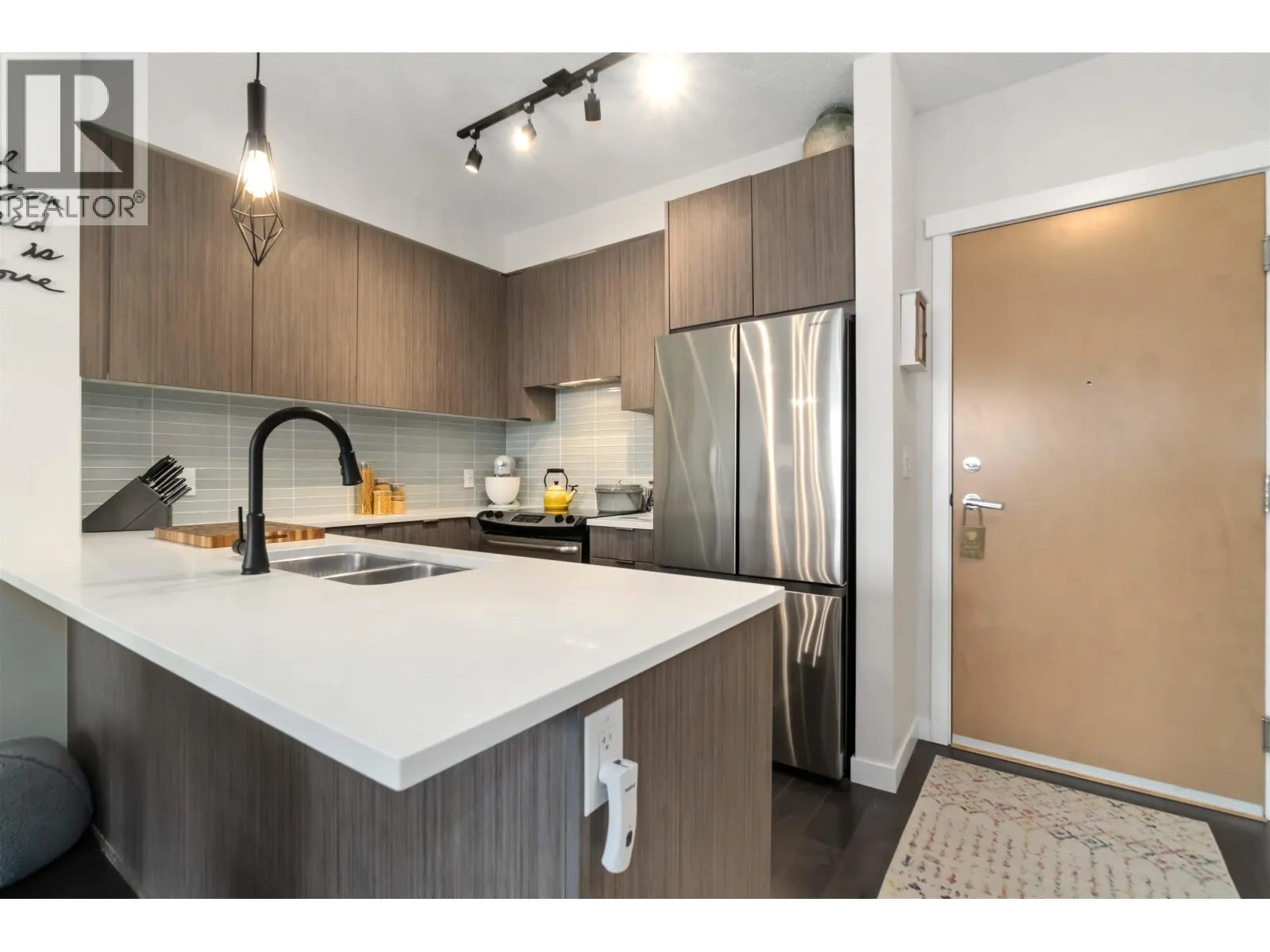 Here it is! Top floor unit with amazing views at the Veritas by Polygon. Stunning open concept living in this 2 bedroom, 1 bath home. Bright and airy with vaulted ceilings make the space look bigger than it is! Step through your front door to a great sized kitchen and living space. QUARTZ counters, LAMINATE floors and STAINLESS appliances top this incredible condo off! Buy as an investment or live in today! STEPS to all major amenities, shopping, trails and SFU! Best priced 2 bedroom on the mountain! Call today as this one won't last long! Open House Saturday Feb 7, 2026 - 2:00-3:30pm (id:27476)