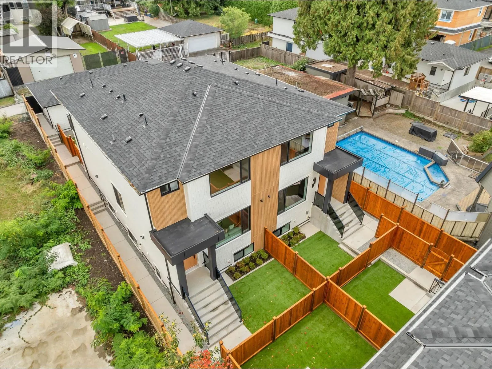 Introducing a BRAND-NEW HALF-UNIT located in the BACK BUILDING of a peaceful Burnaby Lake enclave, set on a rare Approx. TOTAL 50 X 194 FT LOT. This thoughtfully designed home offers 3-Level OF LIVING with 5 BDRMS and 5 Bathrooms, ideal for large or extended families. The main floor features a Bright OPEN-CONCEPT LAYOUT with a MODERN KITCHEN, dining area, and powder room. Upstairs includes 3 BDRMS , 2 BATHS, and a PRIVATE BALCONY Off the Primary Suite. The lower level provides 3 ROOMS, 2 BATHS, A large REC. RM, and a SEPARATE ENTRANCE. Enjoy A/C, Radiant Heat & Heat Pump, Security Cameras, PRIVATE FRONT & BACK YARDS, and REAR 1-CAR GARAGE. Nestled on a QUIET CUL-DE-SAC, close to TRANSIT, SHOPPING, PARKS, AND MAJOR ROUTES. (id:27476)
