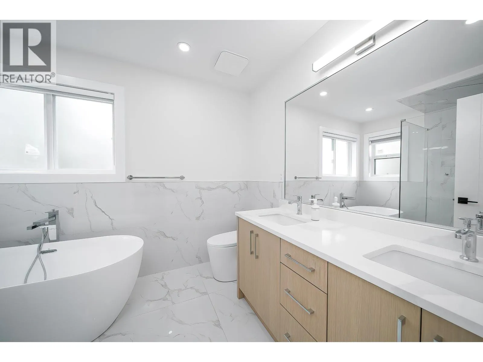 Newly built 2024 detached home offers excellent investment potential with basement generating $3,350+/month. North-facing with stunning North Shore mountain and Capitol Hill views. Upstairs features 3 spacious ensuite bedrooms for privacy and comfort. Main floor includes additional ensuite bedroom, perfect for guests or multi-generational living. Open-concept chef´s kitchen with massive island, stainless steel appliances, and spacious Wok kitchen. Basement suite includes flexible bonus space and separate bathroom. Equipped with radiant floor heating, A/C, HRV, and security system. Located in Burnaby Central Secondary catchment with easy access to Canada Way & Highway. 2-5-10 Year Home Warranty. No GST. (id:27476)