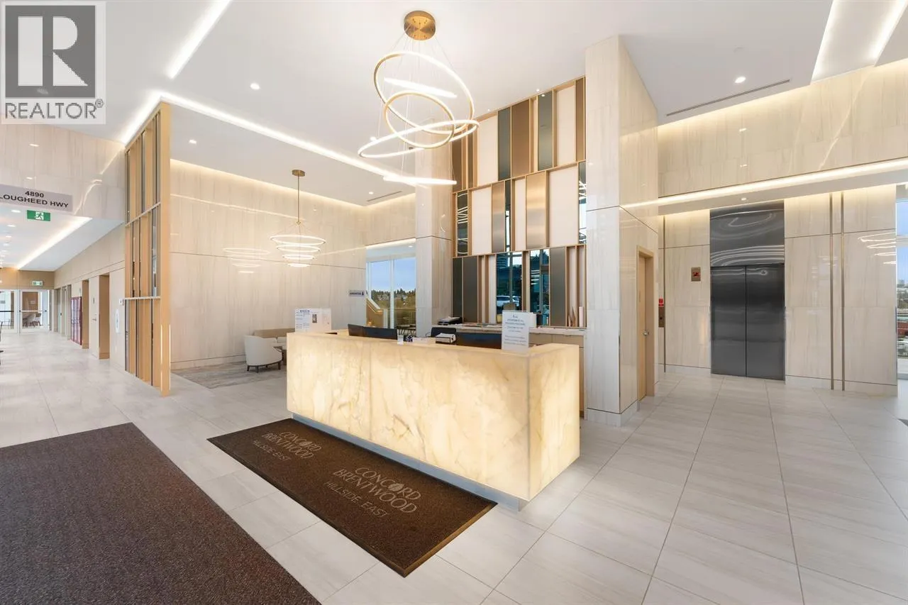 Welcome to Concord Brentwood Hillside East! This bright and spacious 910 sqft 2 bed, 2 bath + large den (fits a double bed) offers the perfect blend of comfort and luxury. Enjoy 8'8 ceilings, central A/C, floor-to-ceiling windows, a sleek kitchen with Bosch appliances, quartz countertops, and spa-inspired bathrooms. The expansive heated balcony is perfect for year-round enjoyment with stunning city and mountain views. Resort-style amenities include 24/7 concierge, gym, yoga room, music/karaoke rooms, study room, sports lounge, pet spa, and touchless car wash. Includes EV parking + storage. Steps to SkyTrain, Brentwood Mall, restaurants & more! (id:27476)