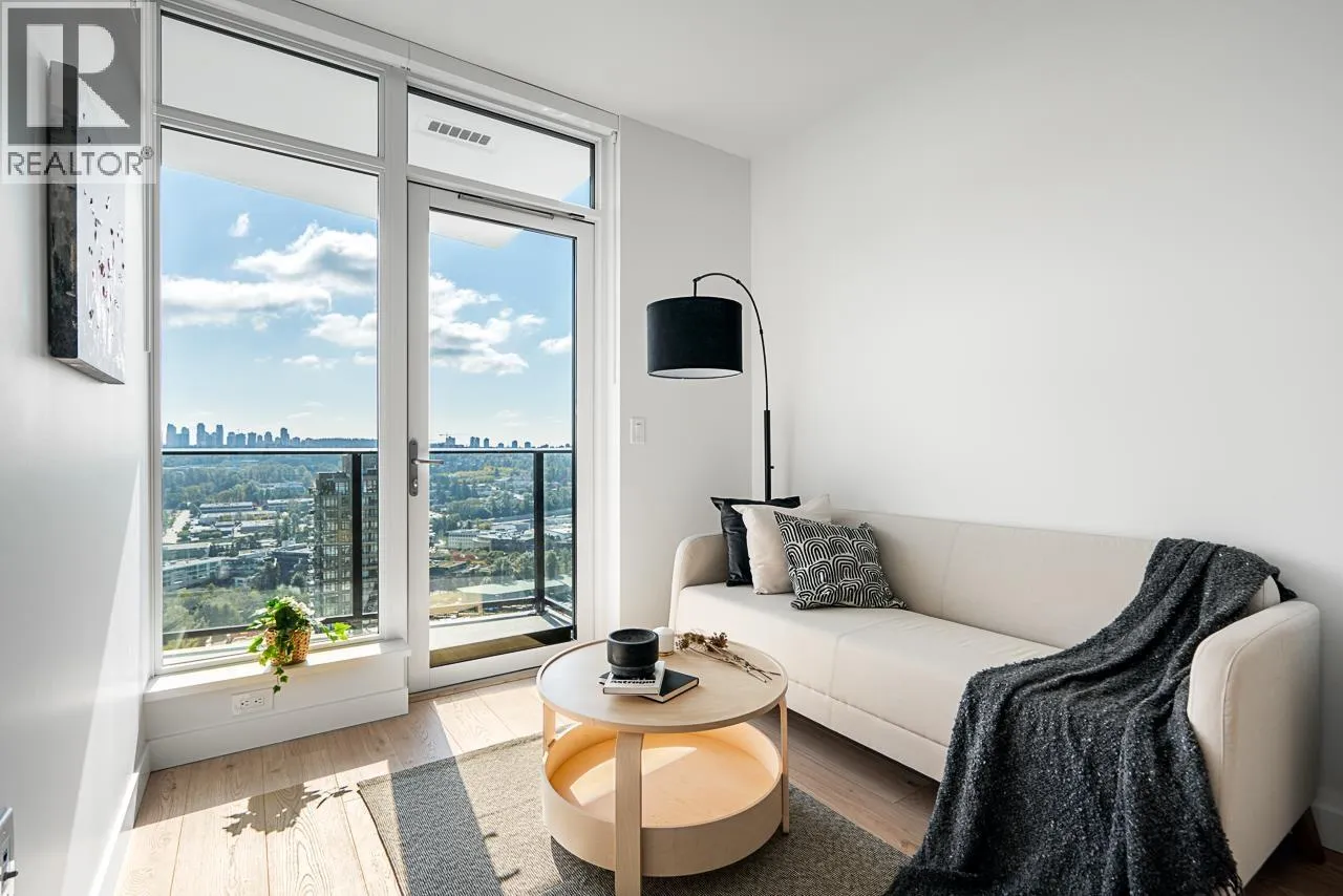 Experience elevated living at Akimbo in Brentwood, a highly sought after concrete high-rise in the heart of Burnaby. This south facing 1 bedroom condo on the 31st floor offers panoramic city views, floor to ceiling windows, 9-foot ceilings, and a spacious balcony. The open concept layout features quartz countertops, stainless steel appliances, modern cabinetry, and a full size washer and dryer. A family member currently resides in the unit, allowing for quick and flexible possession. Includes 1 parking stall and 1 storage locker, plus premium amenities such as concierge, fitness centre, guest suite, party lounge, BBQ terrace, and garden. Steps to The Amazing Brentwood, Gilmore SkyTrain, Whole Foods, parks, and restaurants, this move in ready home delivers luxury, walkability, and long-term value in one of Burnaby´s most vibrant communities. (id:27476)