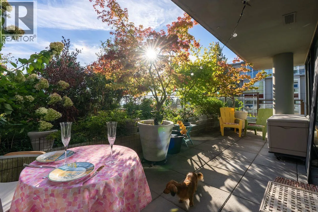 The best deal on a 1 bed at SFU! Move in ready corner home comes with a massive patio/garden & perfectly positioned in the heart of the SFU. Bright, open-concept design with a efficient floorplan. Quality finishes include all new appliances, under-cabinet lighting, hardwood flooring, quartz countertops & new lighting fixtures. Step outside to HUGE oversized private patio, surrounded by landscaped gardens & enjoying peaceful, beautiful views. This solid concrete, LEED-certified building comes with a green roof & unbeatable location just steps to nesters grocery, pharmacy, post office, liquor store, transit, trails, dining & more! An outstanding home for yourself or at this price/low strata fee a rare great investment opportunity for cash flow located in the heart of SFU. Do not miss out! (id:27476)