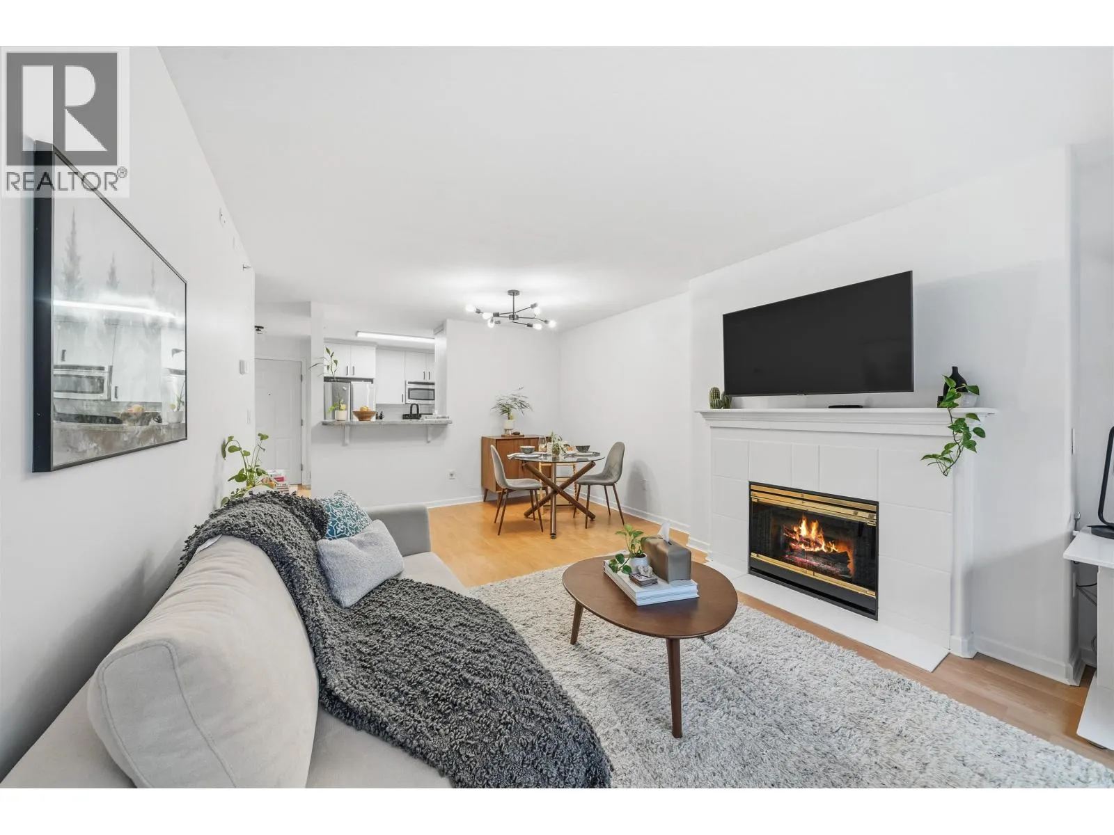 Welcome to The Legends, a bright and well-designed 1-bedroom home that offers comfort, functionality, and an exceptional location. The modern kitchen features stone countertops, updated cabinetry, and stainless steel appliances, opening seamlessly into a spacious living and dining area filled with natural light. A cozy gas fireplace anchors the living space, creating an inviting atmosphere for quiet evenings or entertaining friends. Enjoy the everyday luxury of in-floor radiant heating, providing quiet, efficient warmth throughout the home. The generous bedroom offers a calm retreat with excellent storage and a practical layout. Perfectly positioned steps from Deer Lake Park yet just minutes to Metrotown, this home offers a rare balance of urban convenience and serene, park-side living. Set within a well-maintained building with strong rental appeal, this property is an excellent opportunity for a first-time buyer or a savvy investor. Open House Sat Feb 7. from 2-4 (id:27476)