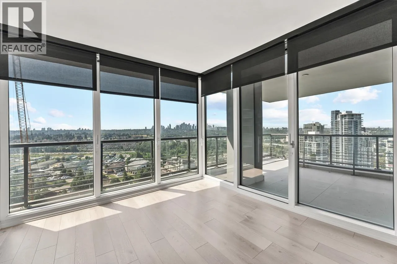 Welcome to Concord Brentwood Hillside West! This 4-year-new southwest corner suite offers 2 bedrooms, 2 full bathrooms, and a huge wraparound balcony with large sliding glass doors and electric blinds. The 732 sq. ft. well-designed unit is in the heart of Brentwood, 5 minutes´ walk to Brentwood Mall and SkyTrain, and 5 minutes´ drive to Costco and other supermarkets. Features include heating and air conditioning, 24/7 concierge, BOSCH appliances, quartz countertops, 1 EV parking stall, and 1 storage locker. Amenities include a fitness centre, yoga studio, theatre room, lounge, guest suite, and more. Don´t miss out-book your showing today! Open House on Feb 14th and 15th between 2-4 PM. (id:27476)
