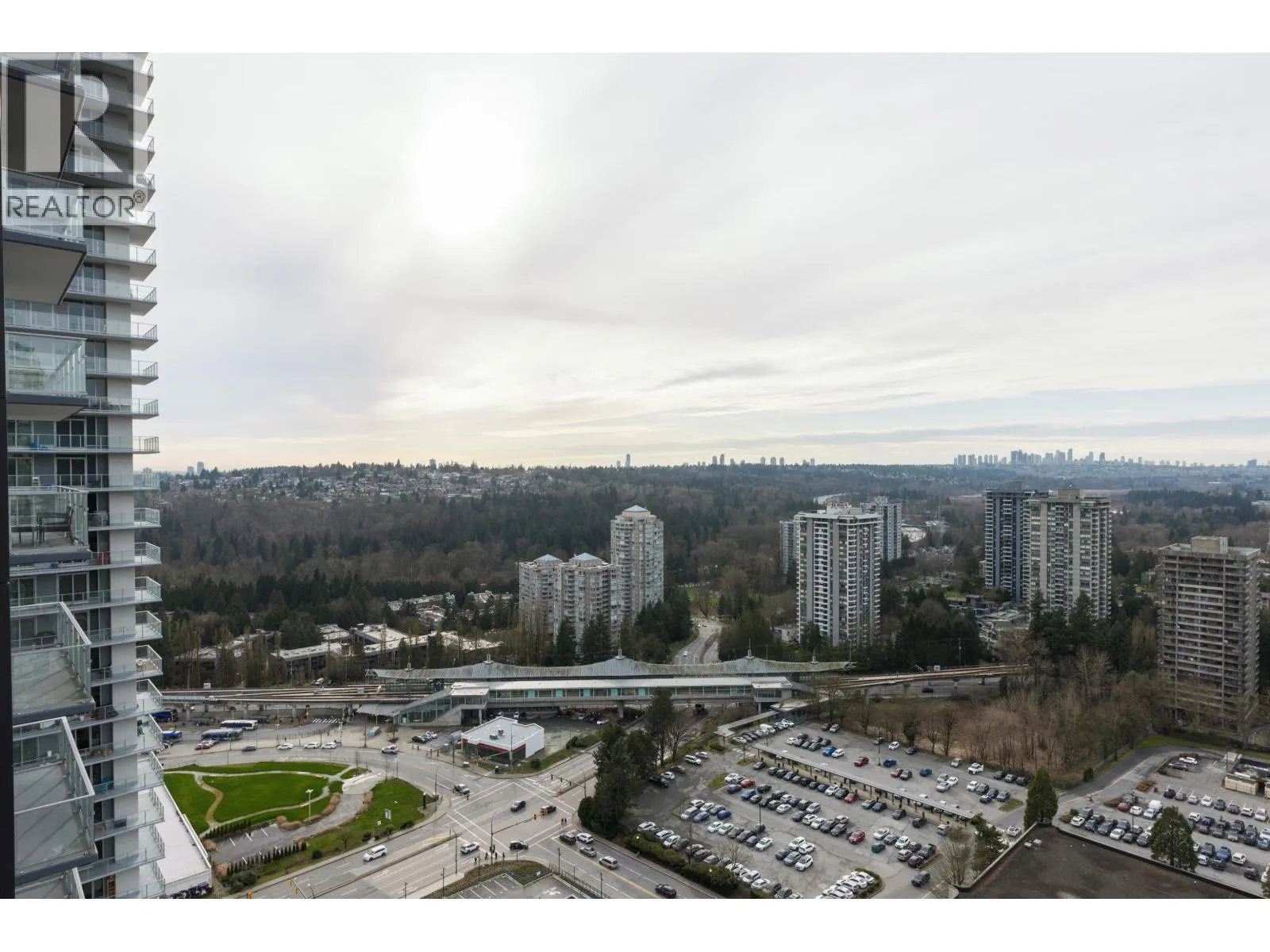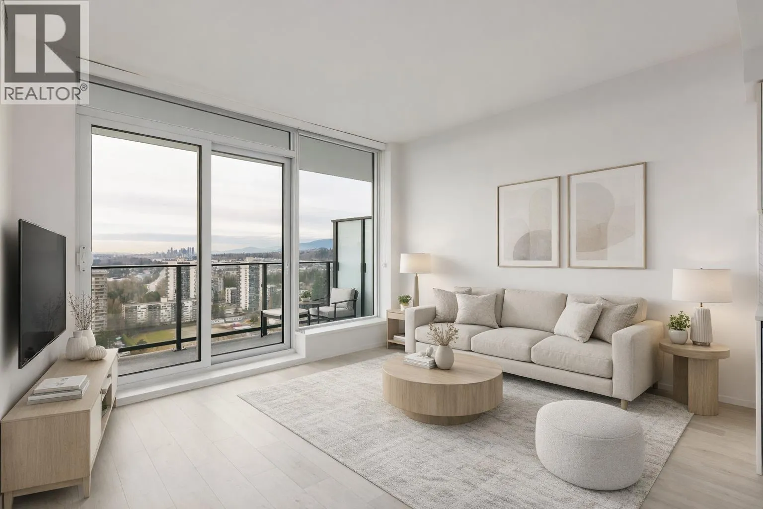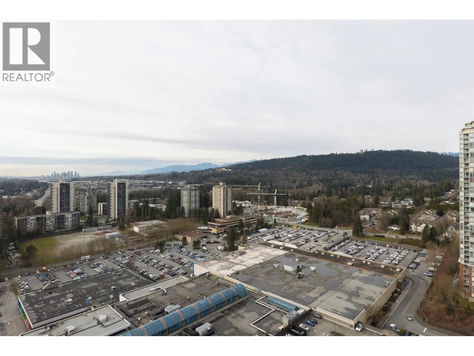 Welcome to this bright west-facing home, offering unobstructed mountain & city views through expansive floor-to-ceiling windows. The efficient rectangular layout maximizes every square foot with no wasted space. A modern kitchen anchors the home with Bosch appliances, a large island, & seamless flow into the living area, ideal for daily living & entertaining. Enjoy year-round comfort with air conditioning & extend your living space outdoors on the large patio. This master-planned community features a full-service clubhouse with gym, yoga studio, games room, study rooms, kids´ play area, and rooftop patio with BBQs. Includes 24-hour concierge, shared EV charging, 1 parking stall, and storage locker. Steps to shops, restaurants, Lougheed Mall, and just a 3-minute walk to Lougheed Skytrain. (id:27476)