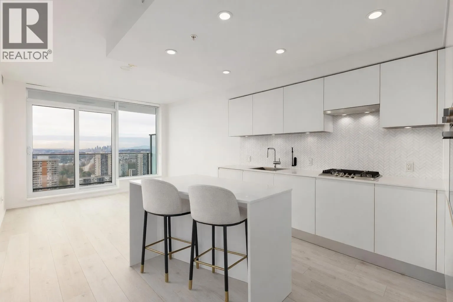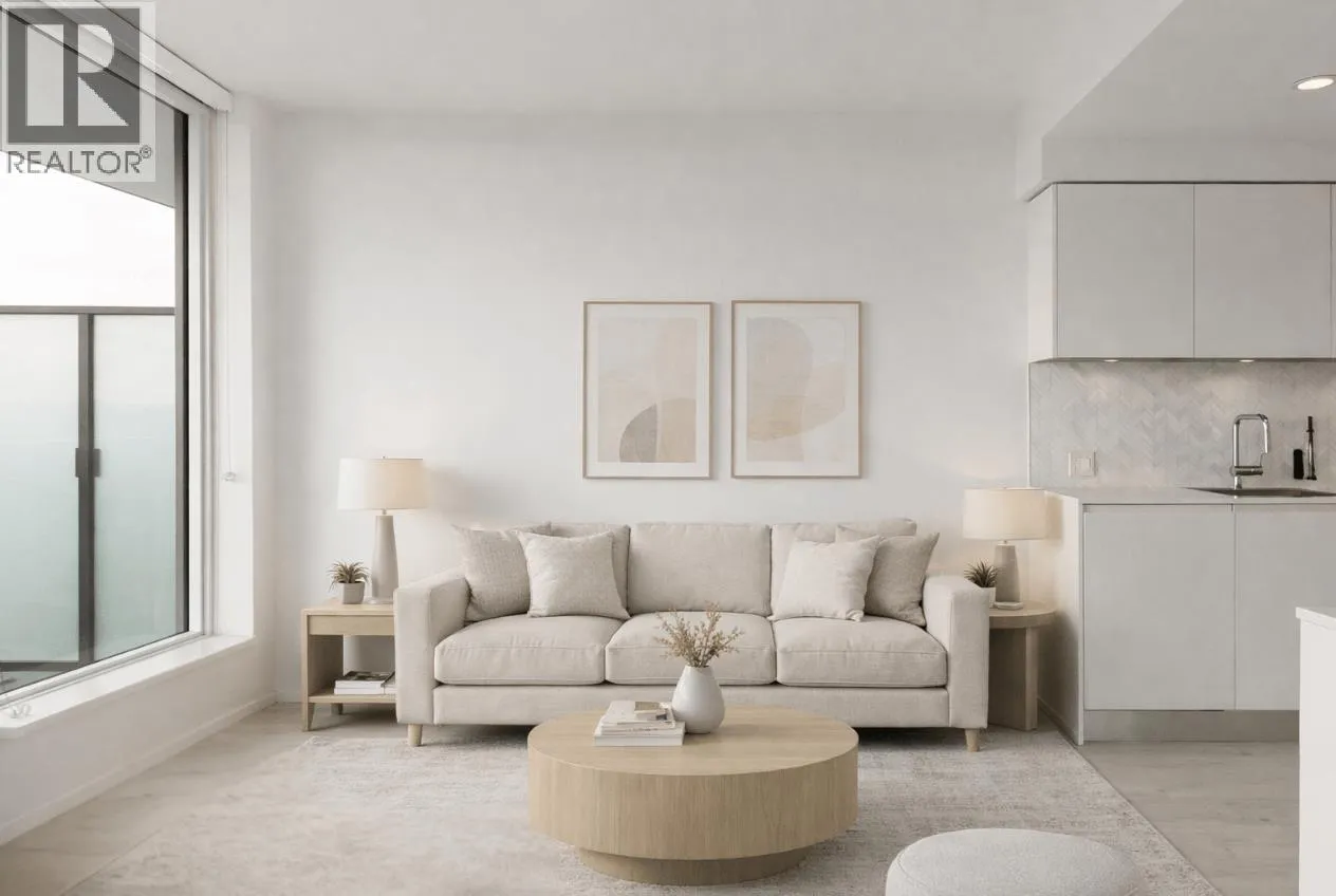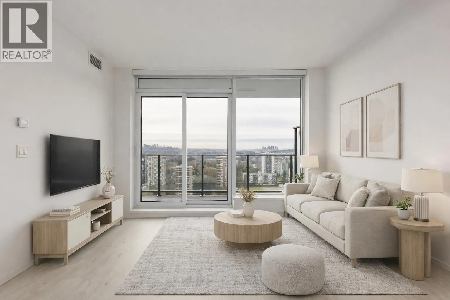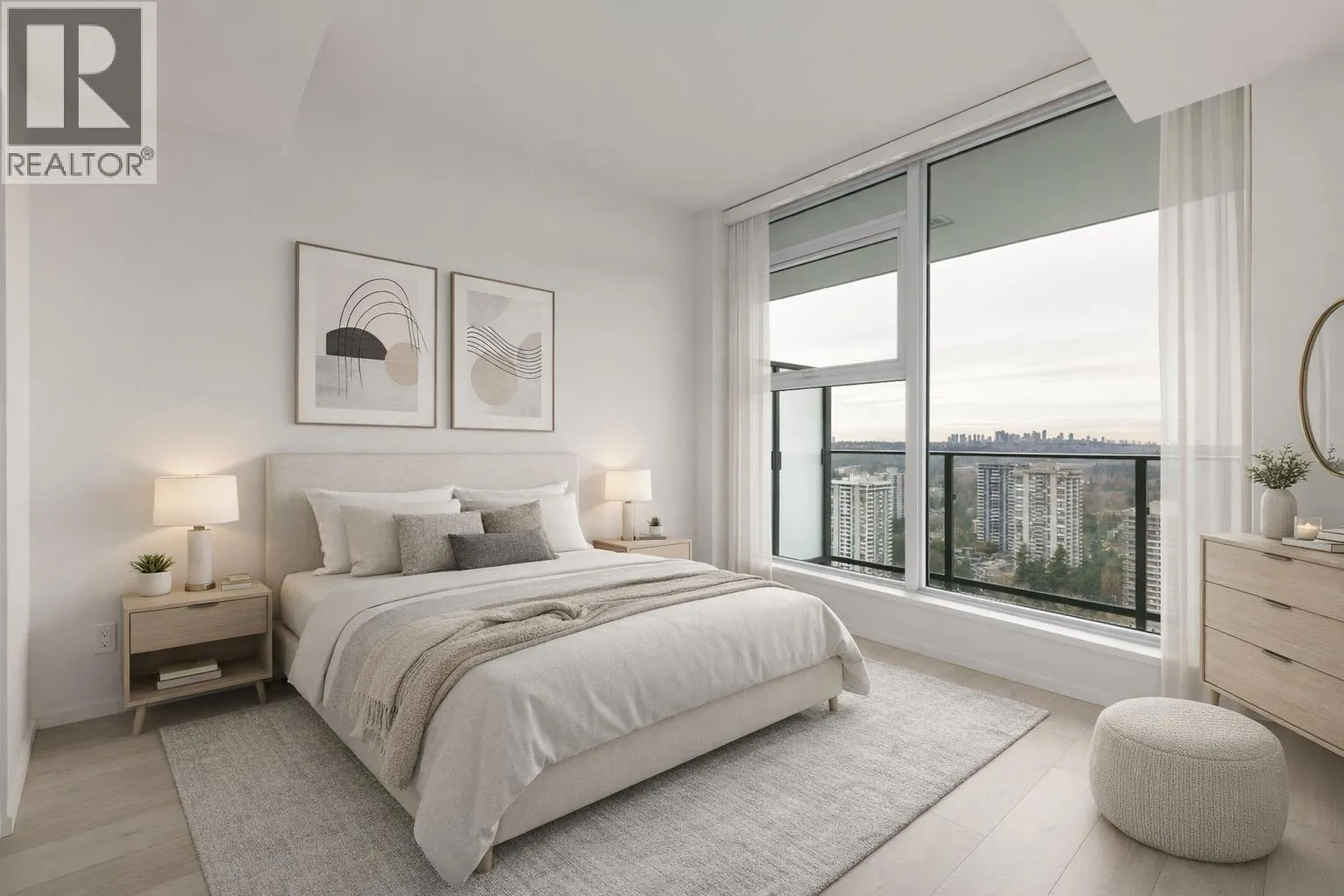 Welcome to this bright west-facing home, offering unobstructed mountain & city views through expansive floor-to-ceiling windows. The efficient rectangular layout maximizes every square foot with no wasted space. A modern kitchen anchors the home with Bosch appliances, a large island, & seamless flow into the living area, ideal for daily living & entertaining. Enjoy year-round comfort with air conditioning & extend your living space outdoors on the large patio. This master-planned community features a full-service clubhouse with gym, yoga studio, games room, study rooms, kids´ play area, and rooftop patio with BBQs. Includes 24-hour concierge, shared EV charging, 1 parking stall, and storage locker. Steps to shops, restaurants, Lougheed Mall, and just a 3-minute walk to Lougheed Skytrain. (id:27476)