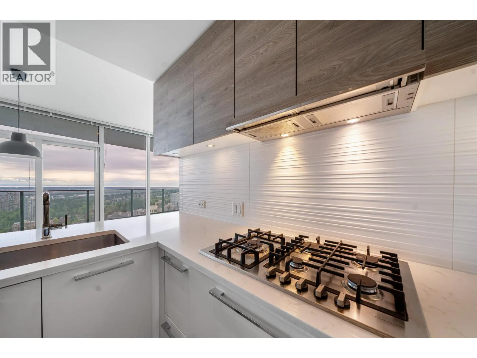 Perched on the 34th floor, this corner residence offers breathtaking panoramic views to the North, South, and West through stunning floor-to-ceiling windows. Located in the highly sought-after Kings Crossing by Cressey, this home features the signature Cressey KitchenTM-a brilliantly designed space that maximizes functionality with premium finishes. Situated in the fast-growing Highgate neighbourhood, you´re just steps from Edmonds Community Centre, the library, transit, schools, shopping, and dining. Enjoy the comfort of air conditioning, 24-hour concierge service, and access to an exceptional clubhouse featuring indoor basketball and squash courts, steam and sauna rooms, fitness centre, and a stylish lounge. Open House on Sat from 2-4PM. (id:27476)