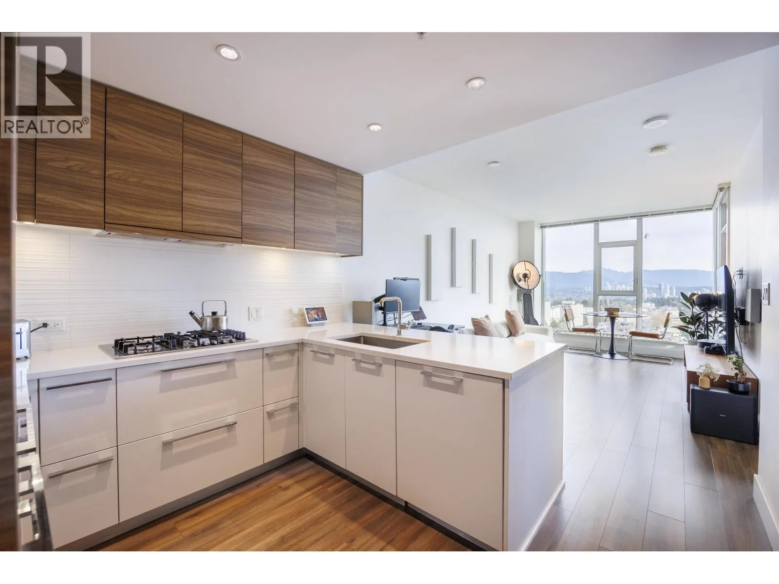 KINGS CROSSING III by Cressey! Enjoy stunning city, mountain & water views from this bright NE-facing corner unit in a quiet building within the complex. Thoughtfully designed 1 bedroom + den/workstation, approx. 658 sq. ft., featuring floor-to-ceiling windows, private balcony, 9 ft ceilings, A/C, granite countertops & stainless steel appliances. Exceptionally well maintained - move-in ready. Unbeatable location! Steps to Edmonds Community Centre, SkyTrain, shops, restaurants, banks, grocery stores & parks. Resort-style amenities include fitness centre, sports/basketball court, sauna & steam room, rooftop garden, lounge & concierge. Minutes to Metrotown, Deer Lake & schools. Ideal for first-time buyers, downsizers or investors. (id:27476)