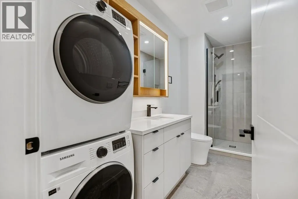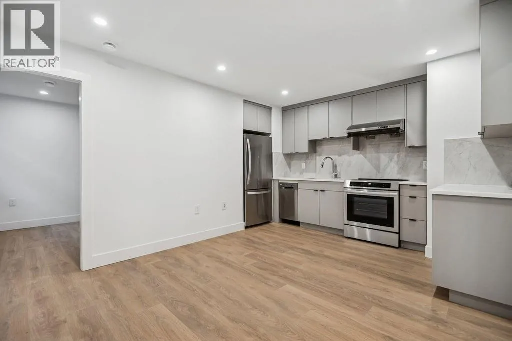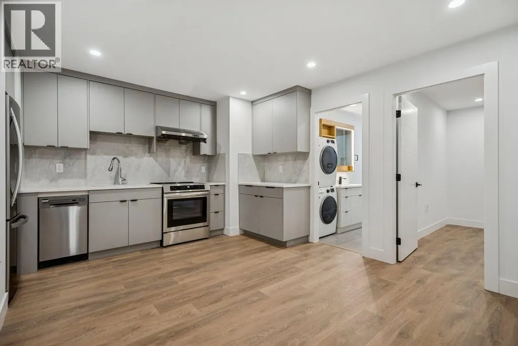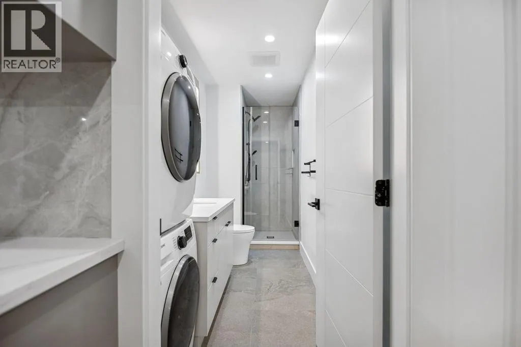 This is a brand new, spacious, 638sf, 2 bedrooms, 1 bathroom home with high ceilings, classy matte black metal hardware, radiant floor heating and laminate floors throughout. The open living room has plenty of pot lights and a functional rectangular layout for your furnishings. The gorgeous kitchen features 1.5 rows of full-height cabinets, engineered stone countertops and backsplash, and stainless steel appliances. Both bedrooms have large closets and plenty of pot lights. The bathroom features slate-style floor tiles, a full-size washer and dryer, an engineered stone countertop over a neat vanity, a rectangular under-mount sink, and a walk-in shower stall with glass enclosures. The owners are a local family who live in the main house. Tenant is responsible for 20% of the utilities. (id:27476)