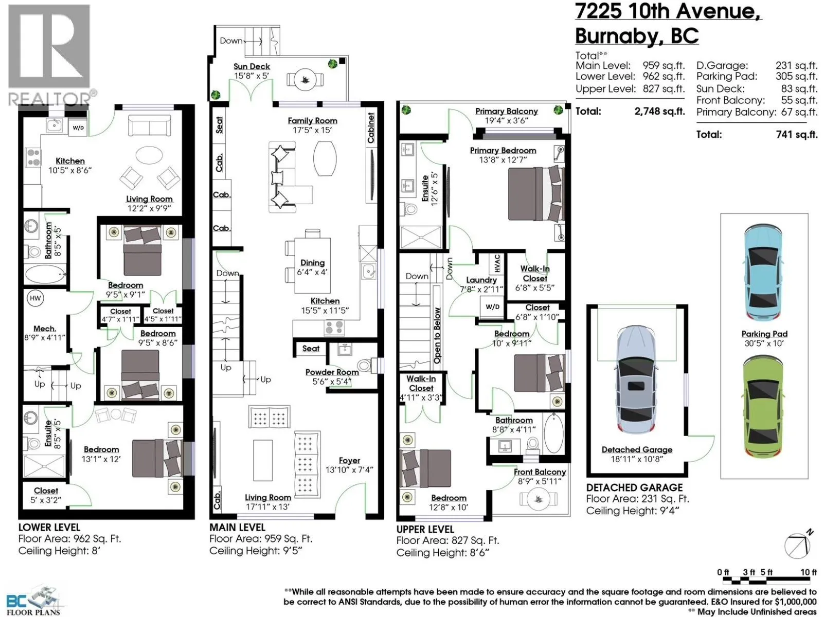 BRAND NEW 3-level side-by-side 1/2 duplex by a quality, experienced builder in Burnaby's most desirable area! This stunning smart home features A/C, hot water radiant heat, and premium door casings. The chef's kitchen offers high-end stainless steel appliances and ample cabinetry. Main floor includes a spacious living room, family room, kitchen and powder room. Upstairs has 3 bedrooms, 2 baths, and front & back balconies. The 3-bedroom legal suite below includes 2 full baths-ideal as a 2-bed rental + 1 bed for upstairs use. Private backyard, detached single garage, and extra parking. Near Edmonds SkyTrain and all amenities. All sizes & age from building plans are approximate only. Buyer or buyer's agent to verify. Call your Realtor and book your dream home! (id:27476)