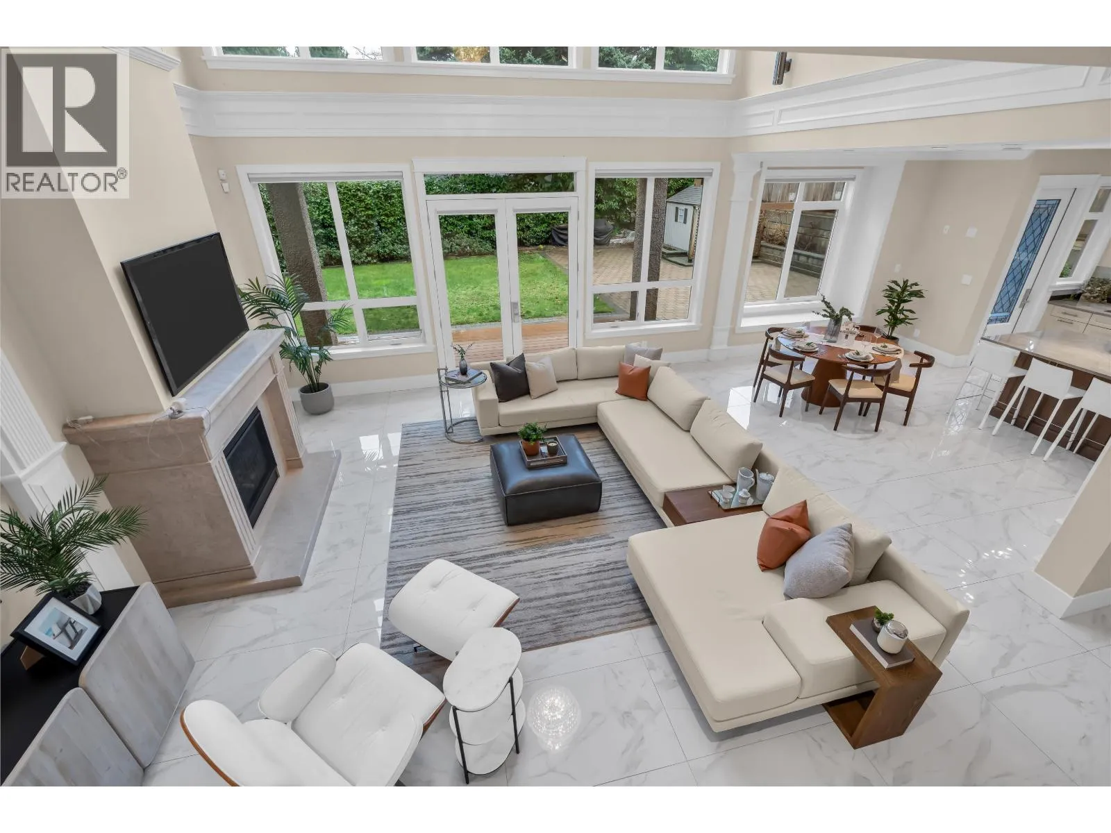 Welcome to prestigious Government Road. This exceptional modern residence offers over 6,000 sq.ft. of luxurious living space, featuring soaring double-height ceilings and dramatic south-facing windows that fill the home with natural light. Designed for both grand entertaining and comfortable family living, it boasts expansive living and dining areas, two full kitchens, and two self-contained suites-ideal for extended family or rental income. The flat, private backyard provides excellent outdoor enjoyment. With 7 bedrooms, 8 bathrooms, and premium finishes throughout, this remarkable home blends space, elegance, and versatility in one of Burnaby´s most desirable neighbourhoods. (id:27476)