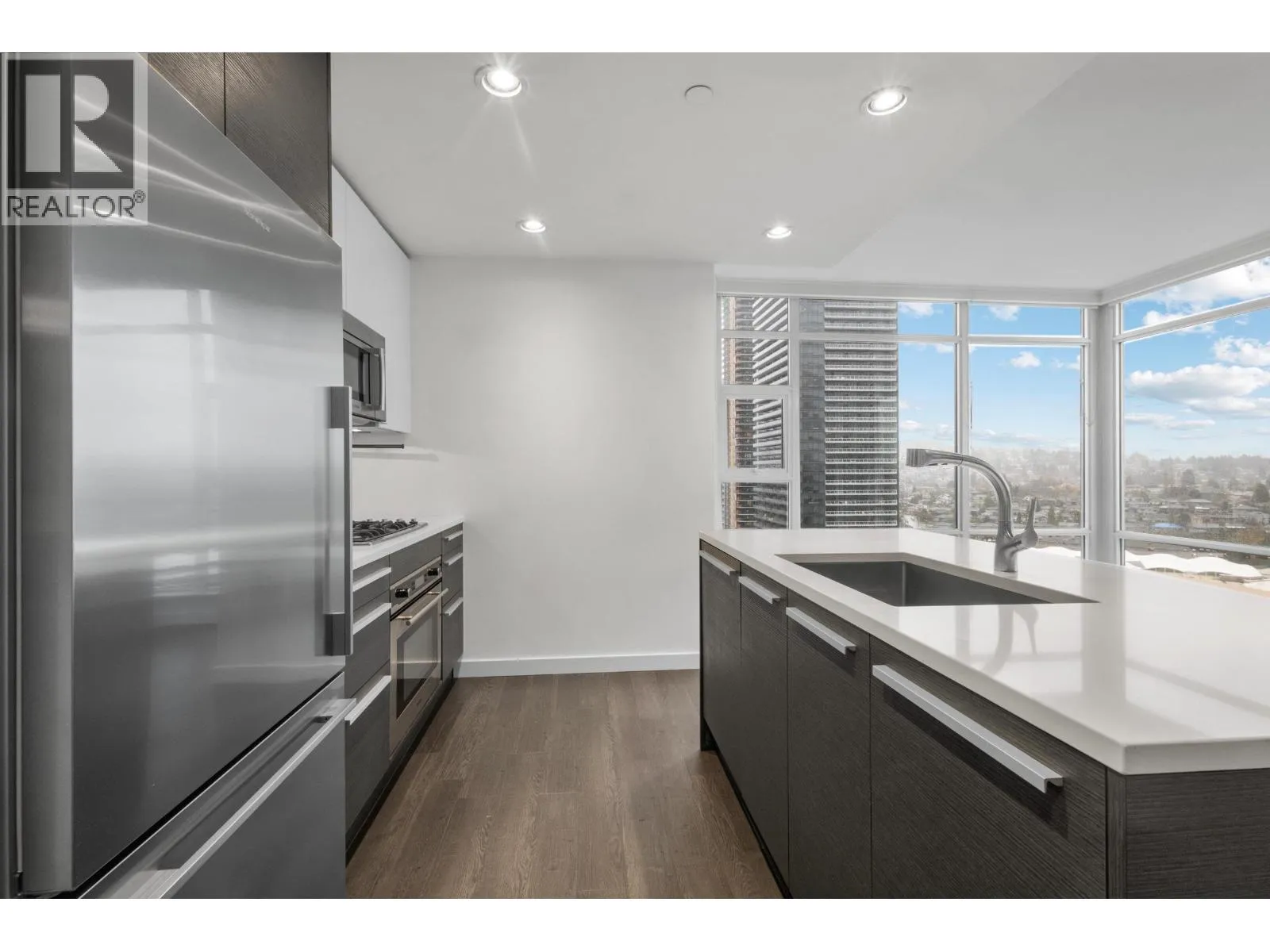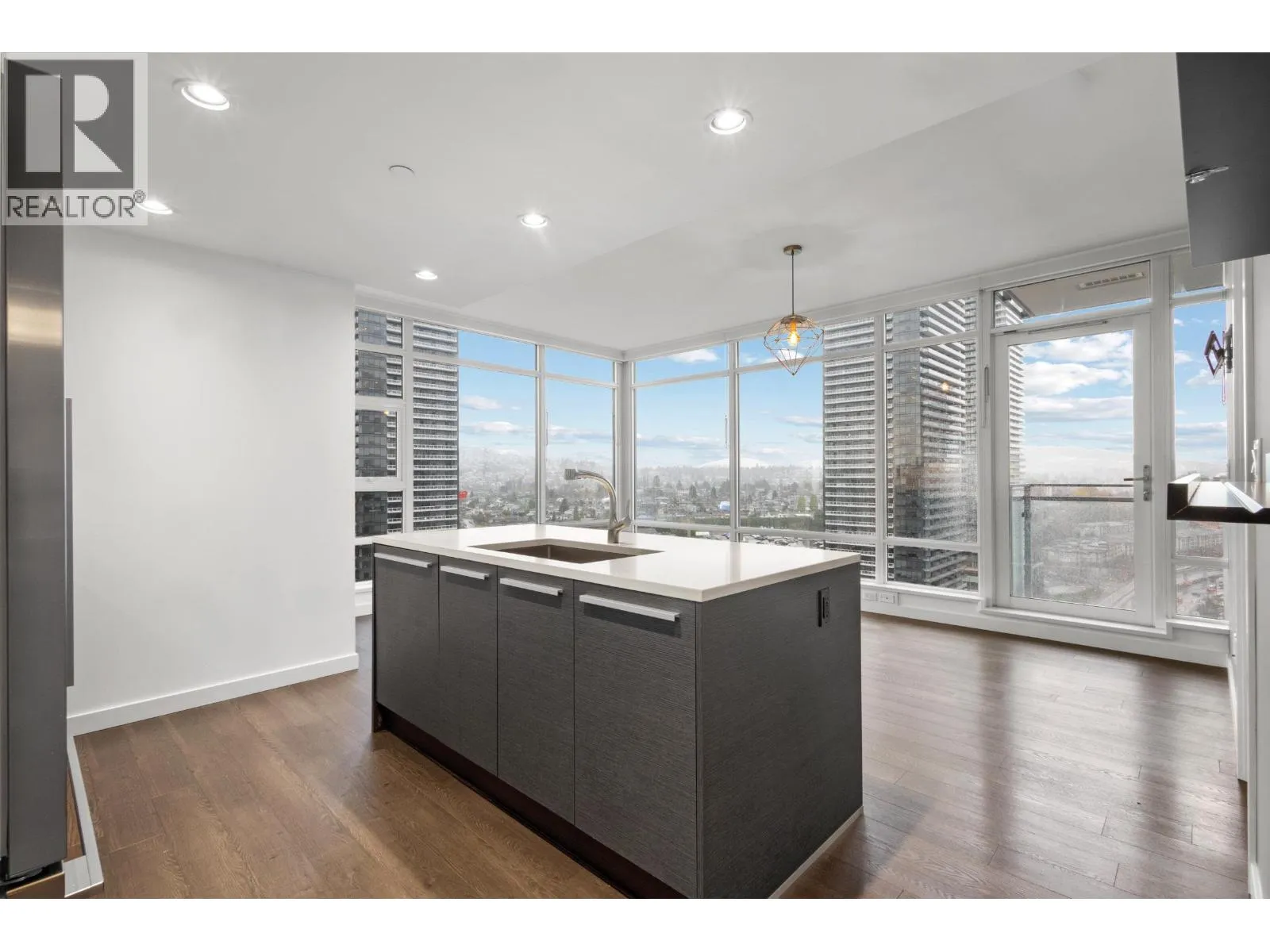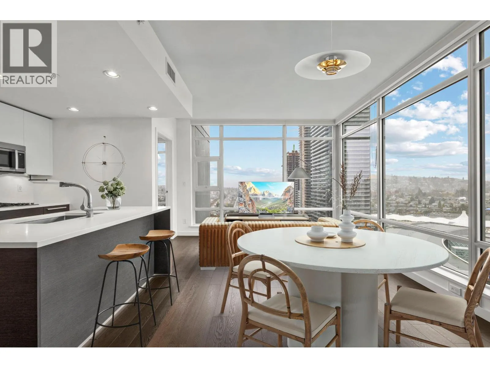 BETTER THAN NEW! Over 860sqft. 2 BED, 2 BATH, 2 STORAGE LOCKERS Freshly Painted! Bedrooms are set up for ultimate privacy on either side of the condo perfect for roommates! Spacious kitchen with Gas Cook top and Breakfast Bar, Quartz Countertops and AC for Warm Summer Days! Oversize Glass Walls capture Breathtaking Mountain Views from each Room! 24hr CONCIERGE, Fully equipped Gym, hotel style change rooms with showers, 49th Level Lounge with full Catering kitchen for up to 100 guests and 360 degree VIEWS from indoor and outdoor spaces, Basketball Court, Pickleball, outdoor Courtyards with BBQ´s for gatherings. Embrace an elevated lifestyle in this picturesque haven-with Steps to Transit, atop the Amazing Brentwood, Whole Foods and all your modern conveniences! OPEN SAT MARCH 28th 2-3pm! (id:27476)