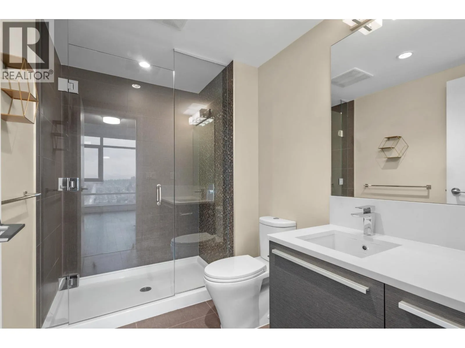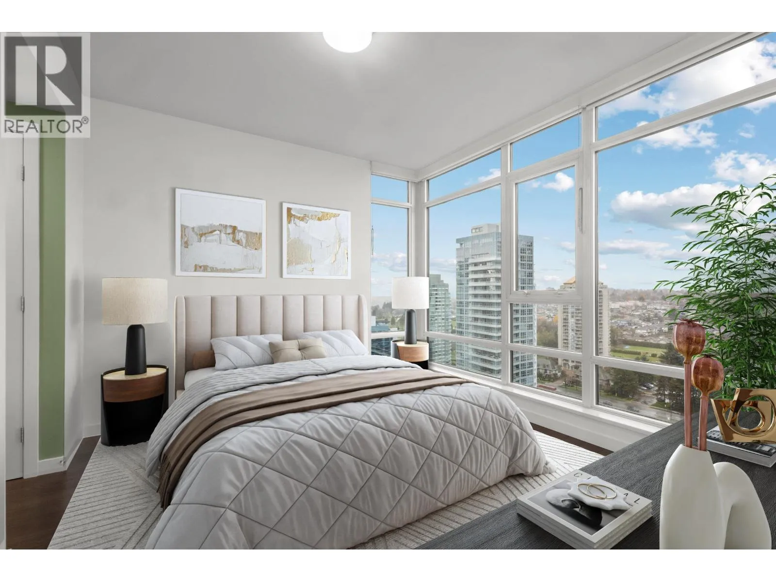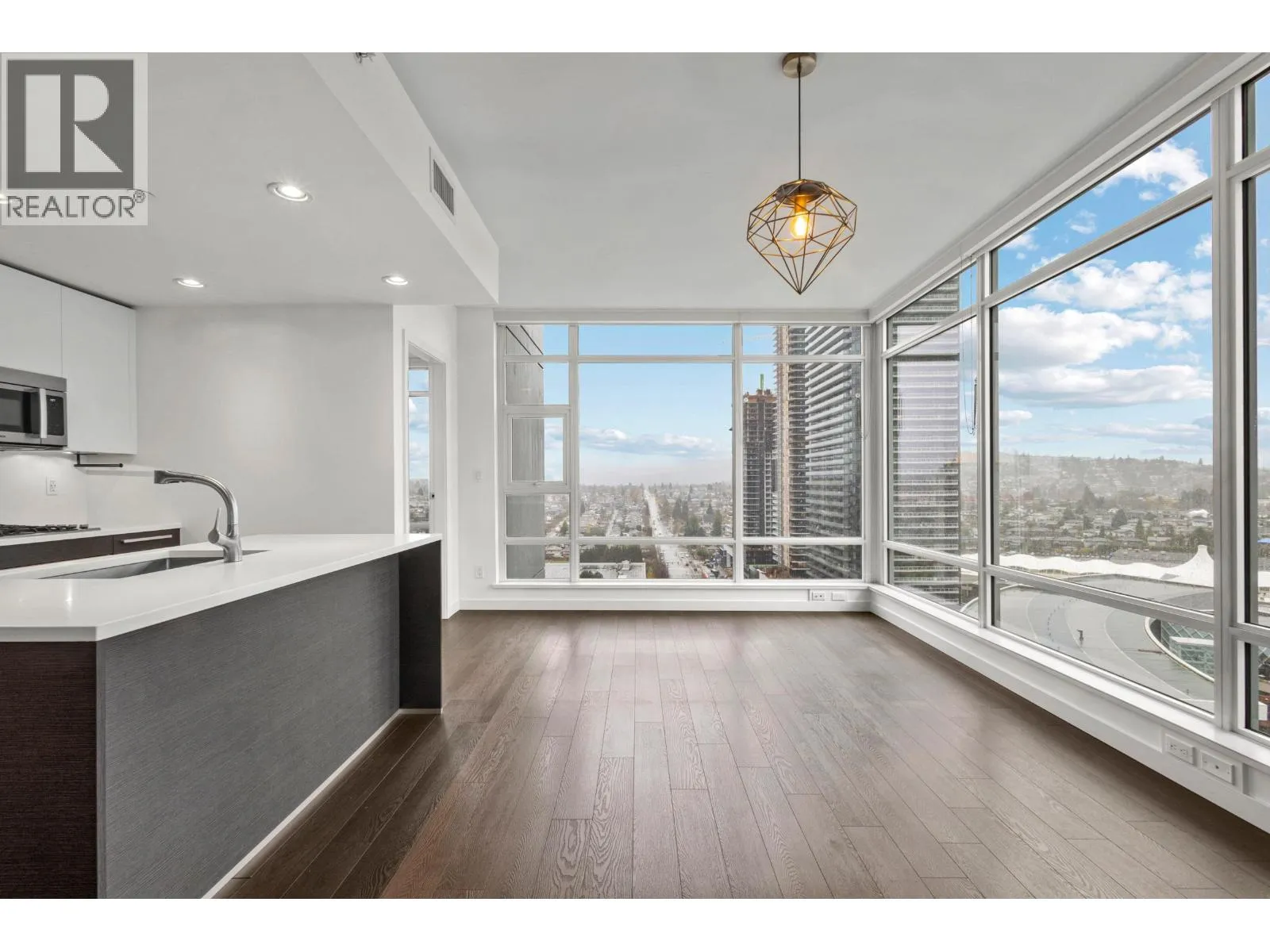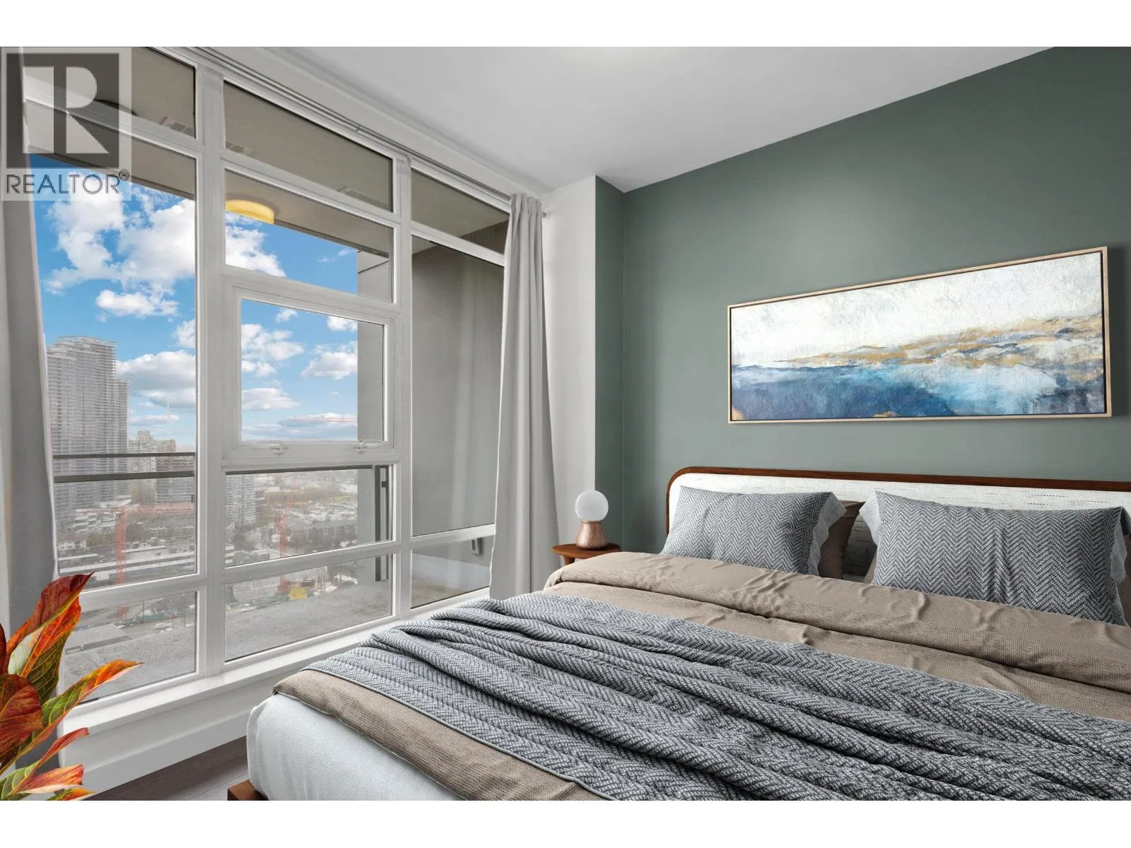 BETTER THAN NEW! Over 860sqft. 2 BED, 2 BATH, 2 STORAGE LOCKERS Freshly Painted! Bedrooms are set up for ultimate privacy on either side of the condo perfect for roommates! Spacious kitchen with Gas Cook top and Breakfast Bar, Quartz Countertops and AC for Warm Summer Days! Oversize Glass Walls capture Breathtaking Mountain Views from each Room! 24hr CONCIERGE, Fully equipped Gym, hotel style change rooms with showers, 49th Level Lounge with full Catering kitchen for up to 100 guests and 360 degree VIEWS from indoor and outdoor spaces, Basketball Court, Pickleball, outdoor Courtyards with BBQ´s for gatherings. Embrace an elevated lifestyle in this picturesque haven-with Steps to Transit, atop the Amazing Brentwood, Whole Foods and all your modern conveniences! OPEN SAT MARCH 28th 2-3pm! (id:27476)