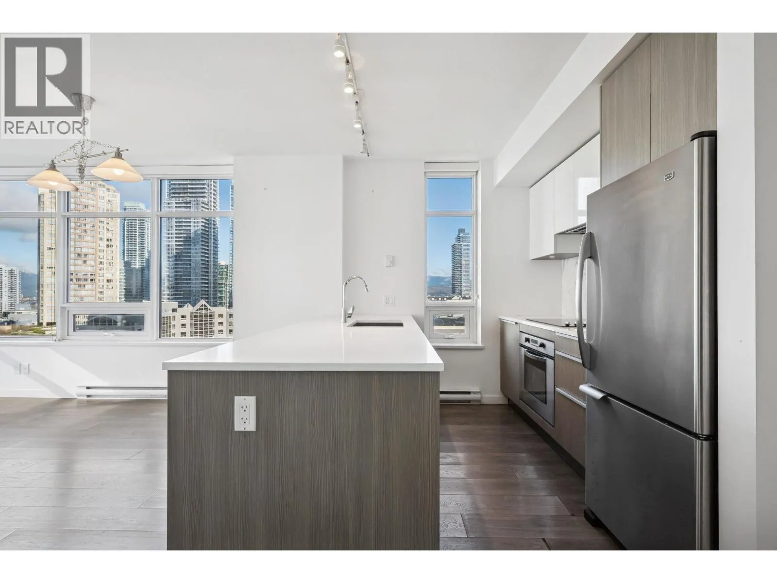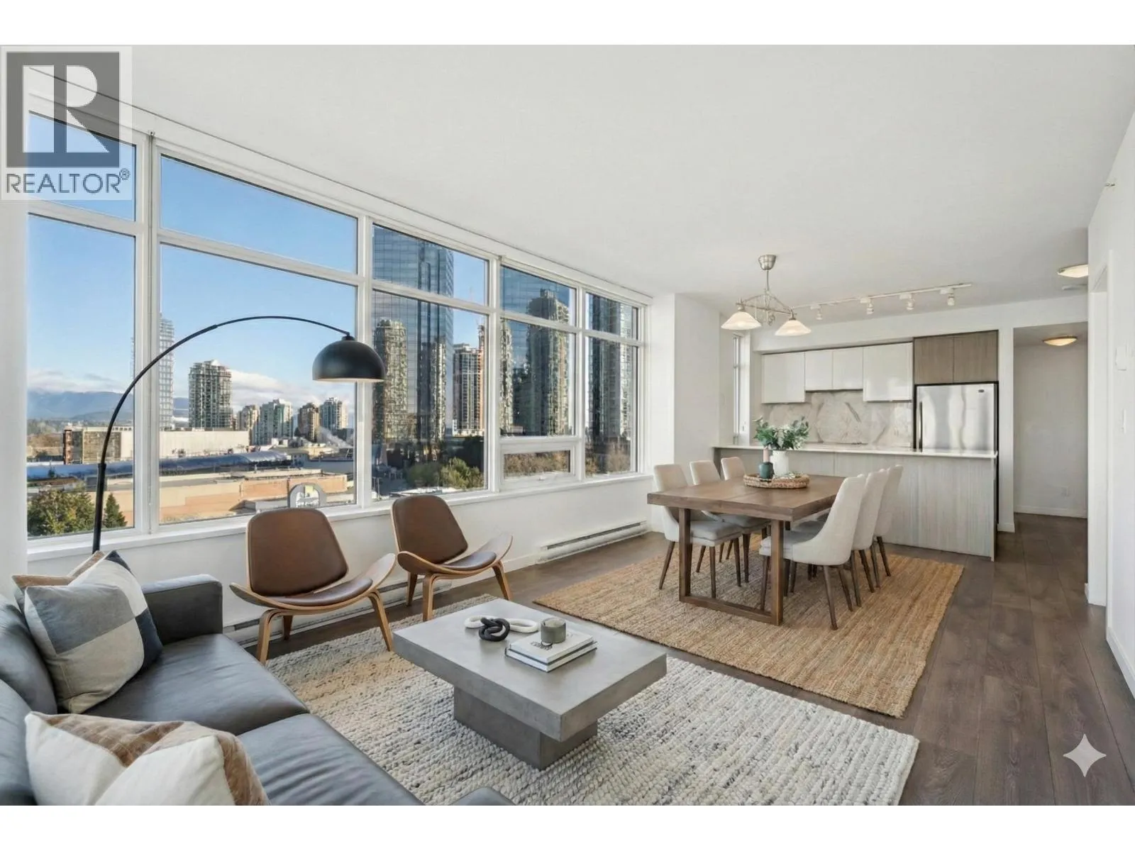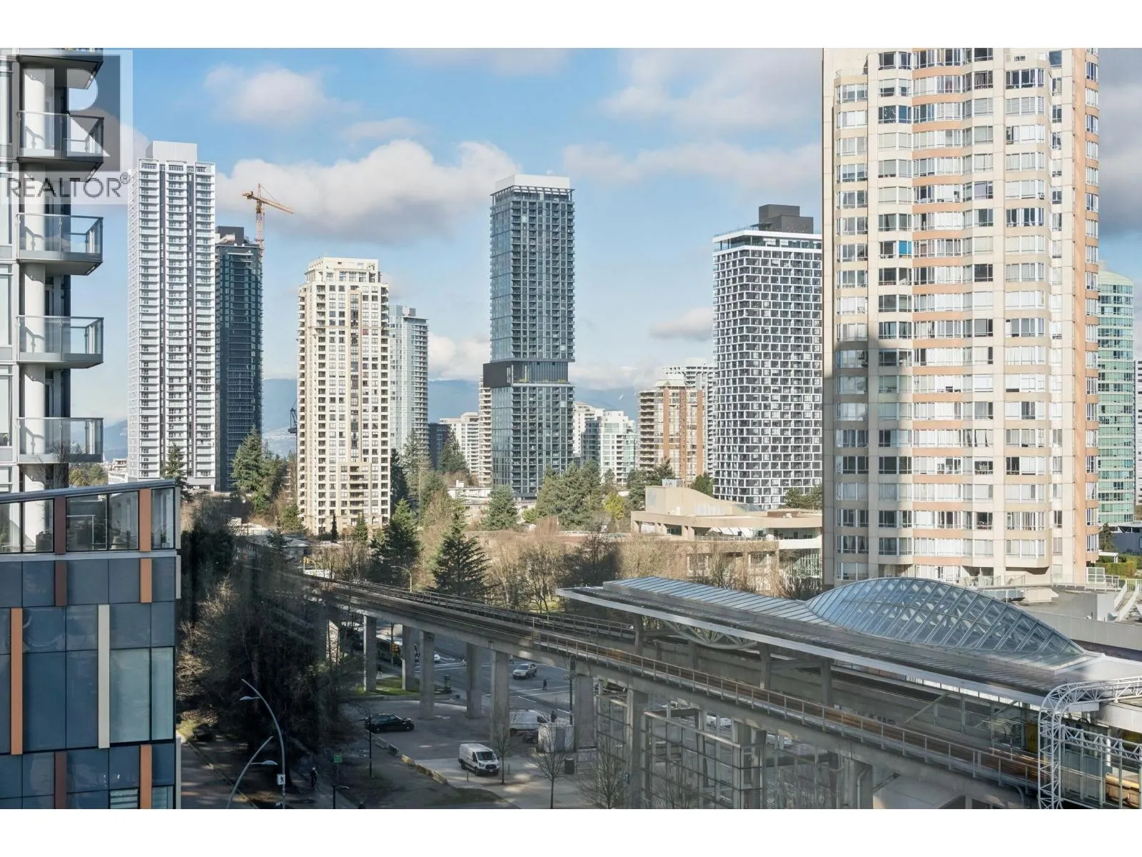 Amazing Metrotown location! Metroplace by Intracorp. Bright NW-facing corner unit offering a functional and spacious 946 sqft layout with 2 bedrooms + den and 2 full bathrooms. Large living and dining area filled with natural light and a private balcony showcasing pleasant city and mountain views. Modern kitchen features stainless steel appliances, quartz countertops and marble backsplash. Well-maintained concrete high-rise just steps to SkyTrain, bus loop, Metropolis at Metrotown, Crystal Mall and Burnaby Public Library. Convenient yet quiet setting. Includes 1 parking and 1 storage locker. Ideal for both living and investment. (id:27476)