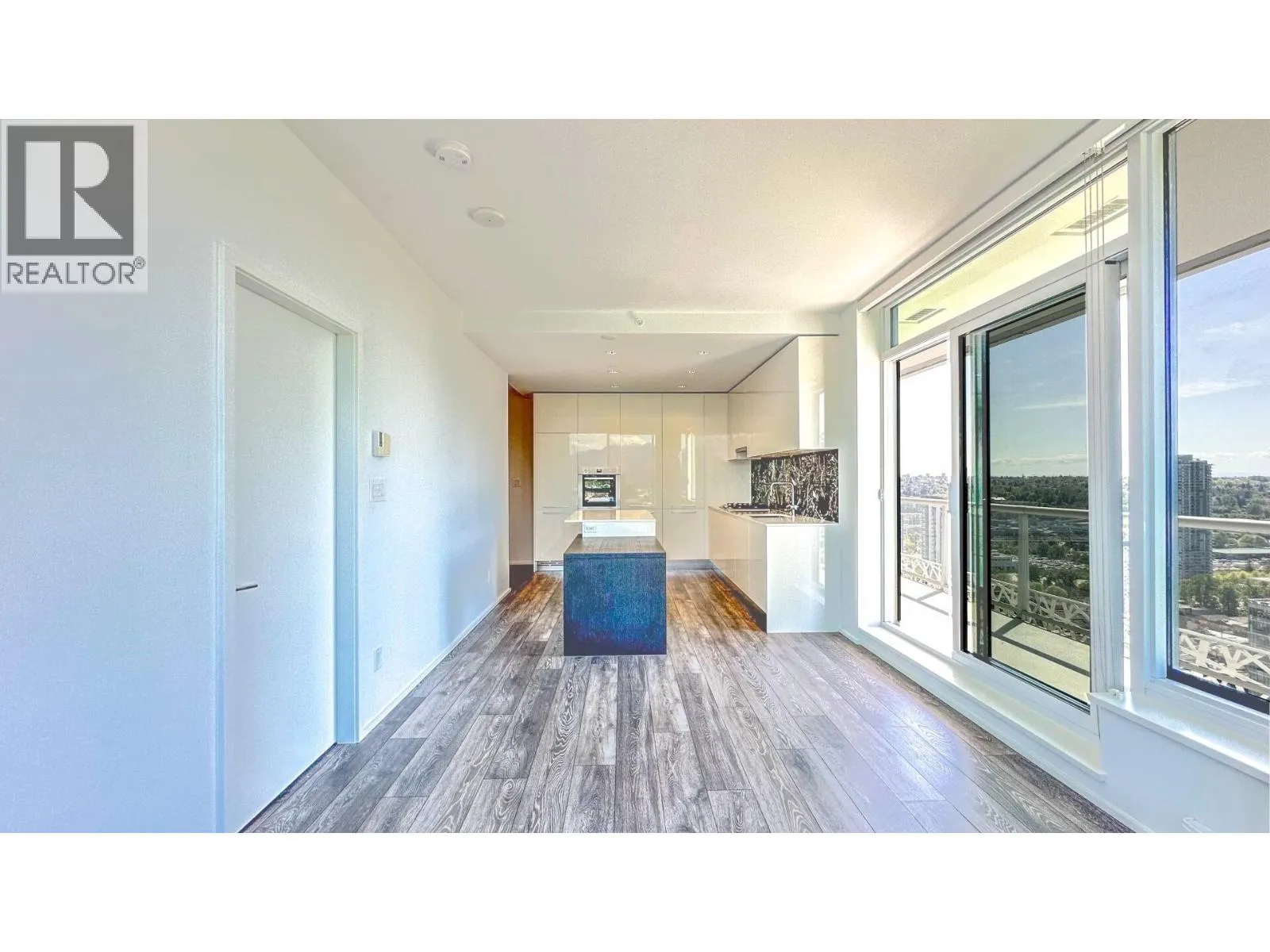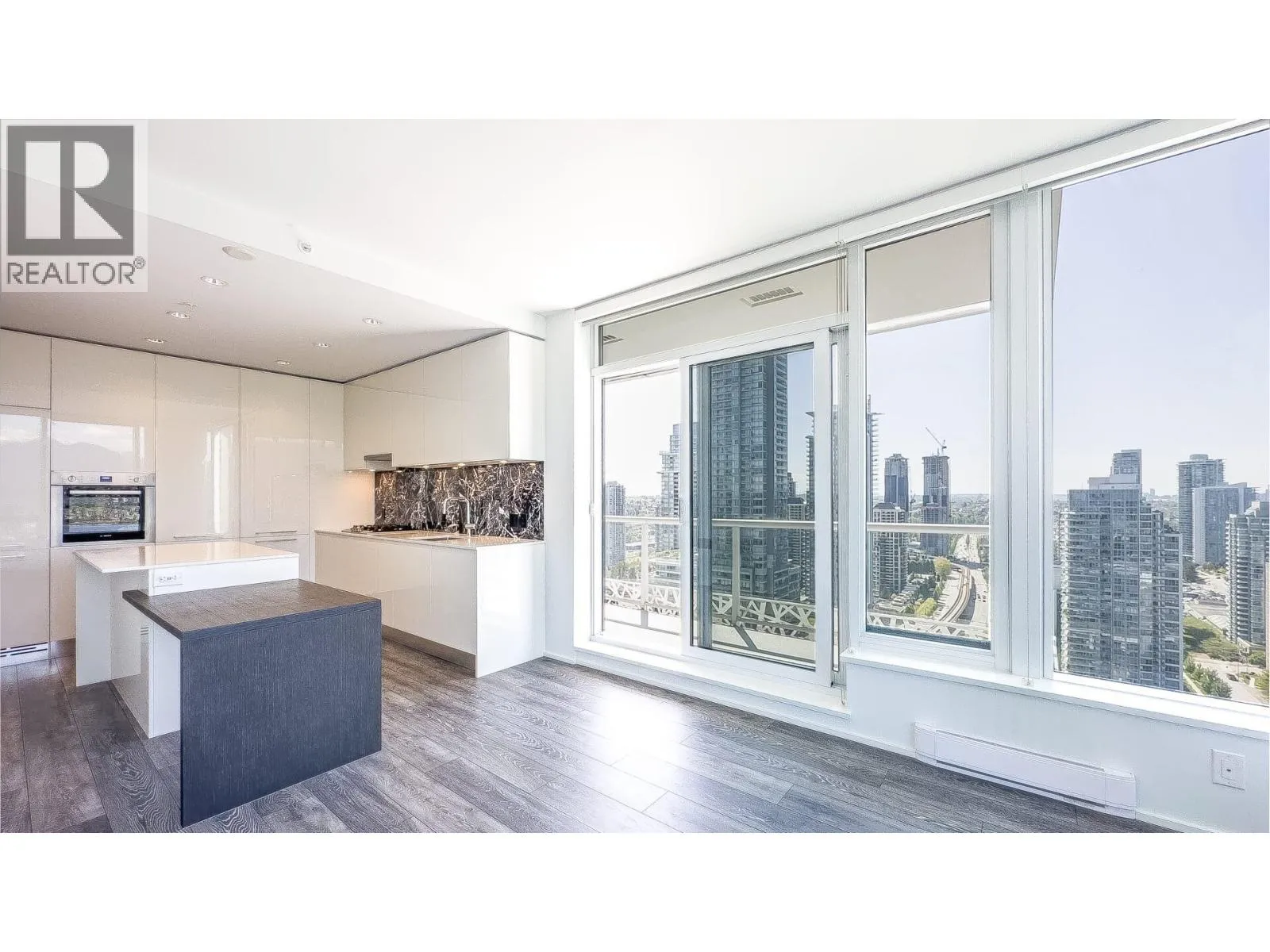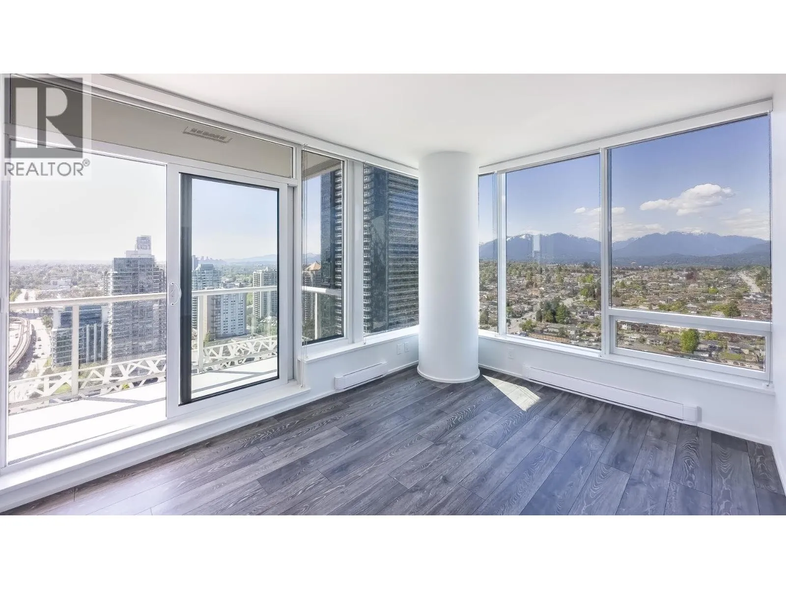 Welcome to Amazing Brentwood Tower II by Shape Properties. This stunning southwest corner 2-bedroom, 2-bathroom plus den home (den with sliding glass doors) with Fresh Paint offers breathtaking 270-degree panoramic views of Metrotown, city skyline, mountains, and glimpses of Burrard Inlet. Enjoy expansive floor-to-ceiling windows, a gourmet kitchen with quartz countertops, marble backsplash, Bosch stainless steel appliances, European cabinetry, laminate flooring throughout, and a built-in dining table. Five star amenities include 24-hour concierge, fitness centre, and guest suite. Steps to Brentwood Mall, Skytrain, restaurants. The strata is currently working on AC installation project. Virtual Staging shows potential. Measurements are approximate, Buyer or Buyers agent to verify. (id:27476)