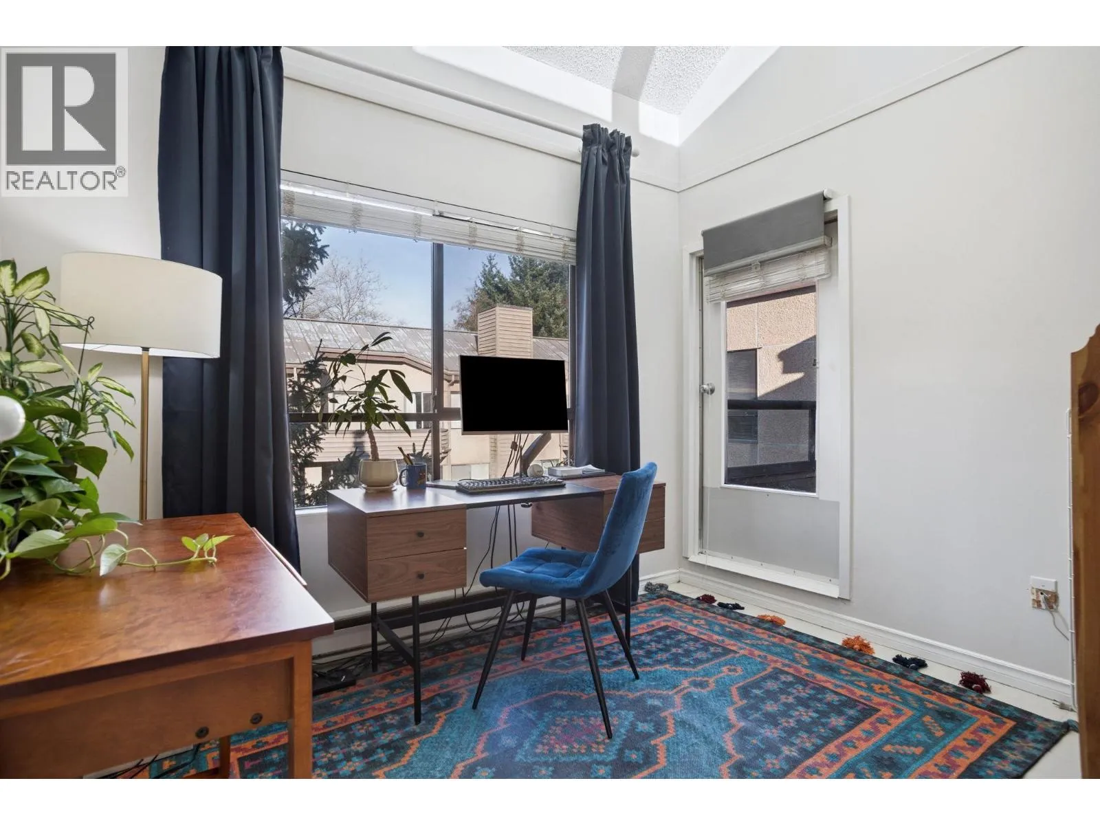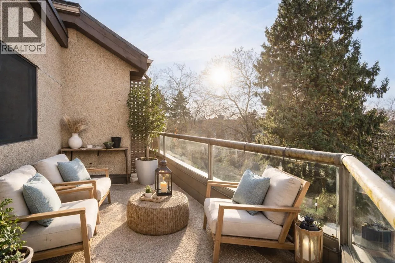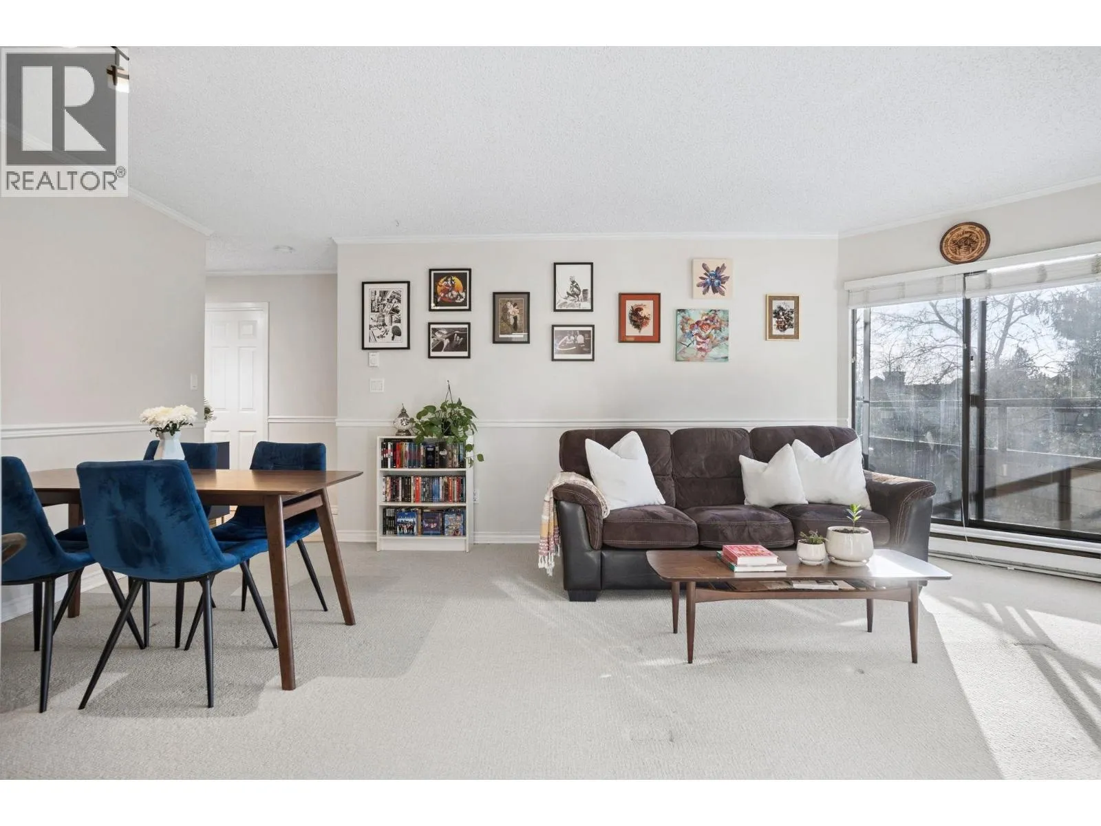 Welcome to August Grove Estates! This bright & airy TOP FLOOR corner 1 bed + den + 1 bath 725 sqft home offers desirable southwest exposure & an abundance of natural light throughout. Featuring TWO private balconies, this home is perfect for entertaining guests & enjoying the quiet treed outlook. The spacious layout features a large, bright den w vaulted ceilings - truly ideal for WFH, baby room or guest space. A cozy wood-burning fireplace adds warmth & character, while in-suite laundry, pantry & ample closet space provides everyday convenience. Enjoy the added benefits of a secure underground parking stall & storage locker. Ideally located within walking distance to Squint Lake Park and Burnaby Mountain Golf Course, with scenic trails and recreation right at your doorstep. Pets welcome! (id:27476)